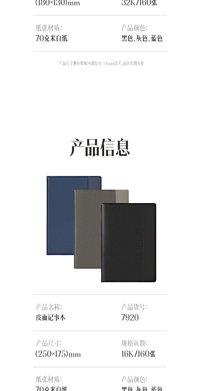 델리 7920 가죽 메모장 16K/25K/32K/48K 비즈니스 노트북 저널 회의 기록 책