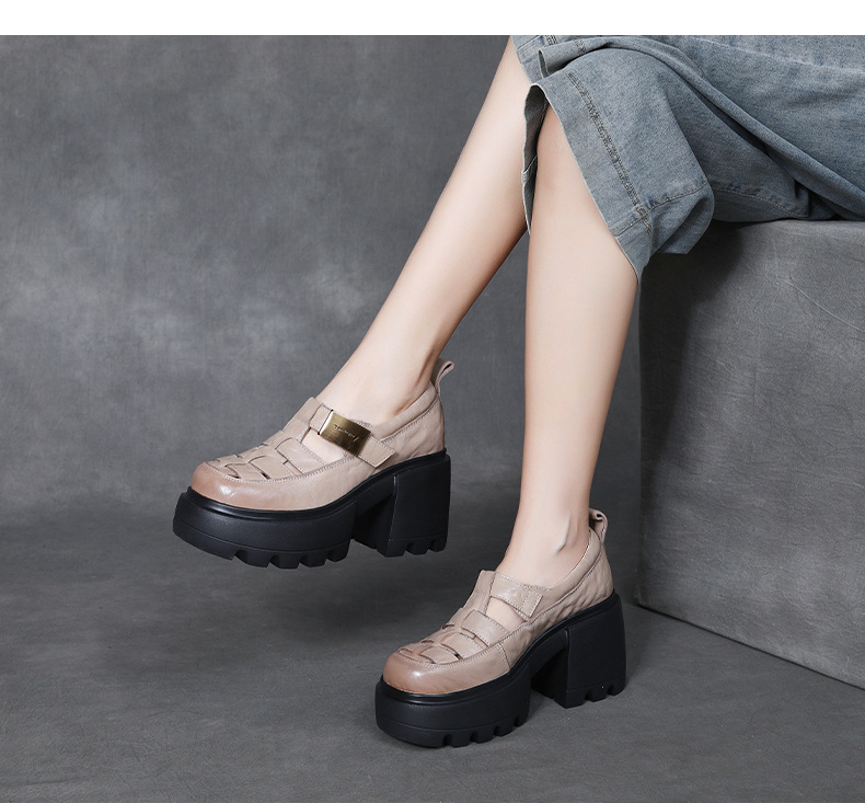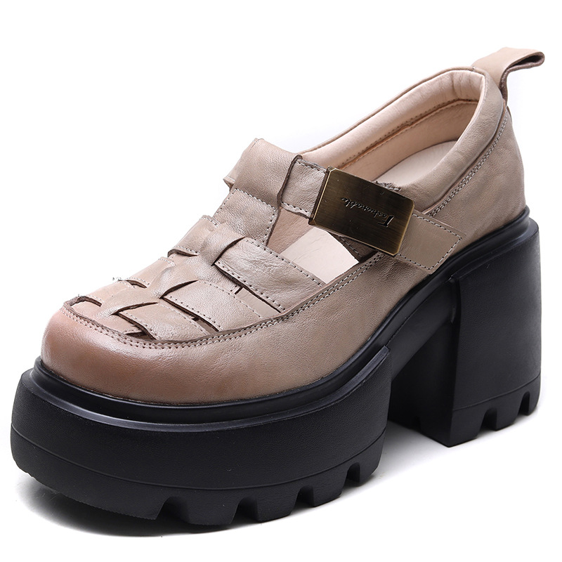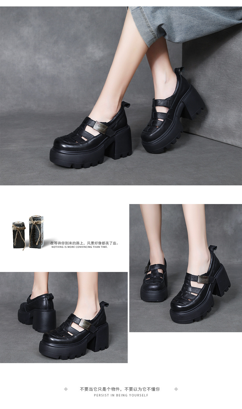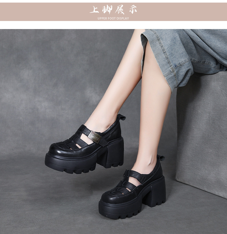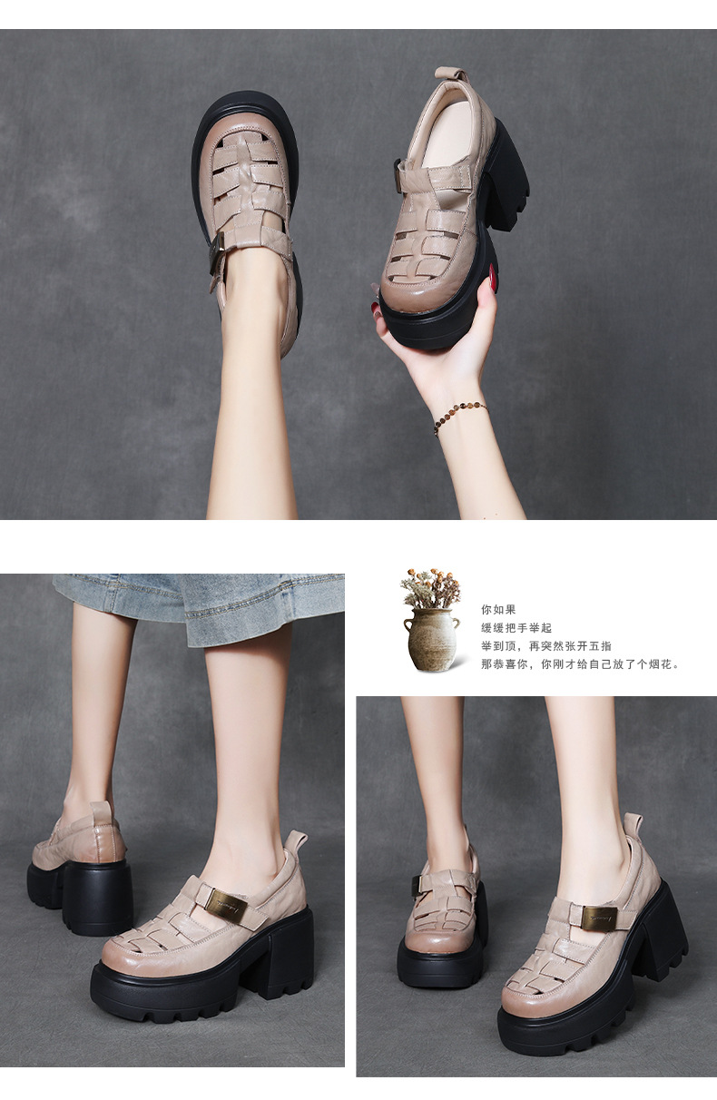 Delphinium 2024 새로운 여성 플랫폼 신발 발가락 로마 샌들 여성용 두꺼운 하이힐 빈티지 할로우 짠 돼지 케이지 신발스토어 가기