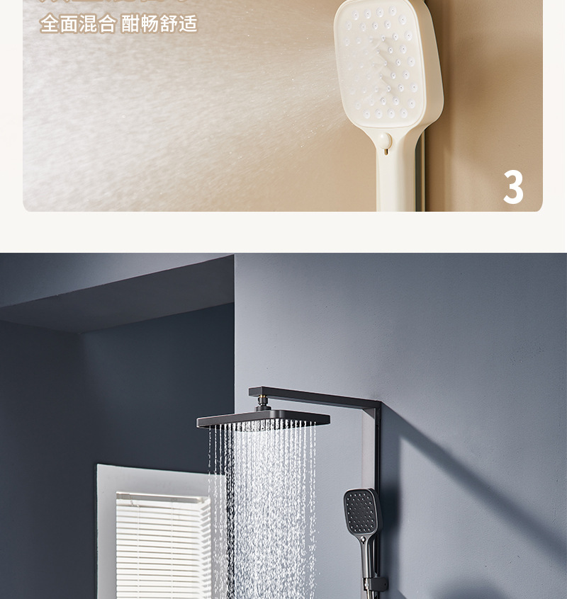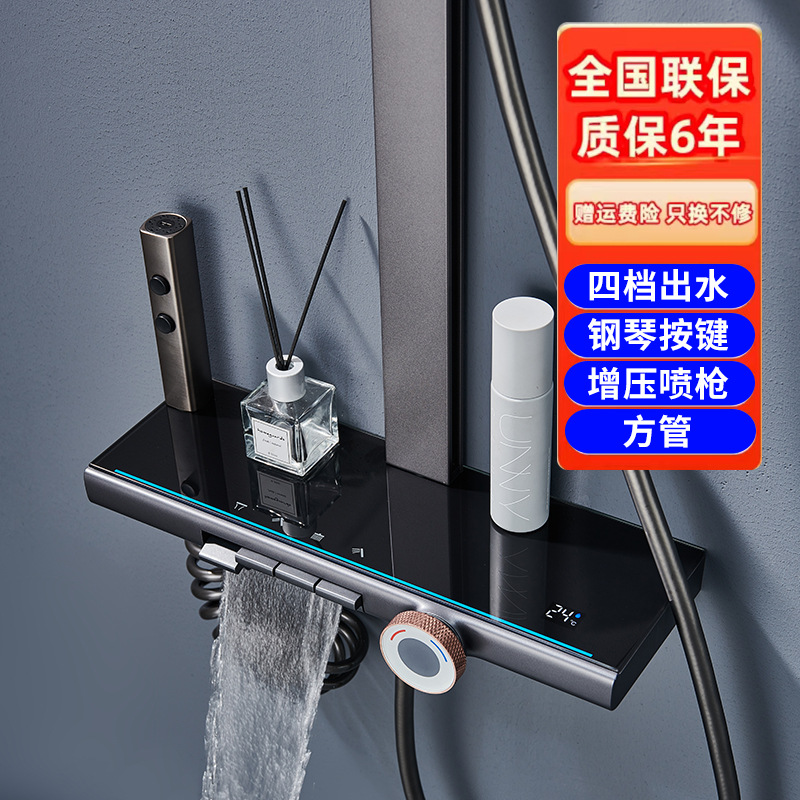 온도 조절 샤워기 고급 4단계 흑백 온도 조절 샤워기 세트 가정용 레인 샤워기 고압 샤워기 그레이스토어 가기