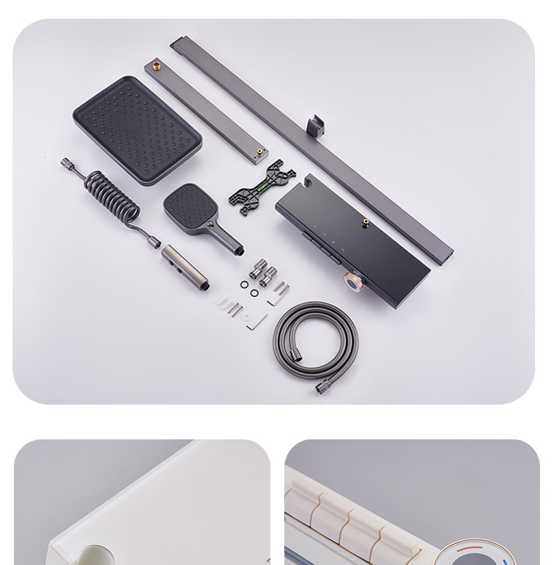 온도 조절 샤워기 고급 4단계 흑백 온도 조절 샤워기 세트 가정용 레인 샤워기 고압 샤워기 그레이