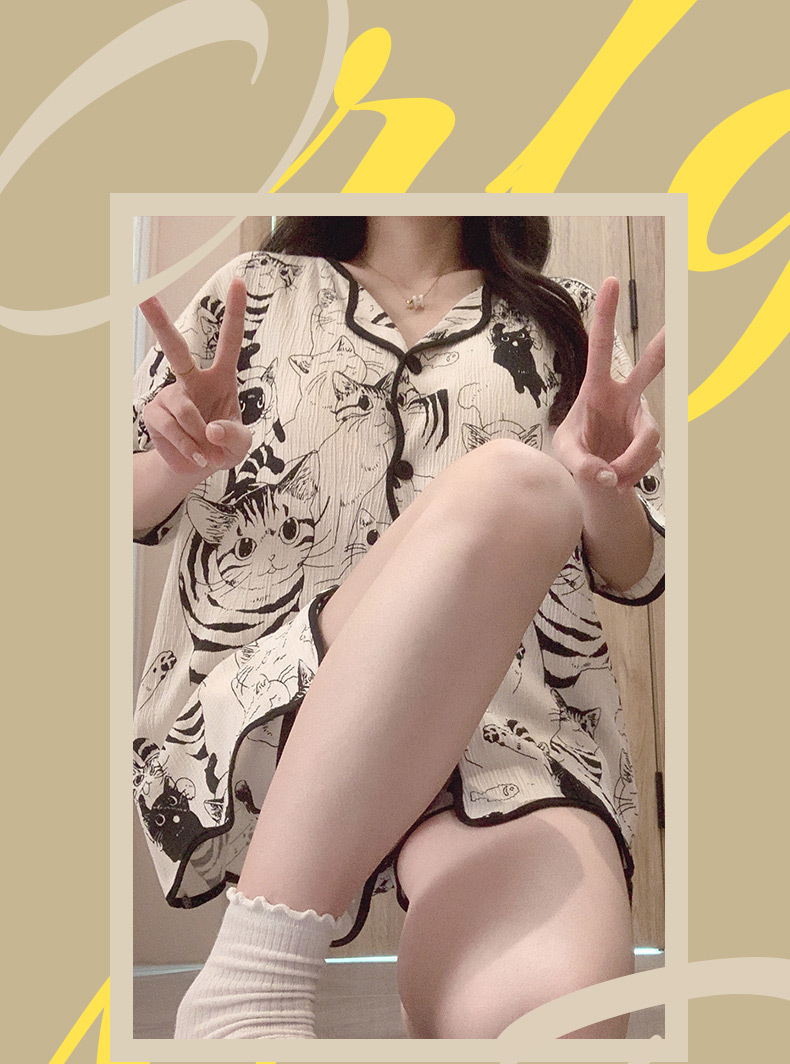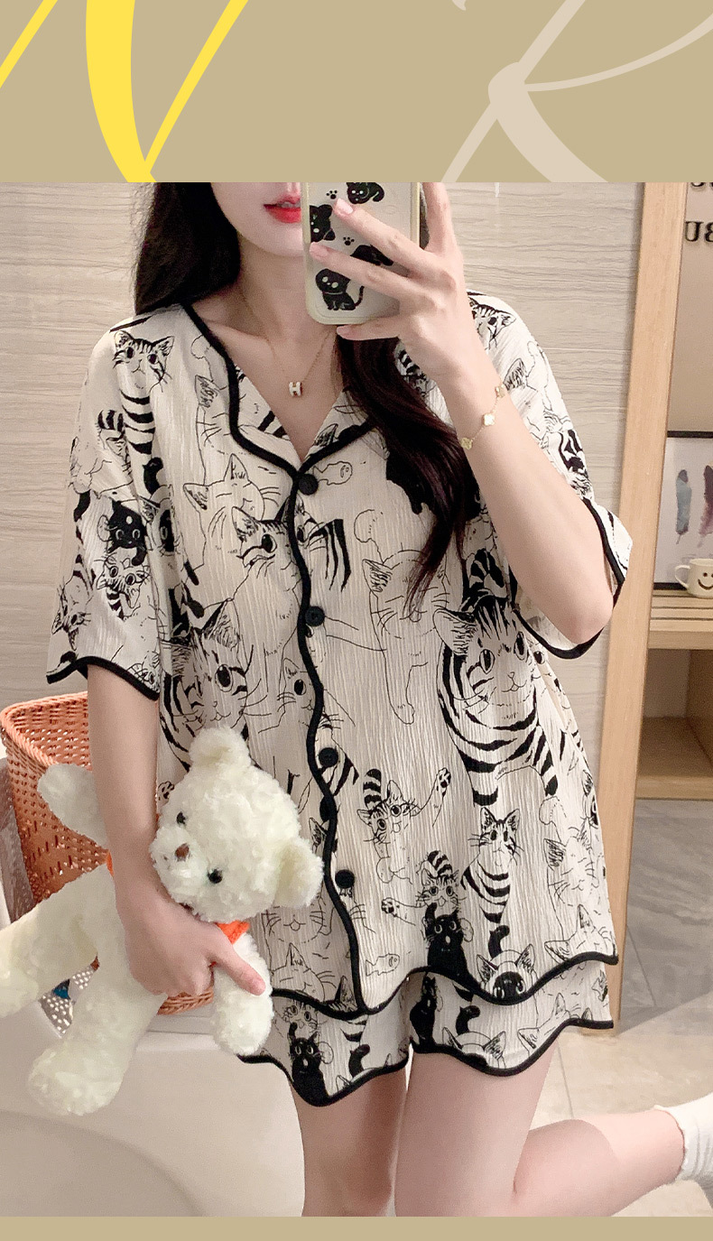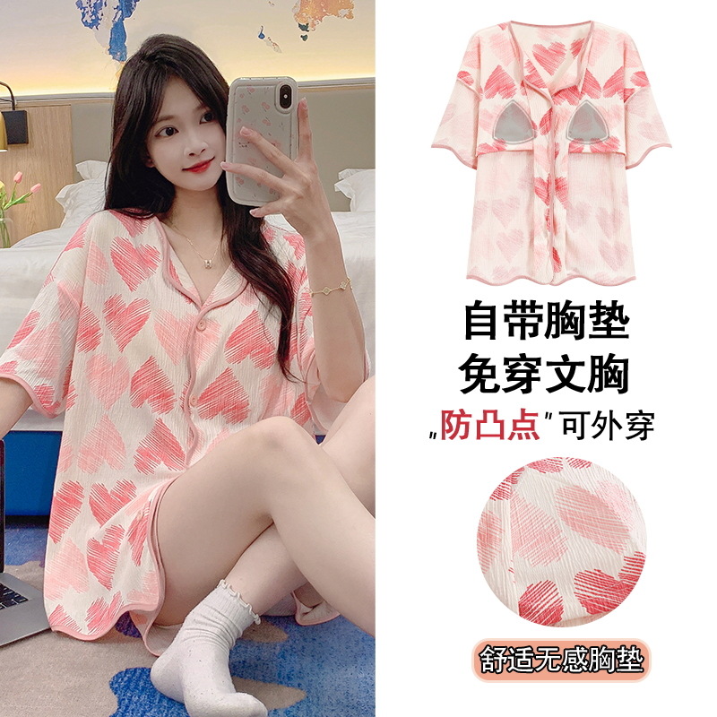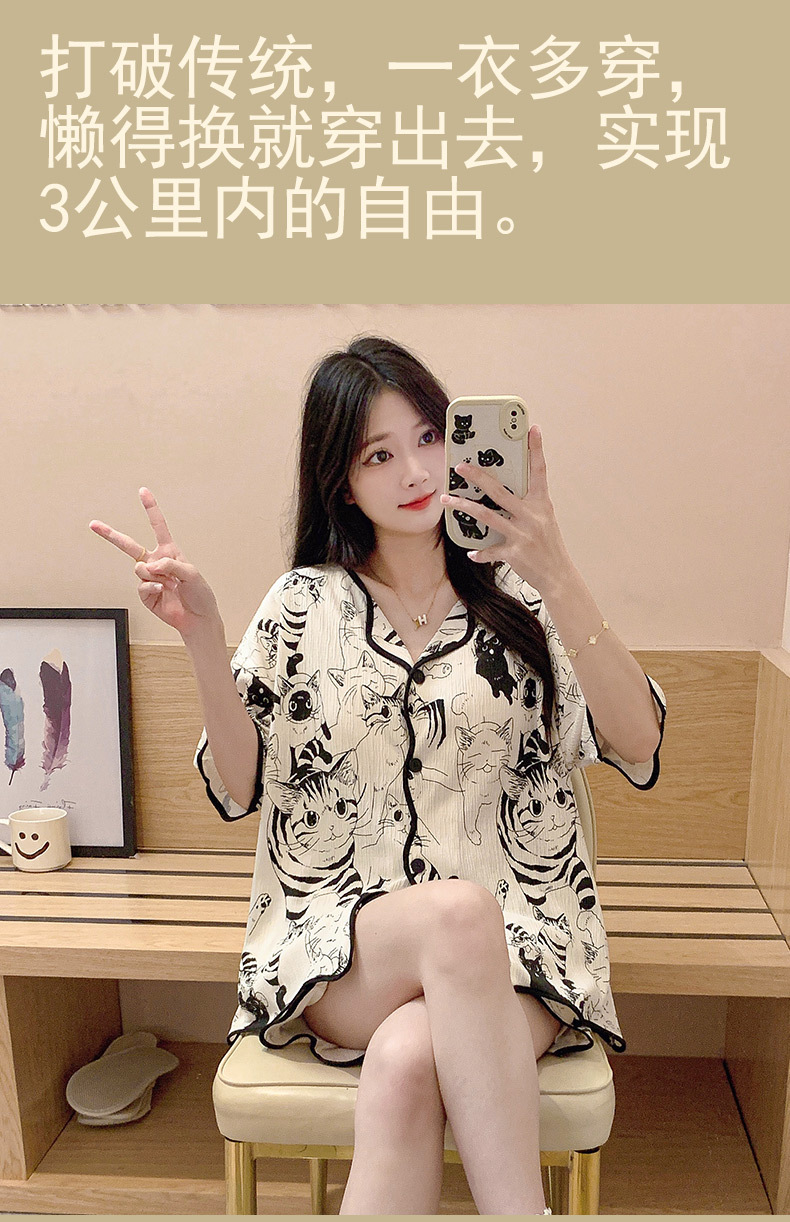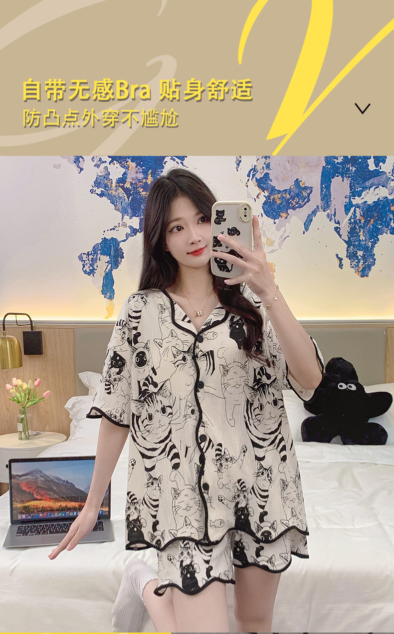 새로운 스타일 잠옷 여성용 여름 반팔 반바지, 가슴 패드 통합 여름 플러스 사이즈 카디건 세트 홈 의류스토어 가기