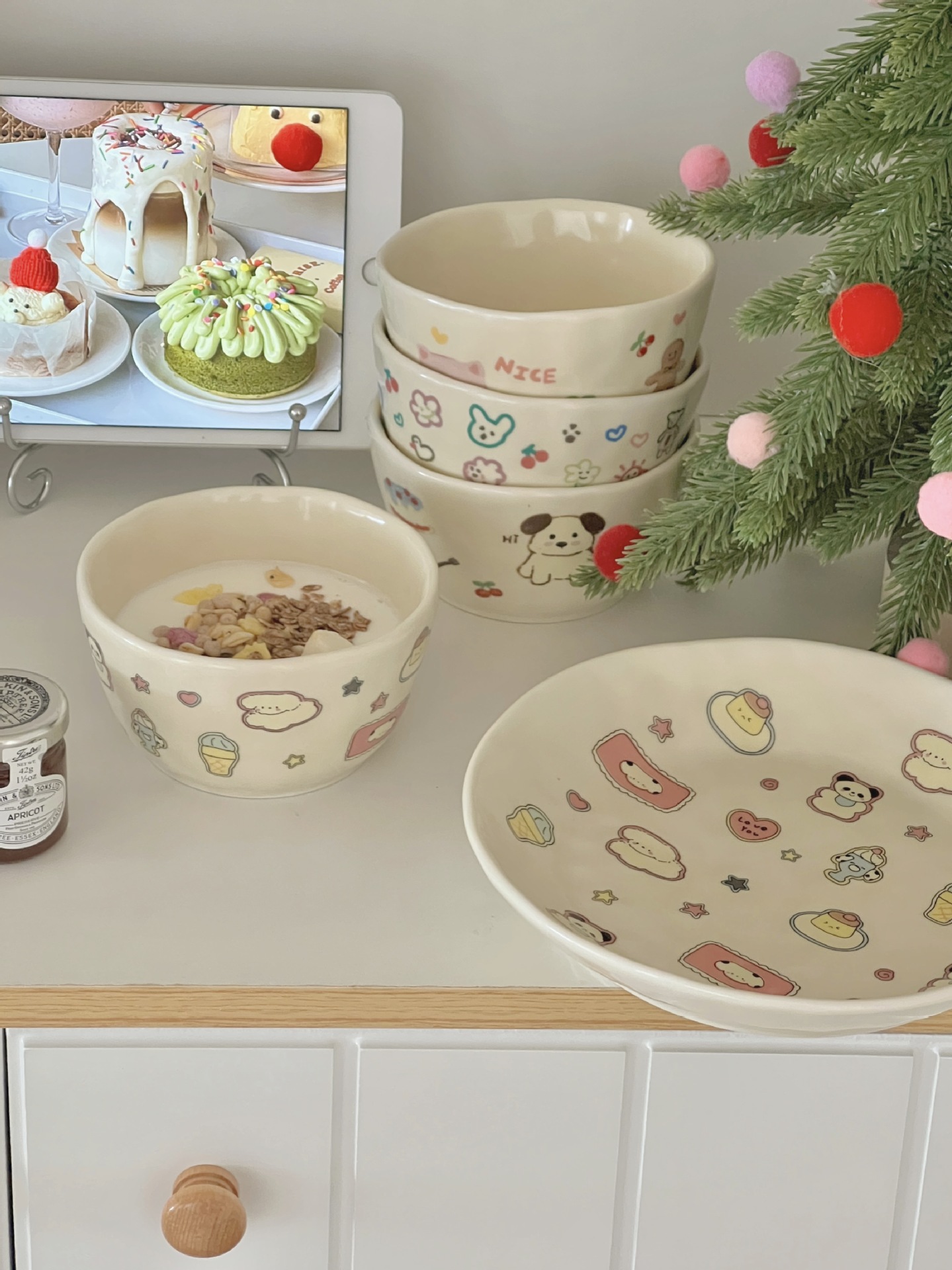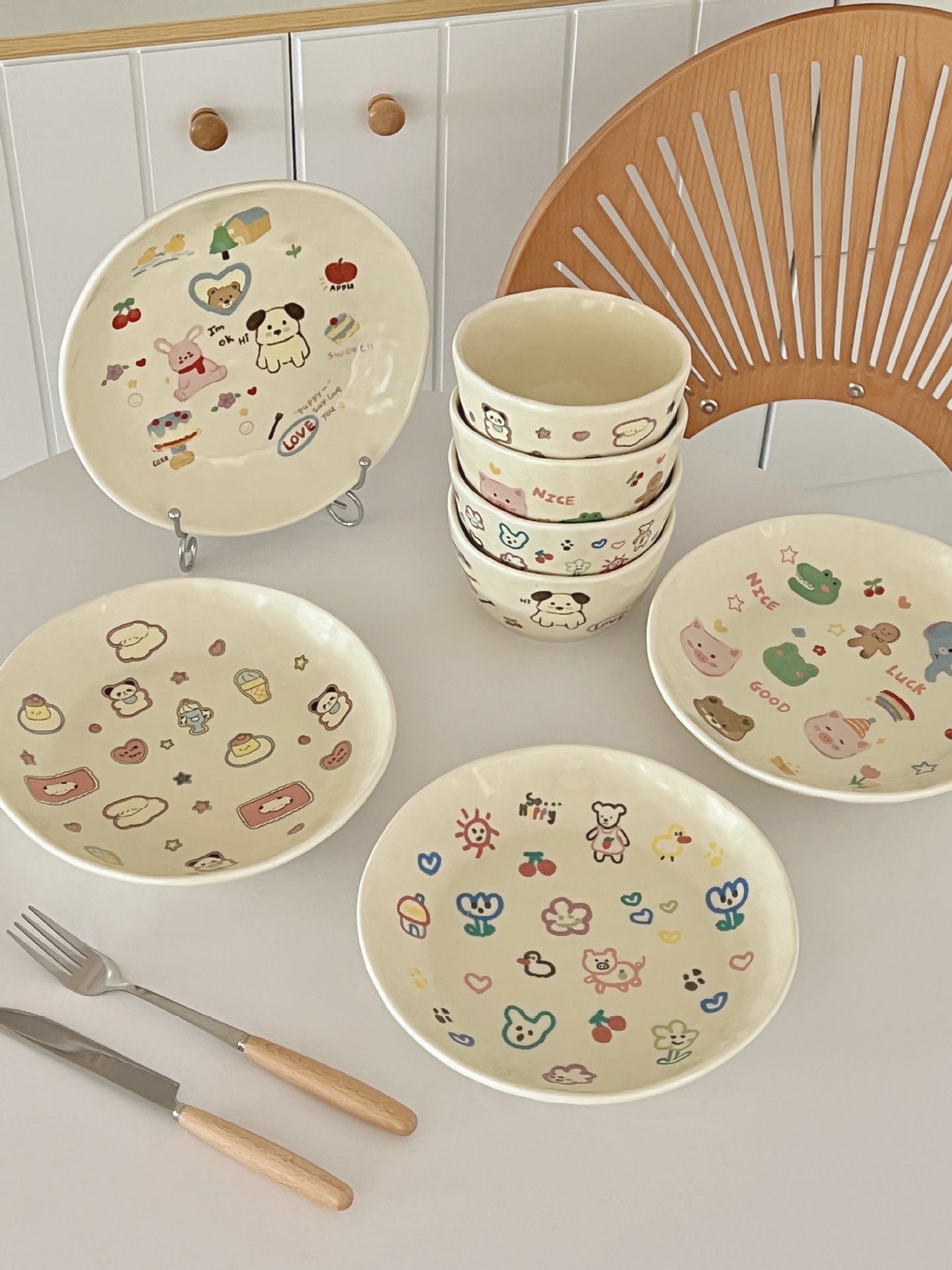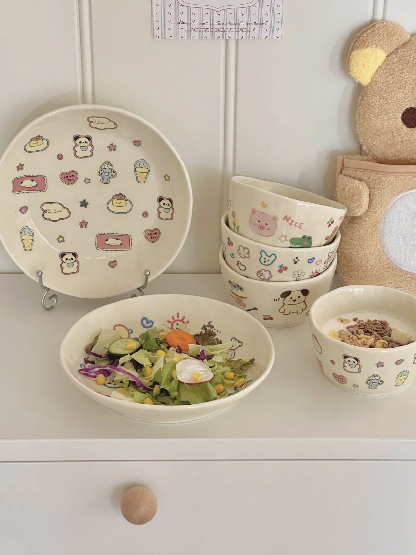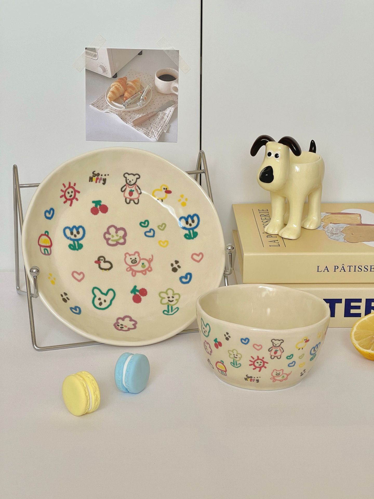 [Guohe 도자기] 만화 세라믹 낙서 그릇 사탕 밥 그릇 세라믹 그릇 과일 그릇을 엽니 다