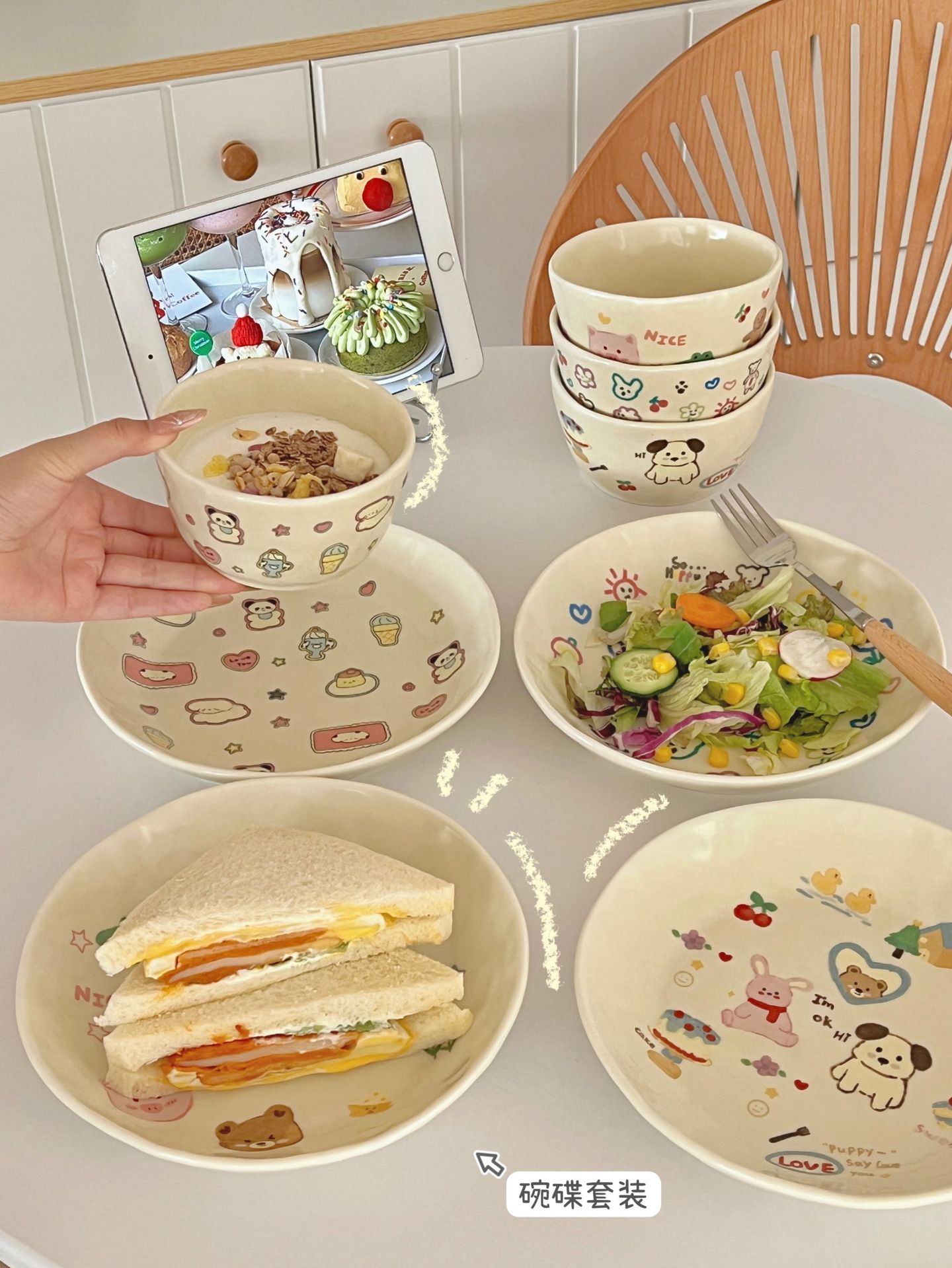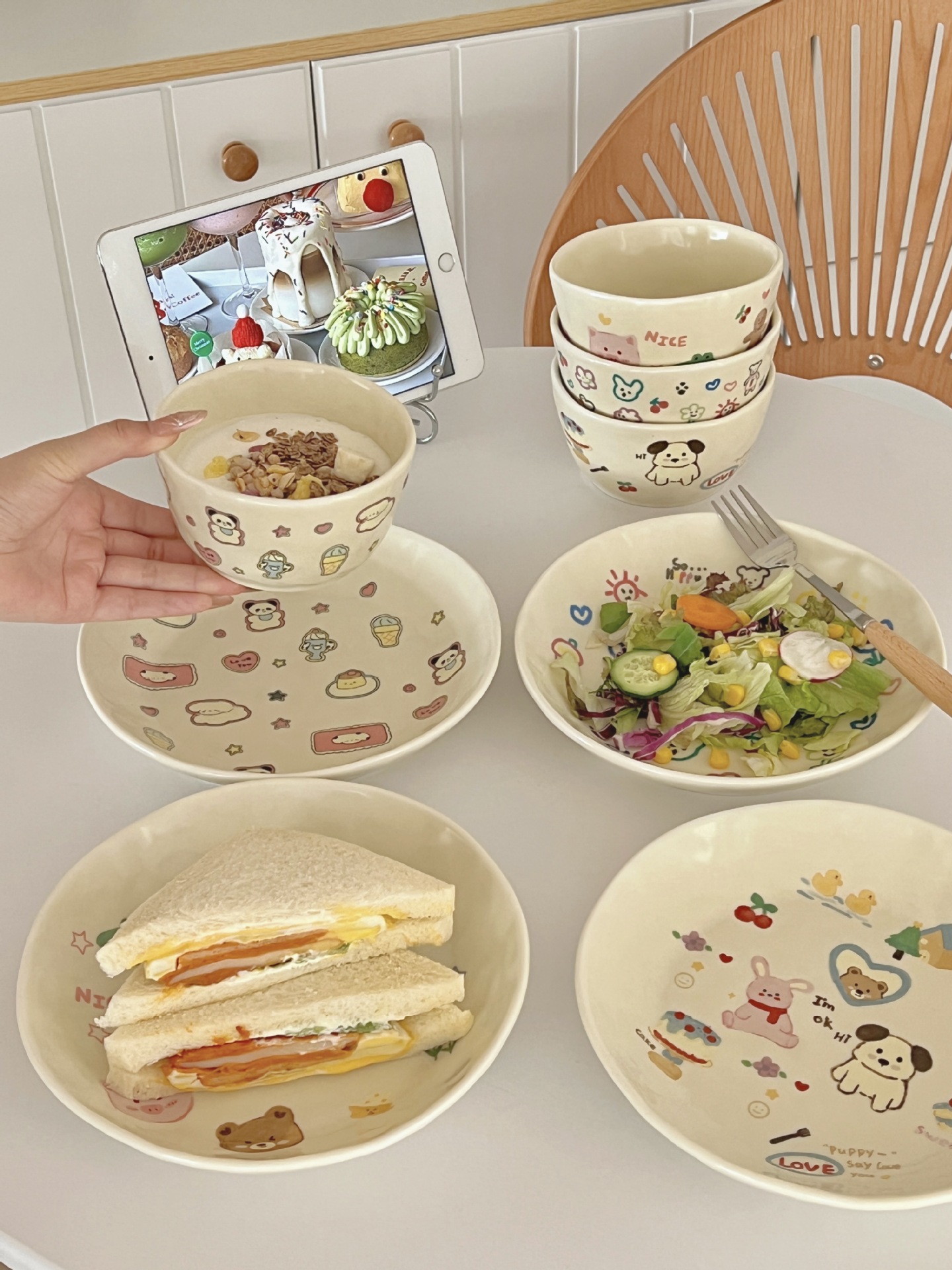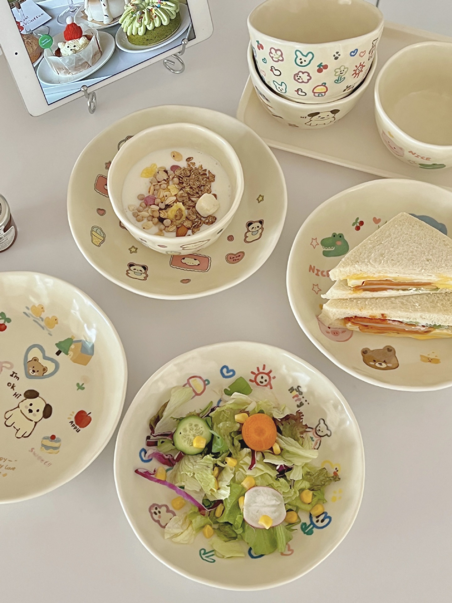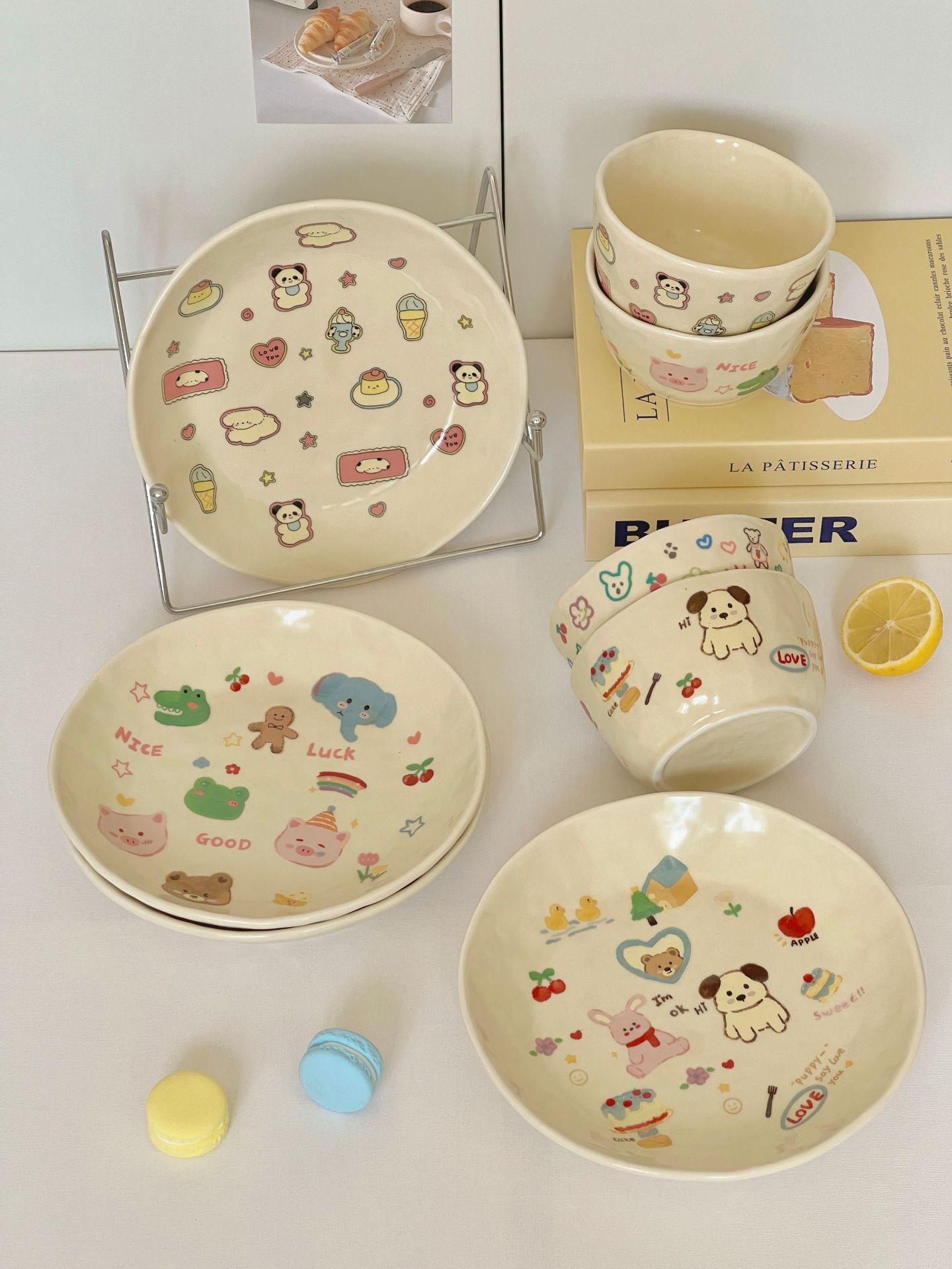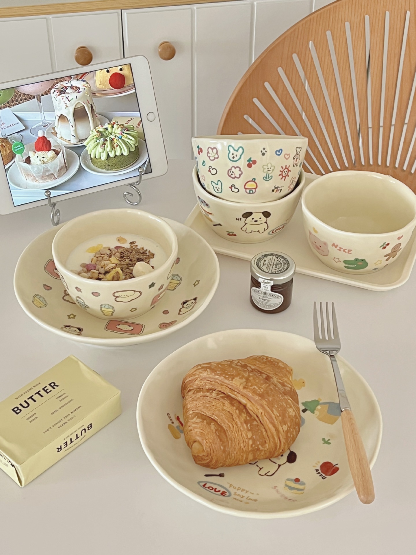 [Guohe 도자기] 만화 세라믹 낙서 그릇 사탕 밥 그릇 세라믹 그릇 과일 그릇을 엽니 다