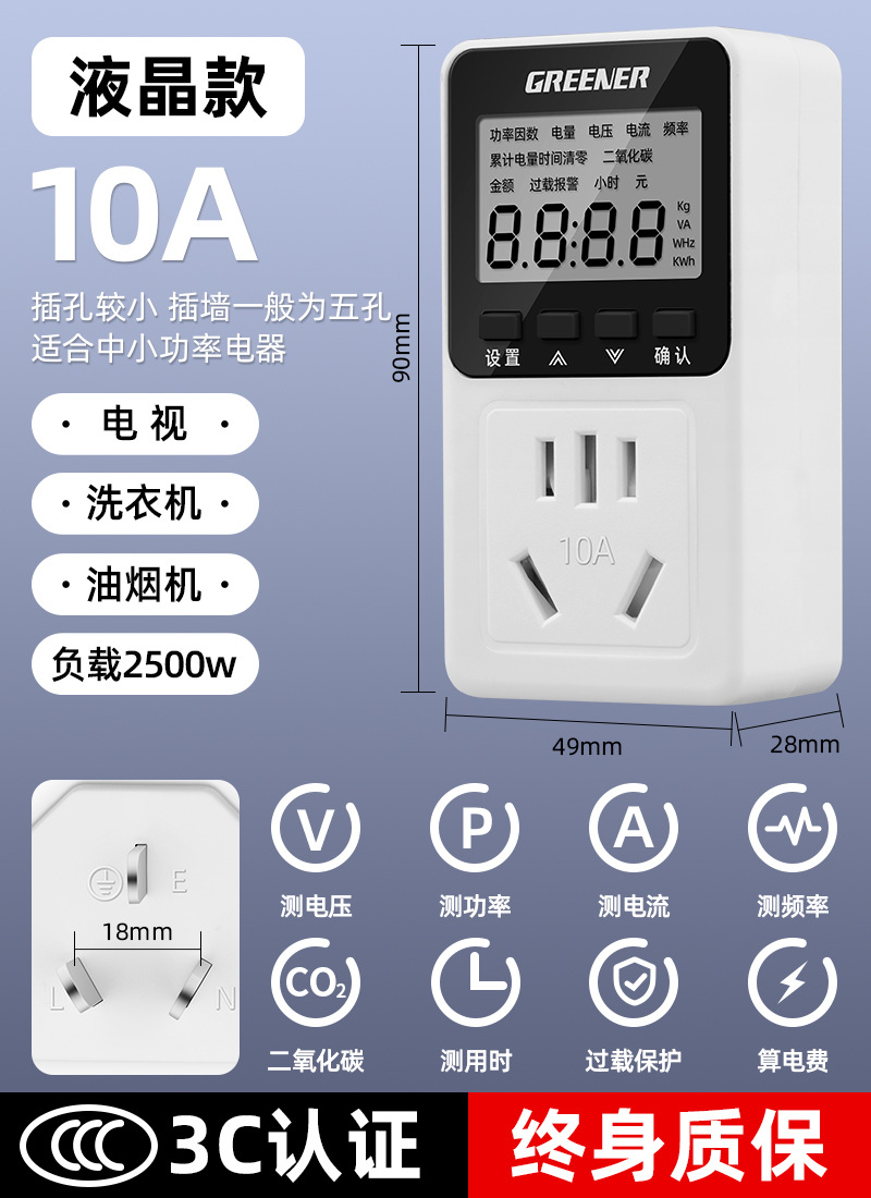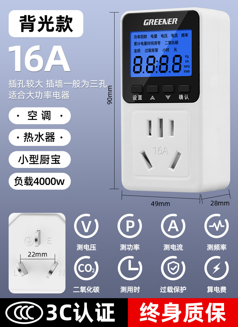 녹색 숲 에어컨 전기 계량 소켓 전력 모니터링 전력 소비 디스플레이 전력 소비 테스터 전기 미터