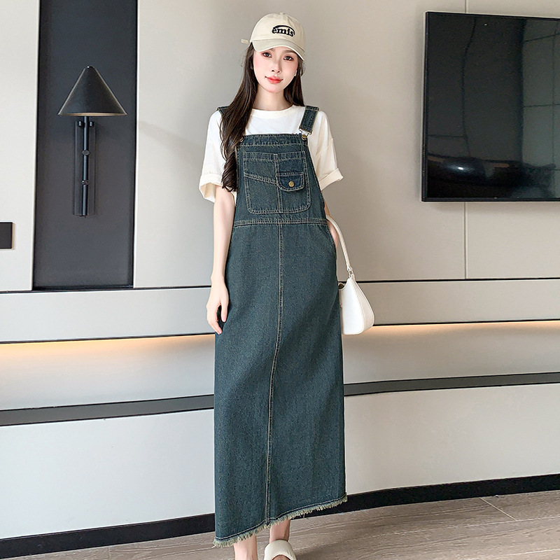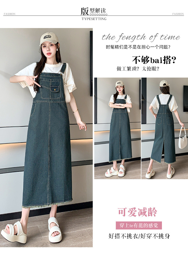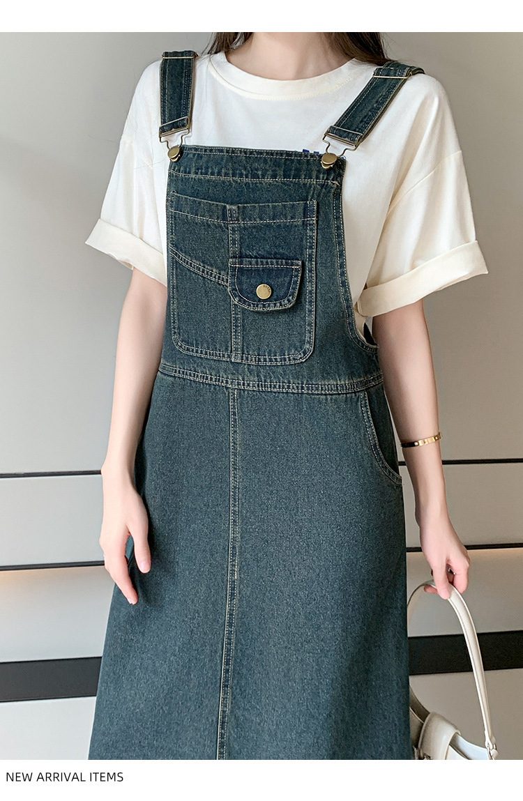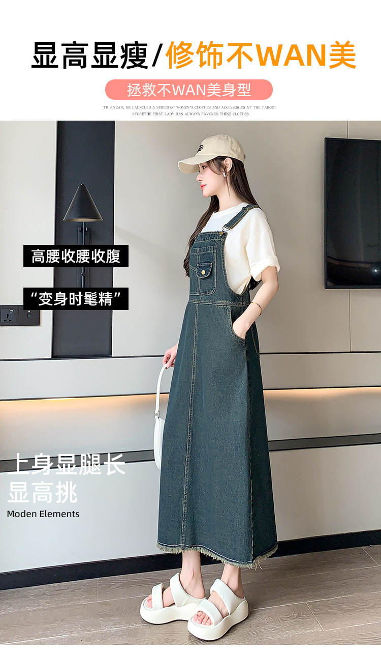 봄과 가을 새로운 느슨한 캐주얼 올 매치 데님 스트랩 원피스 중간 길이의 플러스 사이즈 느슨한 슬리밍 원피스 여성스토어 가기
