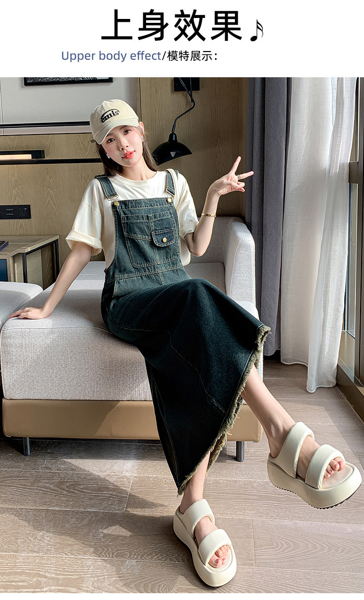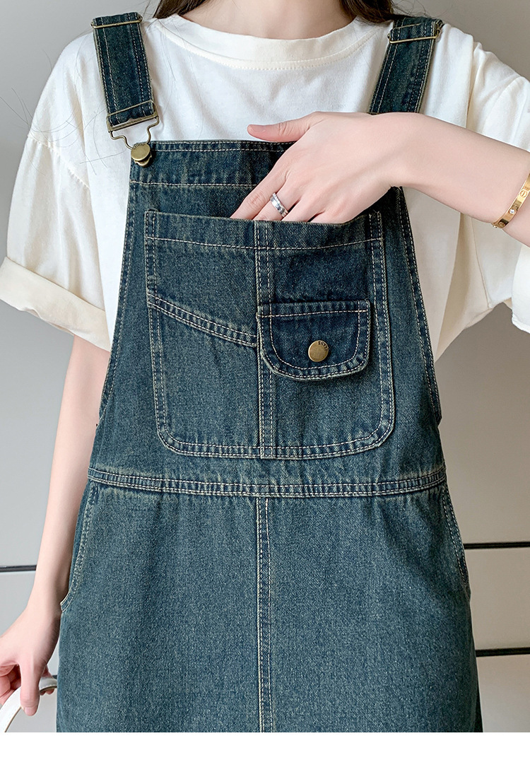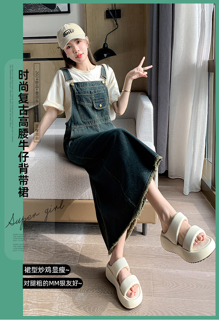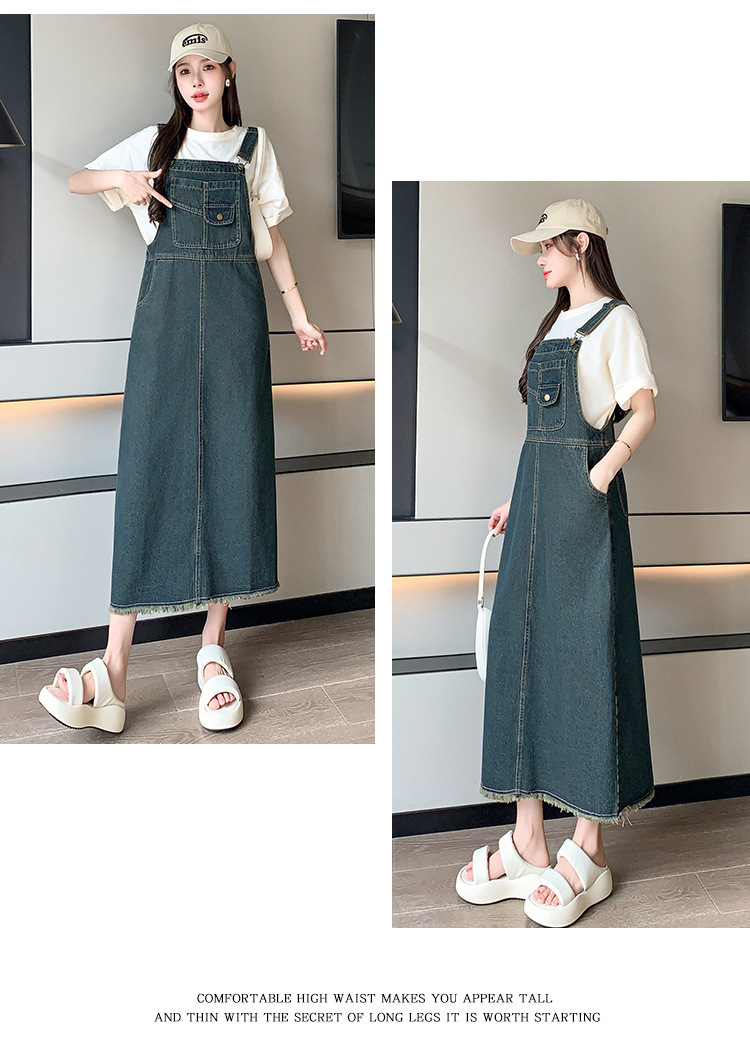 봄과 가을 새로운 느슨한 캐주얼 올 매치 데님 스트랩 원피스 중간 길이의 플러스 사이즈 느슨한 슬리밍 원피스 여성스토어 가기