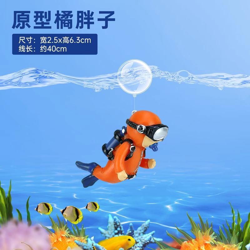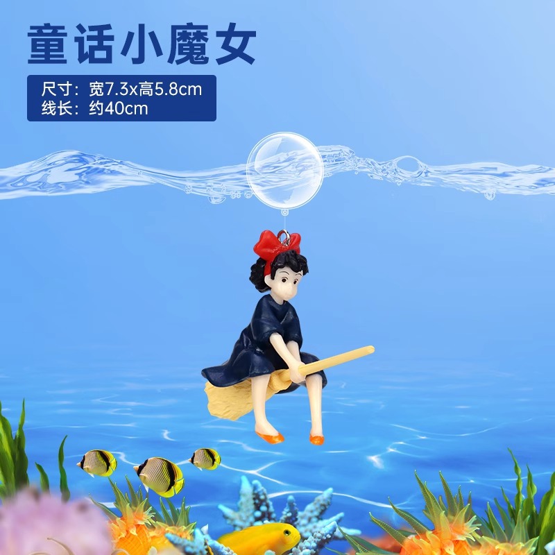 물고기 탱크 풍경 창조적 인 부동 장식 작은 마녀 푸른 지방 손쿠 다이버 수족관 문 고양이스토어 가기