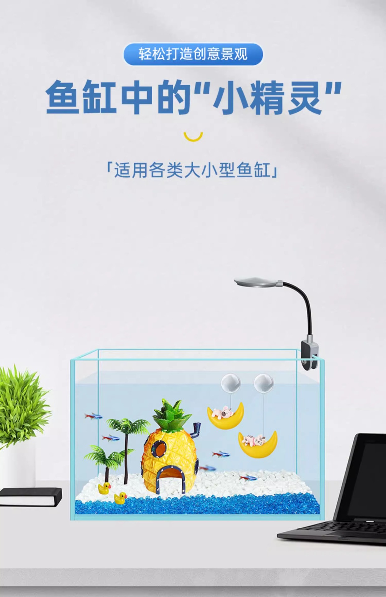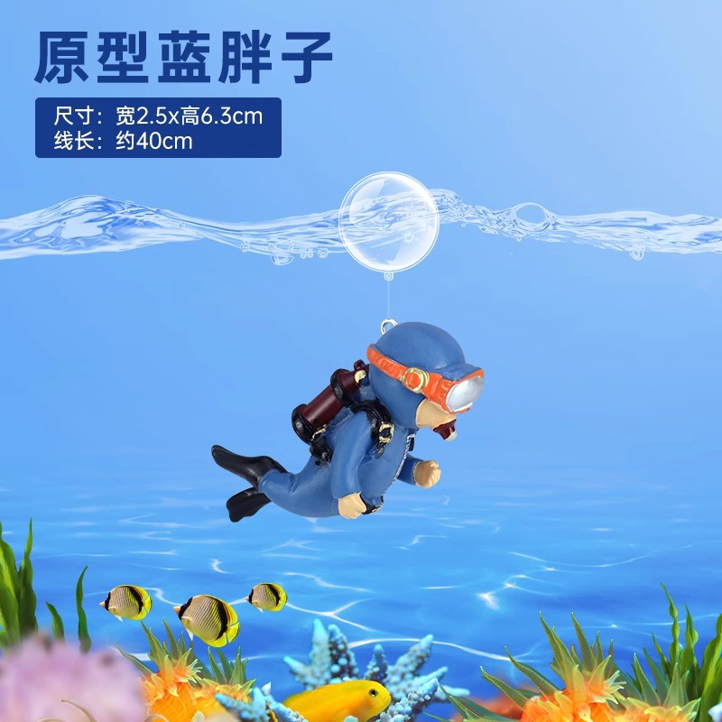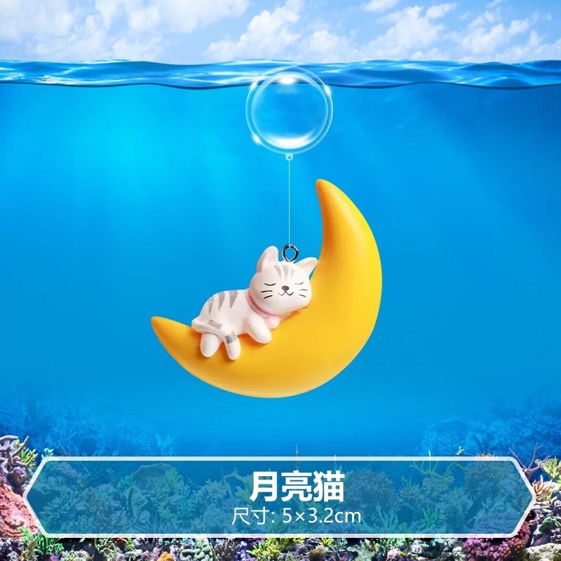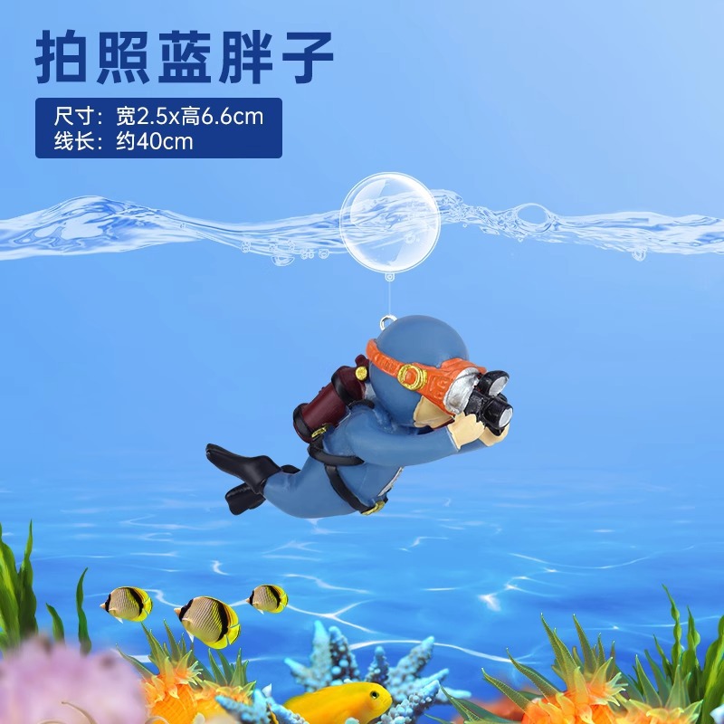 물고기 탱크 풍경 창조적 인 부동 장식 작은 마녀 푸른 지방 손쿠 다이버 수족관 문 고양이