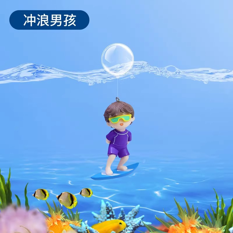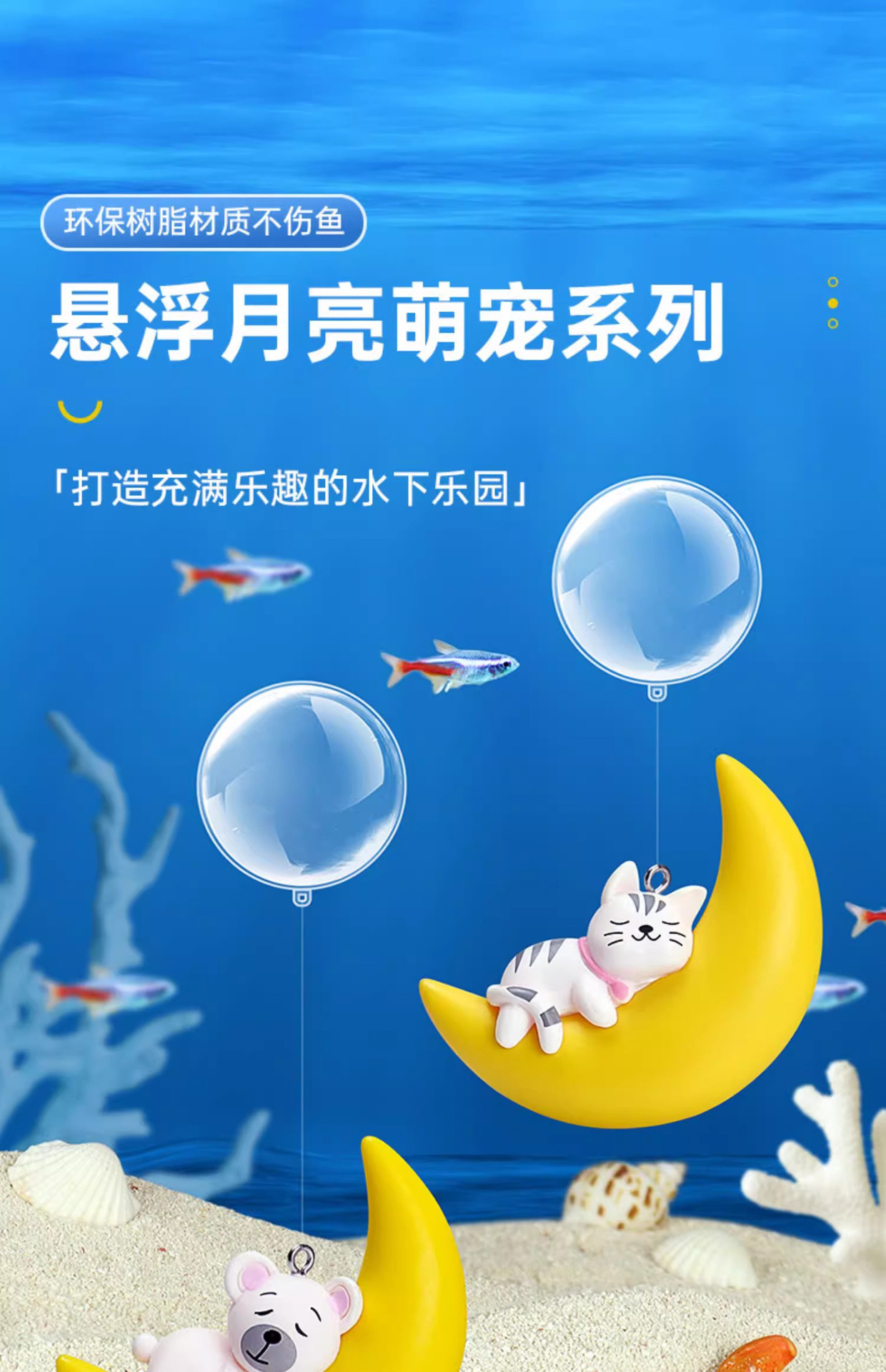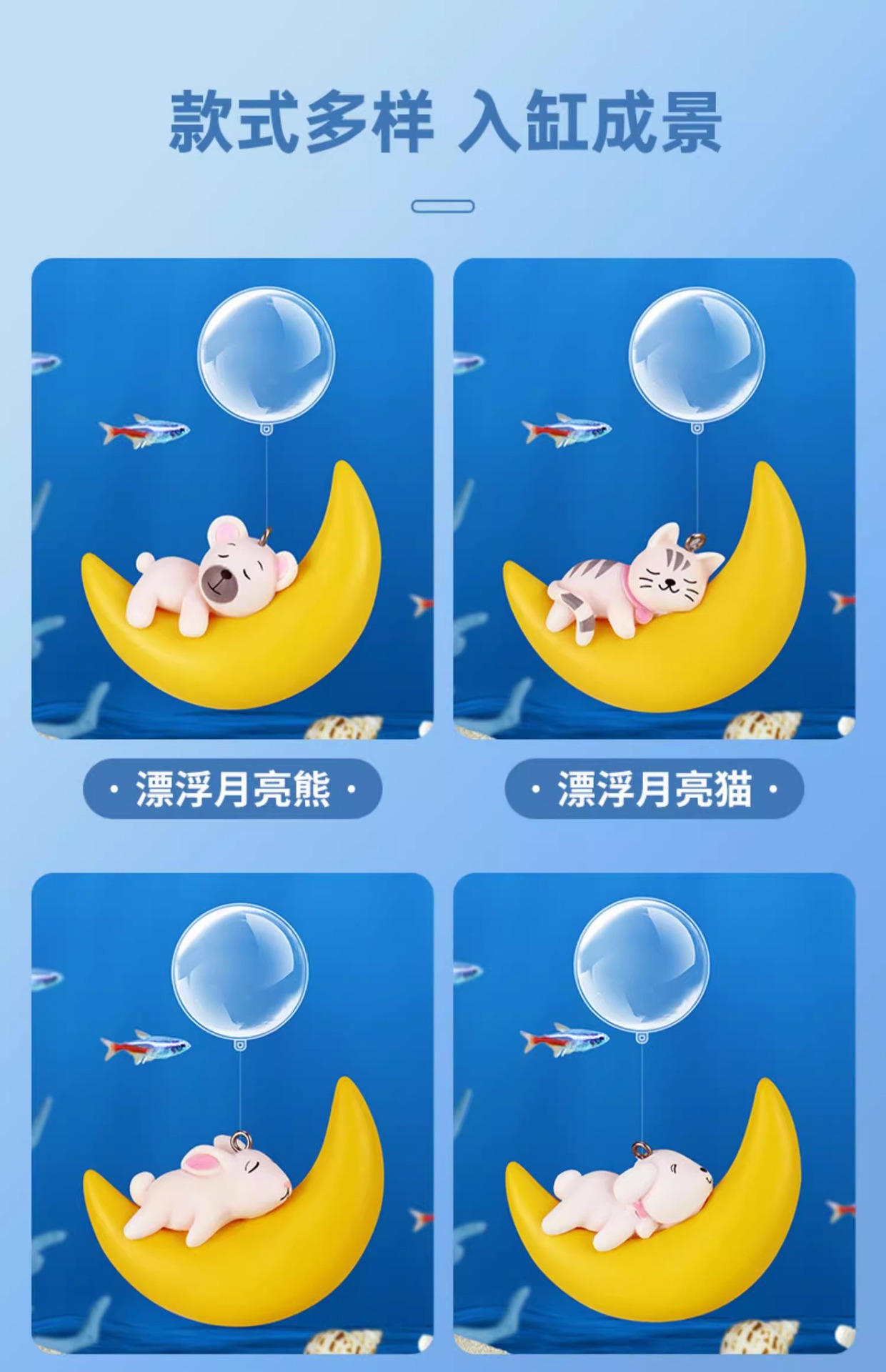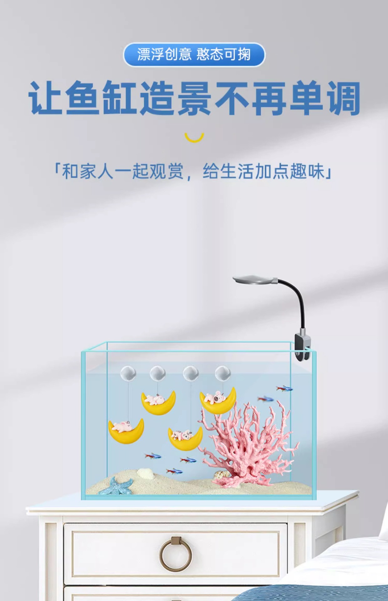 물고기 탱크 풍경 창조적 인 부동 장식 작은 마녀 푸른 지방 손쿠 다이버 수족관 문 고양이