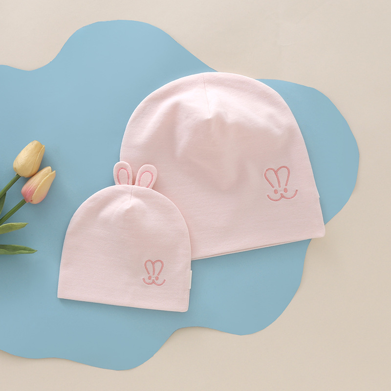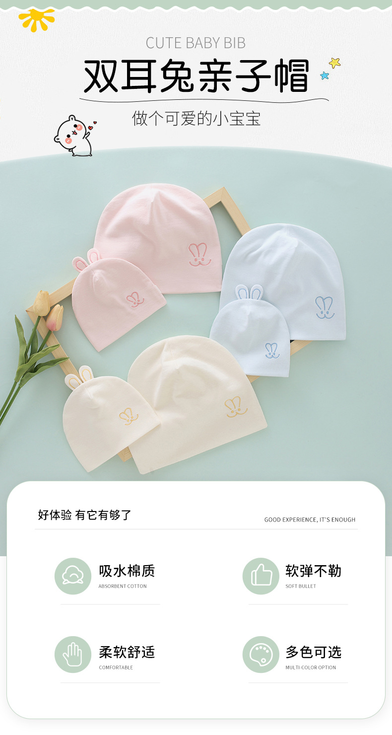 엣지 아기 풀오버 모자면 신생아 아기 모자 어린이 모자 만화 돔 부드러운 탄성 이중 토끼 귀 부모 모자스토어 가기