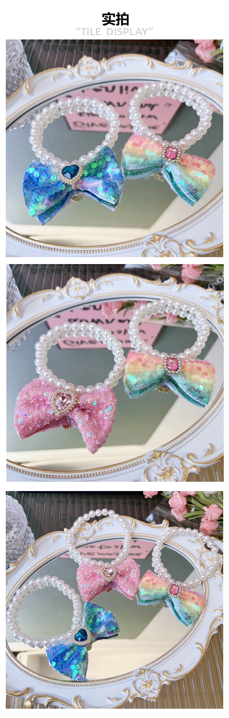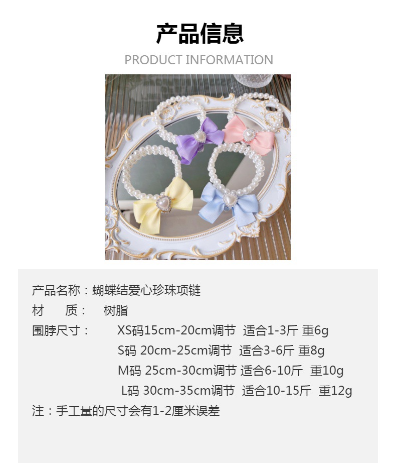 달콤한 활 애완 동물 목걸이 귀여운 강아지 테디 넥 링 머펫 고양이 진주 목걸이 도매