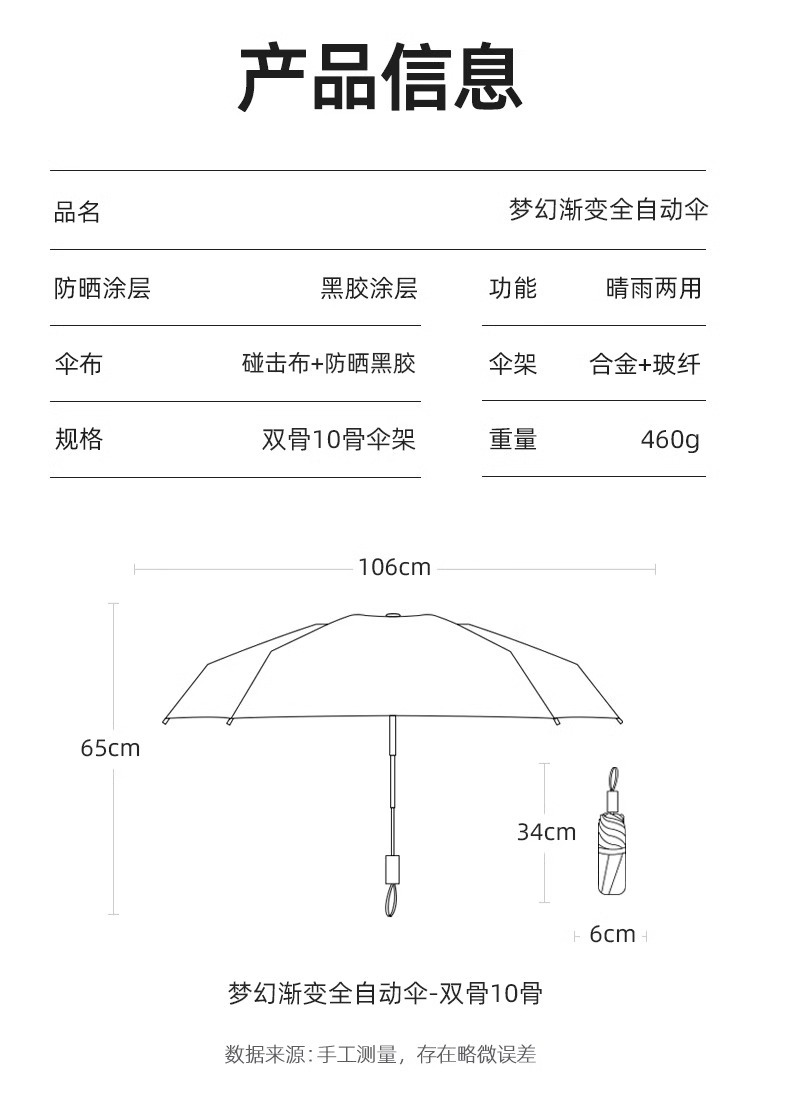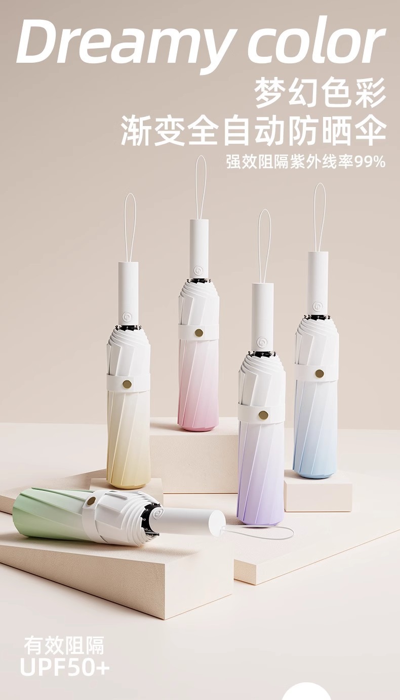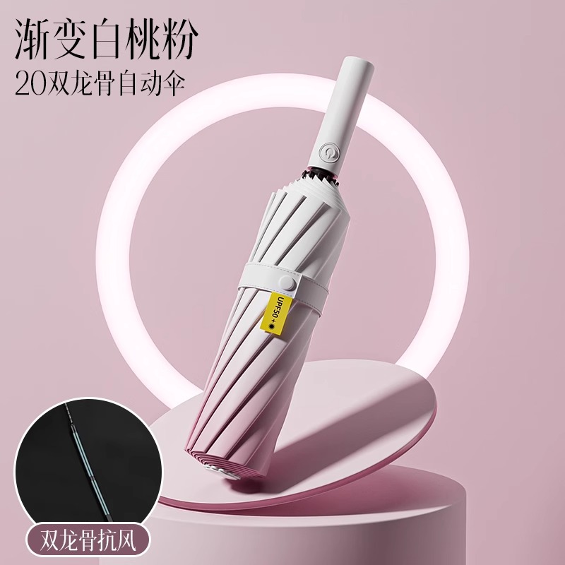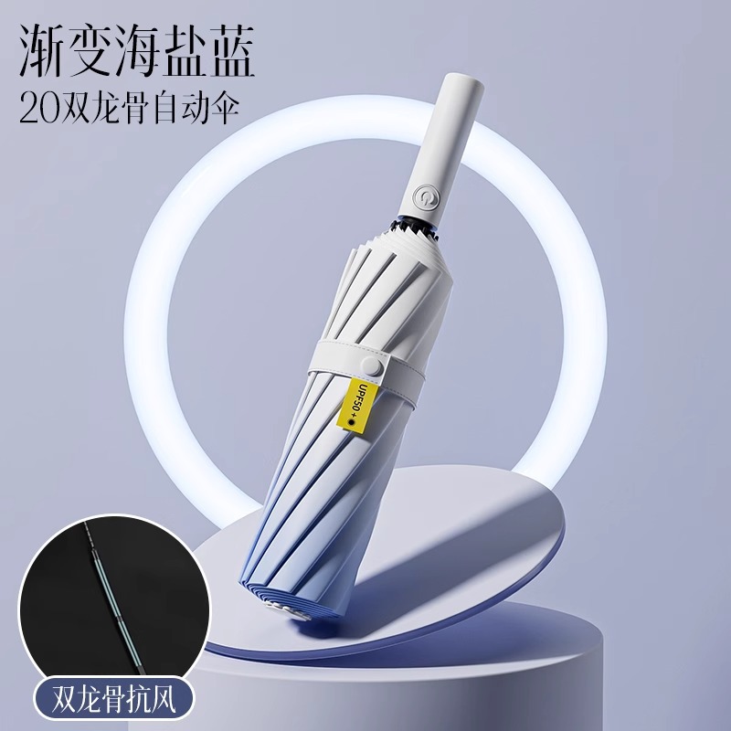 그라디언트 더블 드래곤 뼈 완전 자동 우산 여성의 햇빛과 비 이중 목적 접히는 반대로 바람 햇빛 태양 보호 자외선 보호 태양 우산