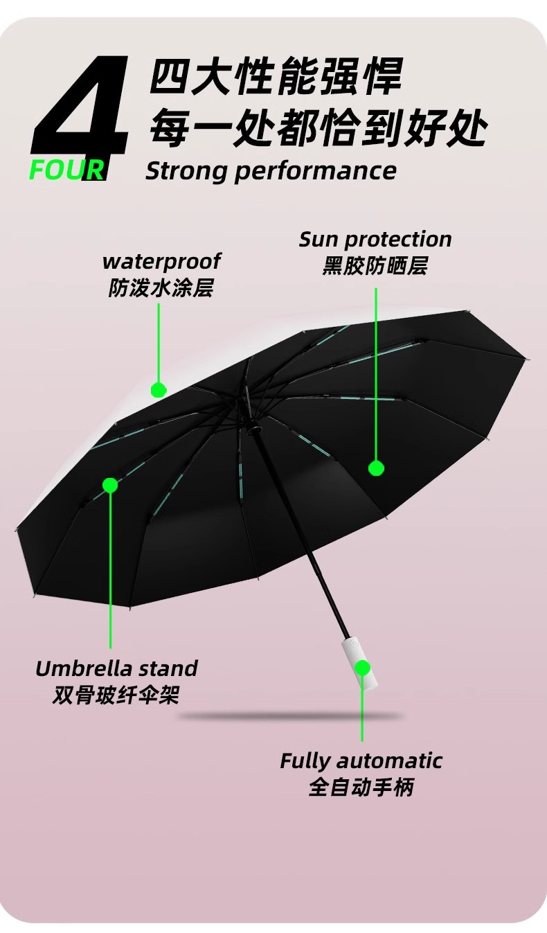 • [더블 뼈 자동] 10 개의 뼈와 20 개의 방풍 뼈 블랙