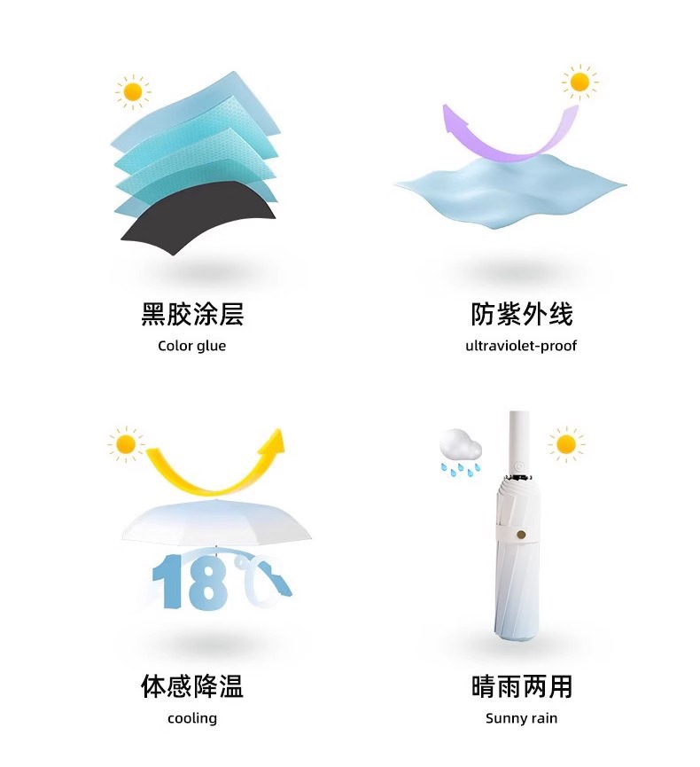 • [자동] 8 뼈 검은 고무 우산 한여름 분말