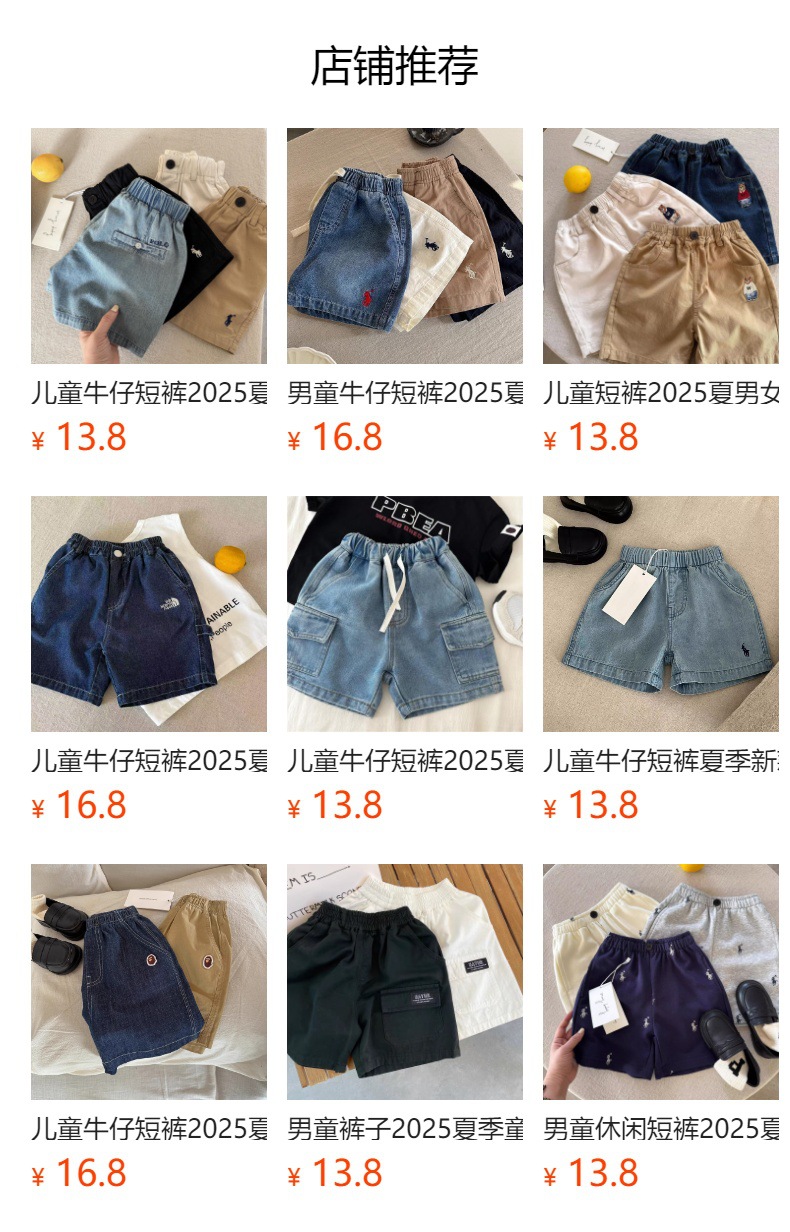 재고 있음! 아동용 데님 반바지 2025 여름 신상 데님 한국 스타일 남녀 아기 데님 반바지 도매스토어 가기