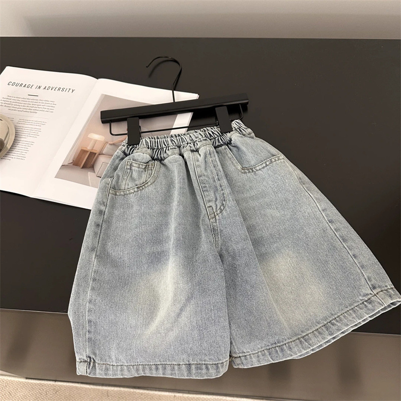 재고 있음! 아동용 데님 반바지 2025 여름 신상 데님 한국 스타일 남녀 아기 데님 반바지 도매