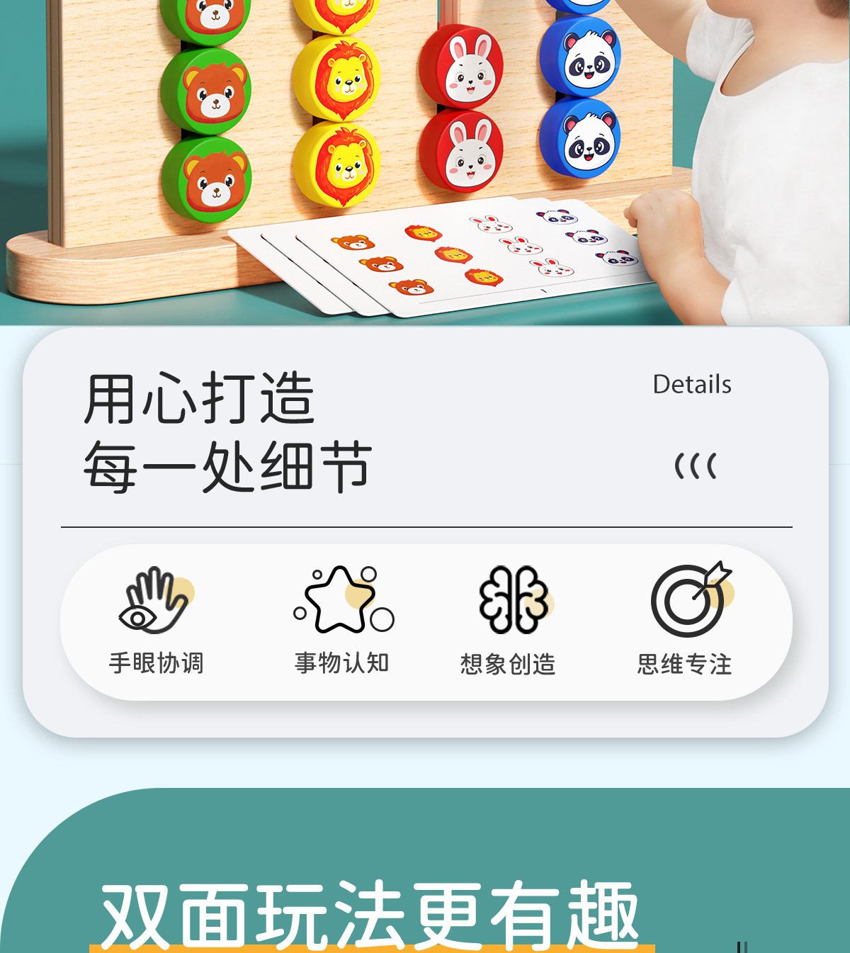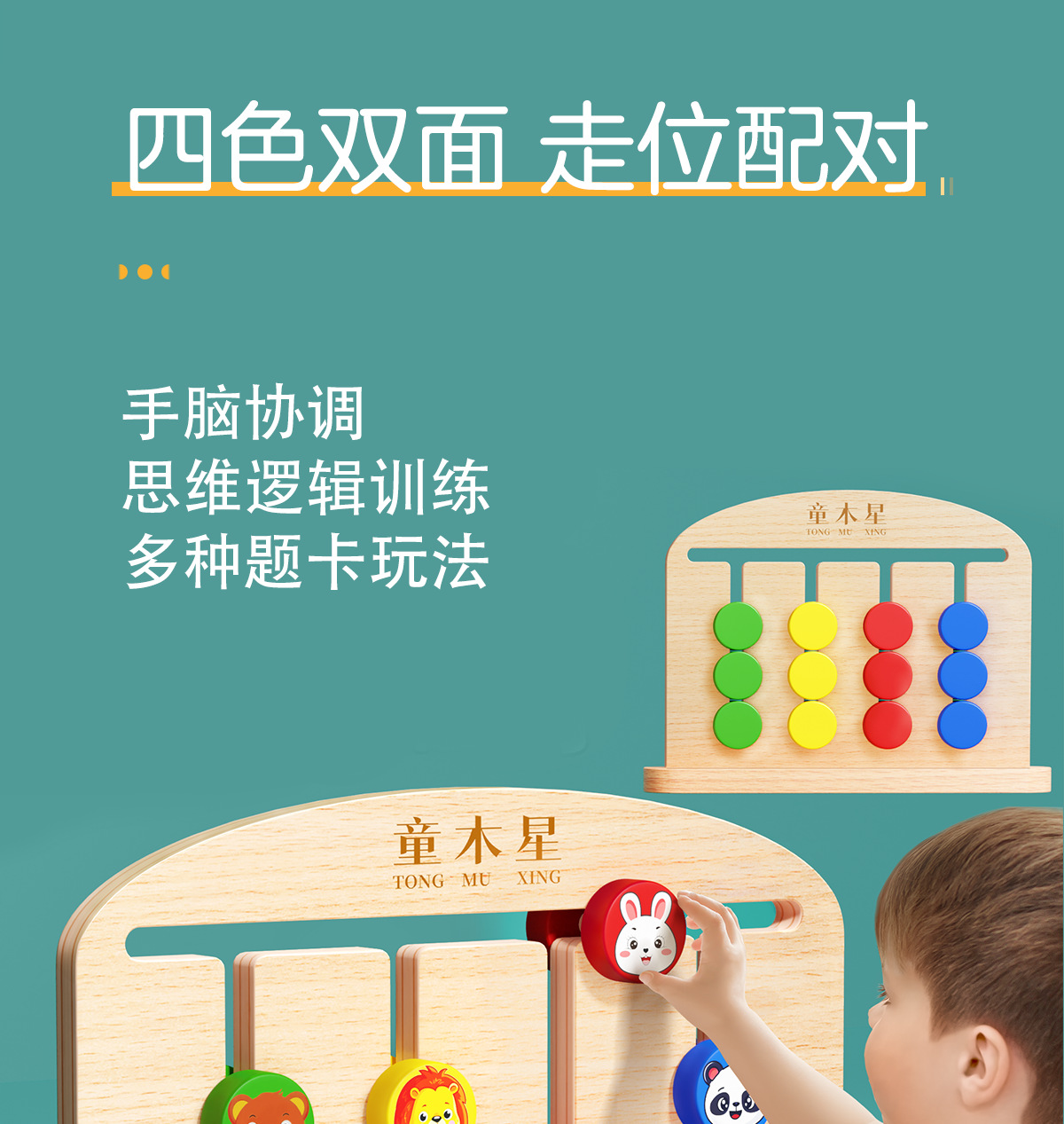 4 색 걷기 양면 체스 어린이 교육 논리적 사고 훈련 장난감 1-3 세 몬테소리 조기 교육 게임 보드