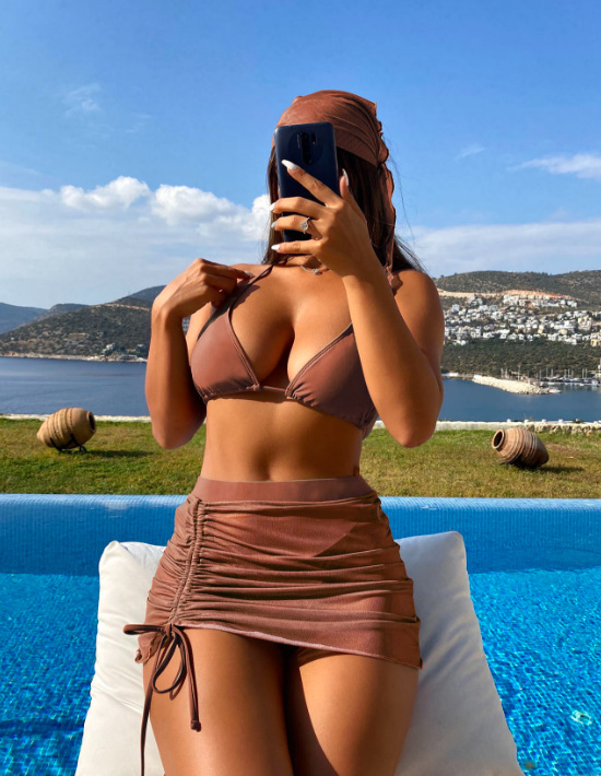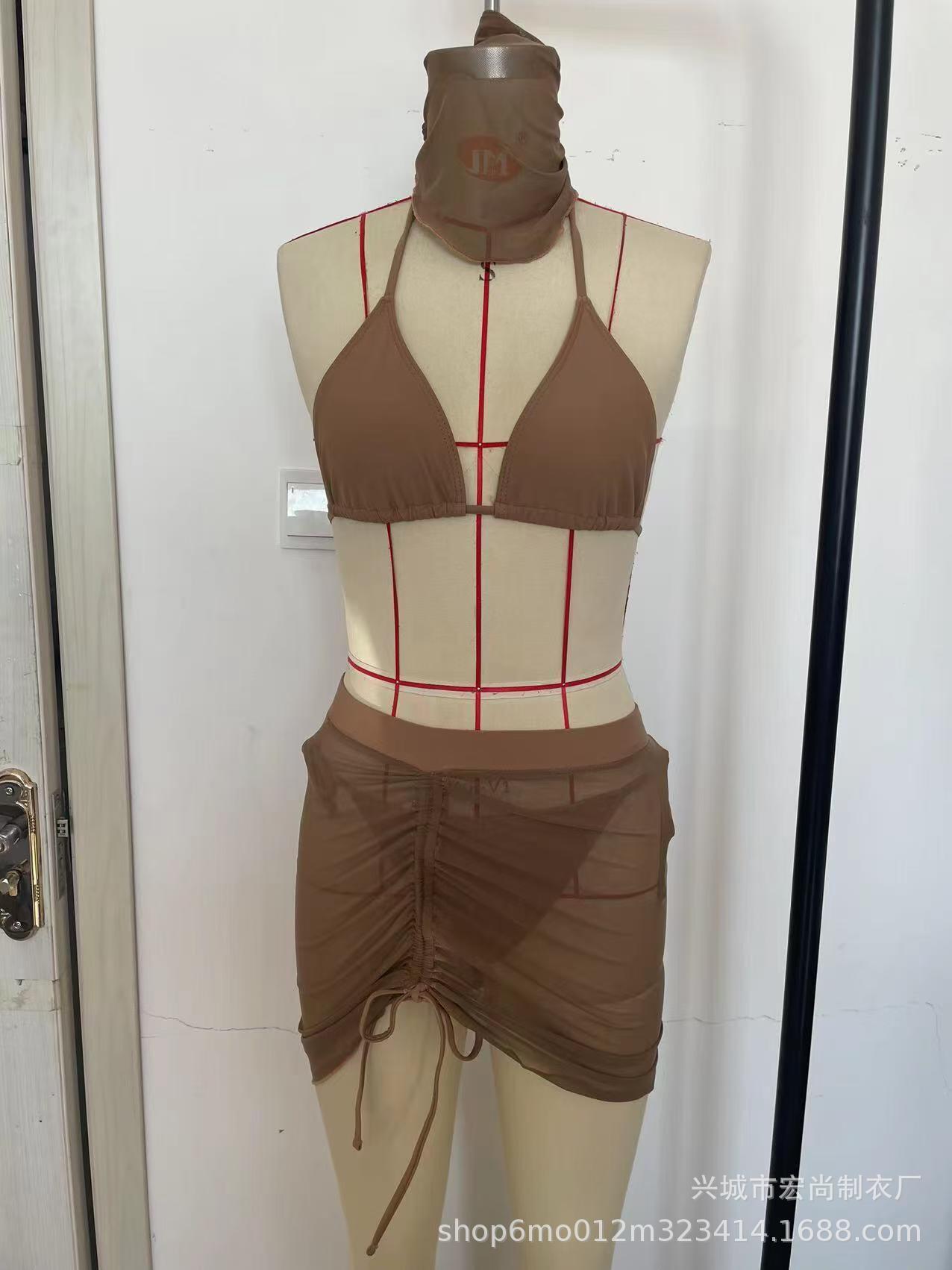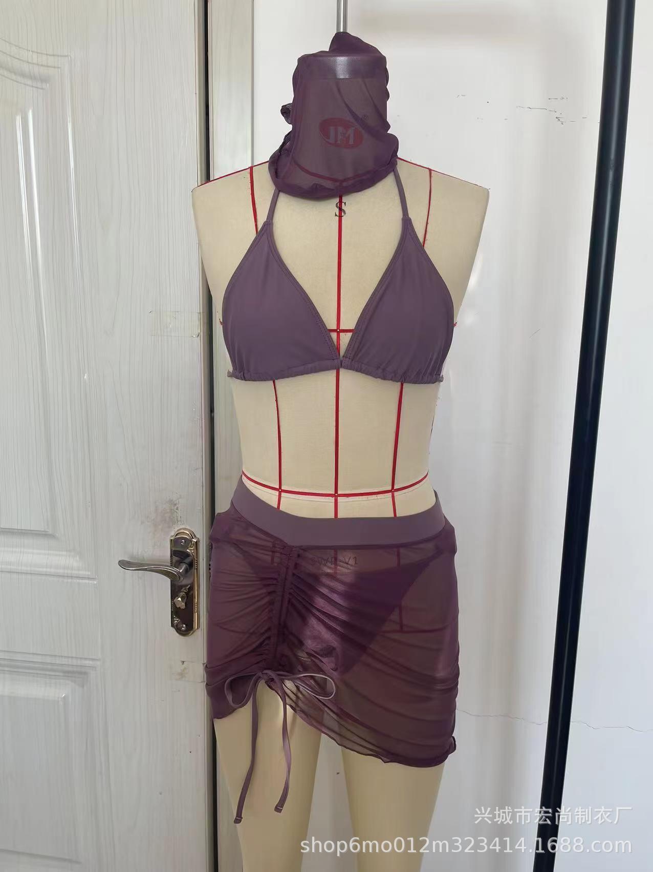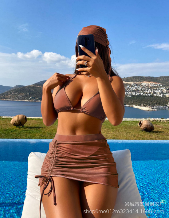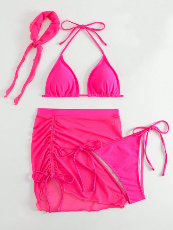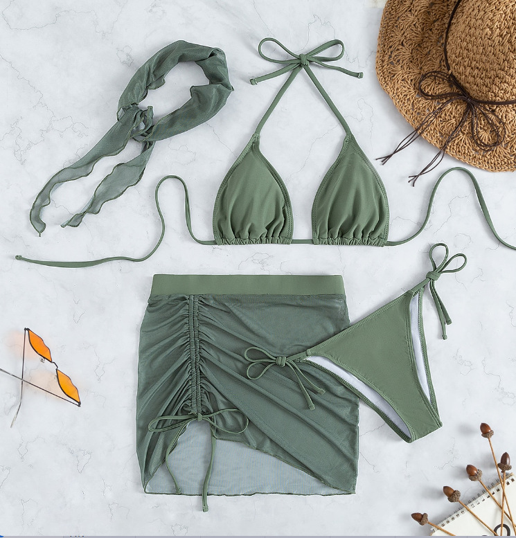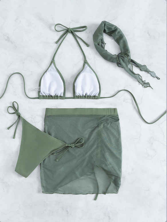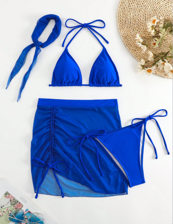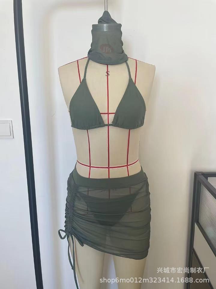2026년 신상 섹시한 플러스 사이즈 슬리밍 수영복 4종 세트, 끈 장식 주름 디자인 분리형 비키니와 헤드 스카프 커버업스토어 가기
