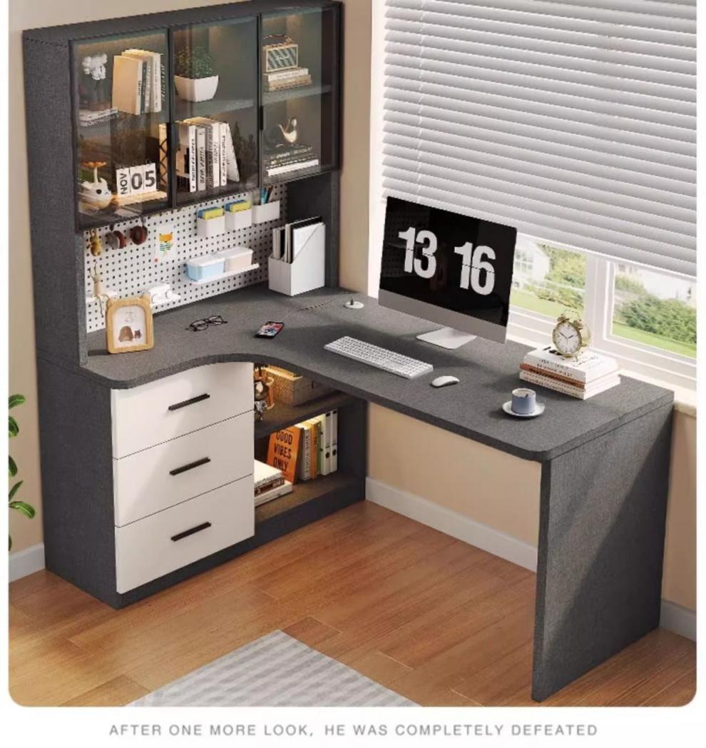 • 고급 회색 구멍 보드 코너 테이블-오른쪽에 책장