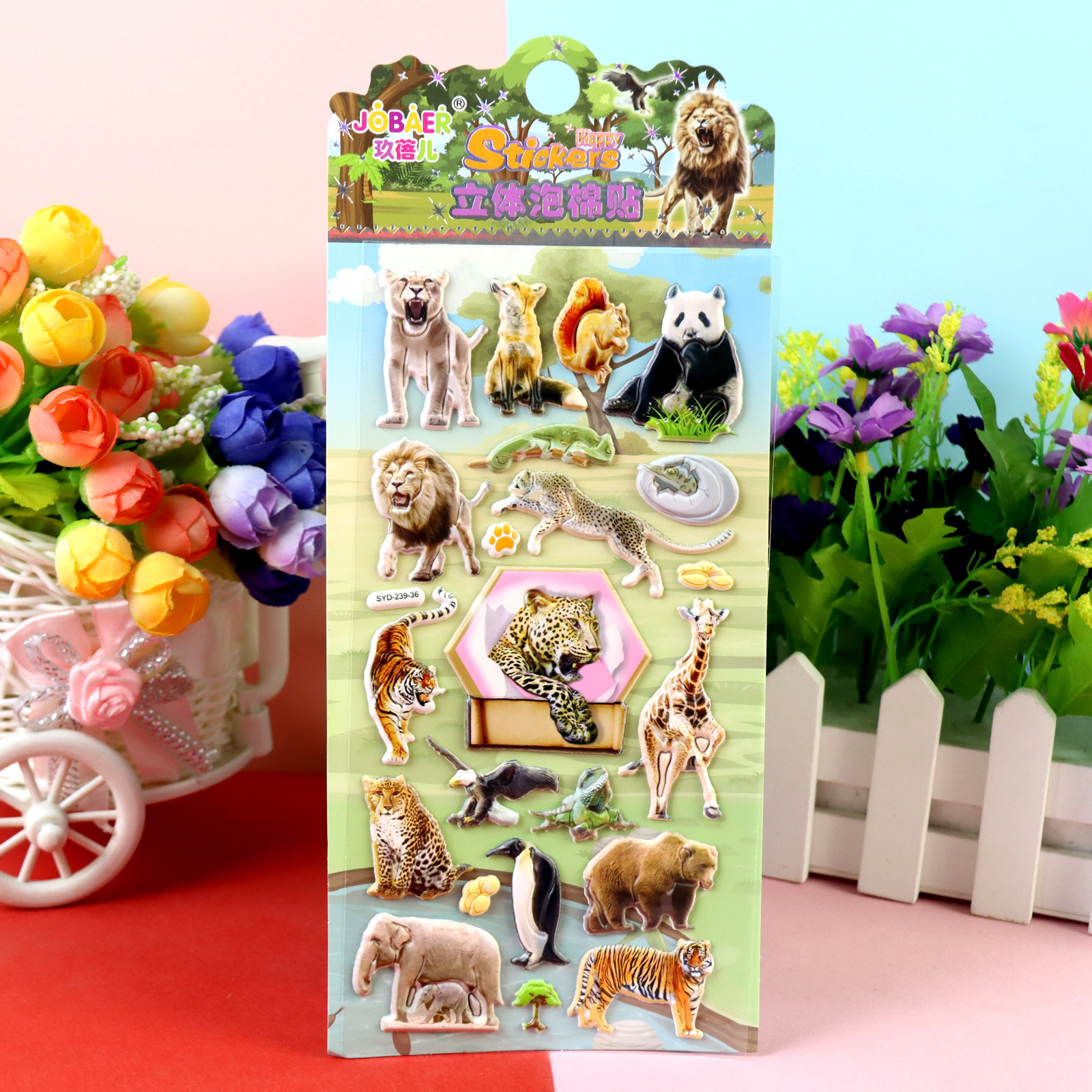 동물 세계 실제 동물 사자 호랑이 스티커 어린이 소년 소녀 입체 3D 거품 거품 스티커스토어 가기