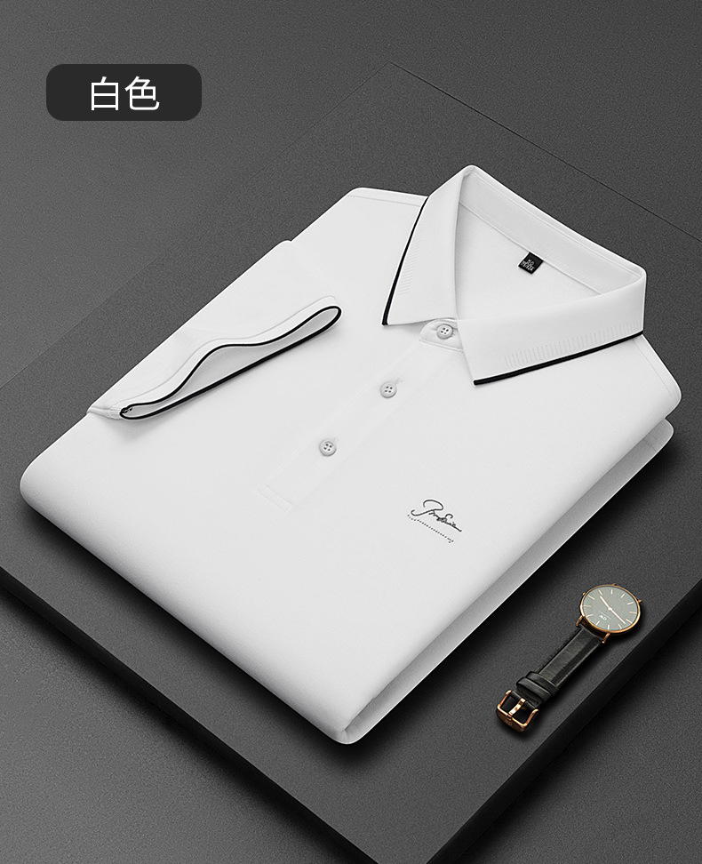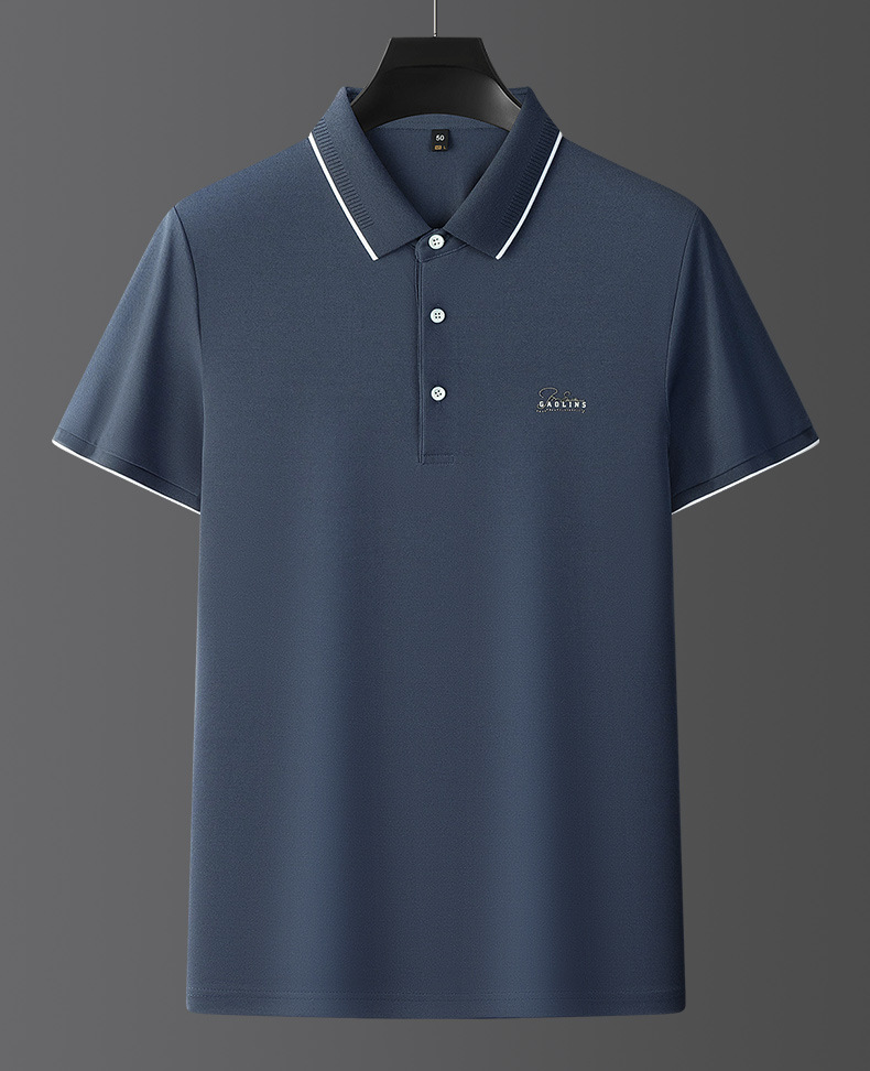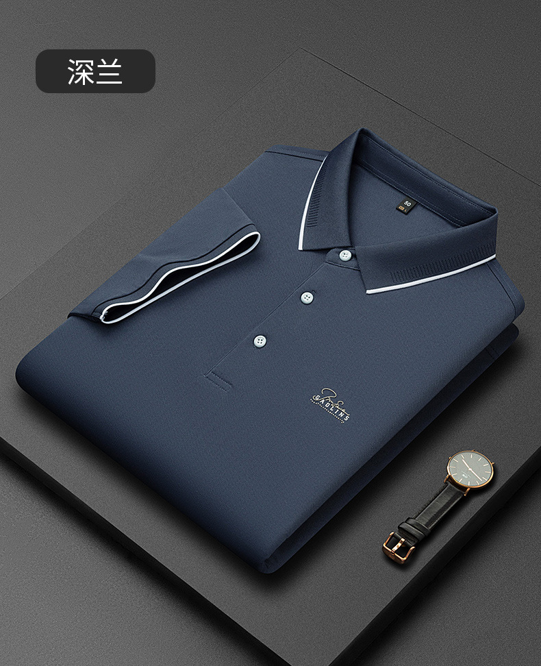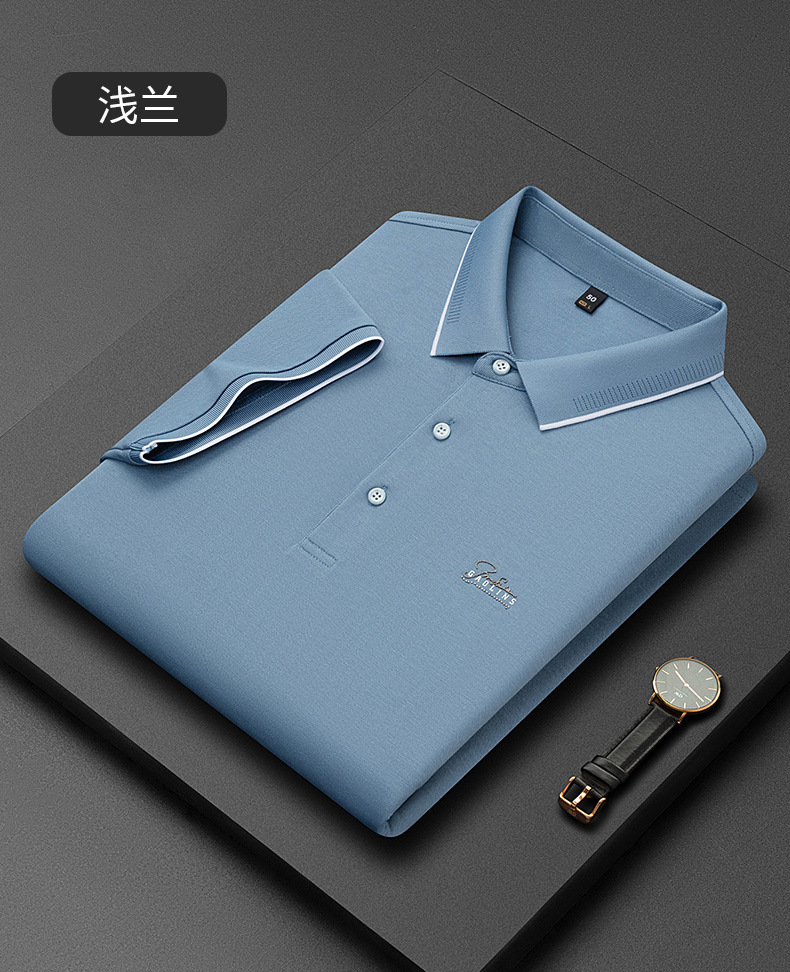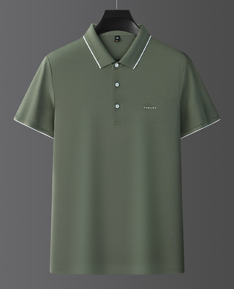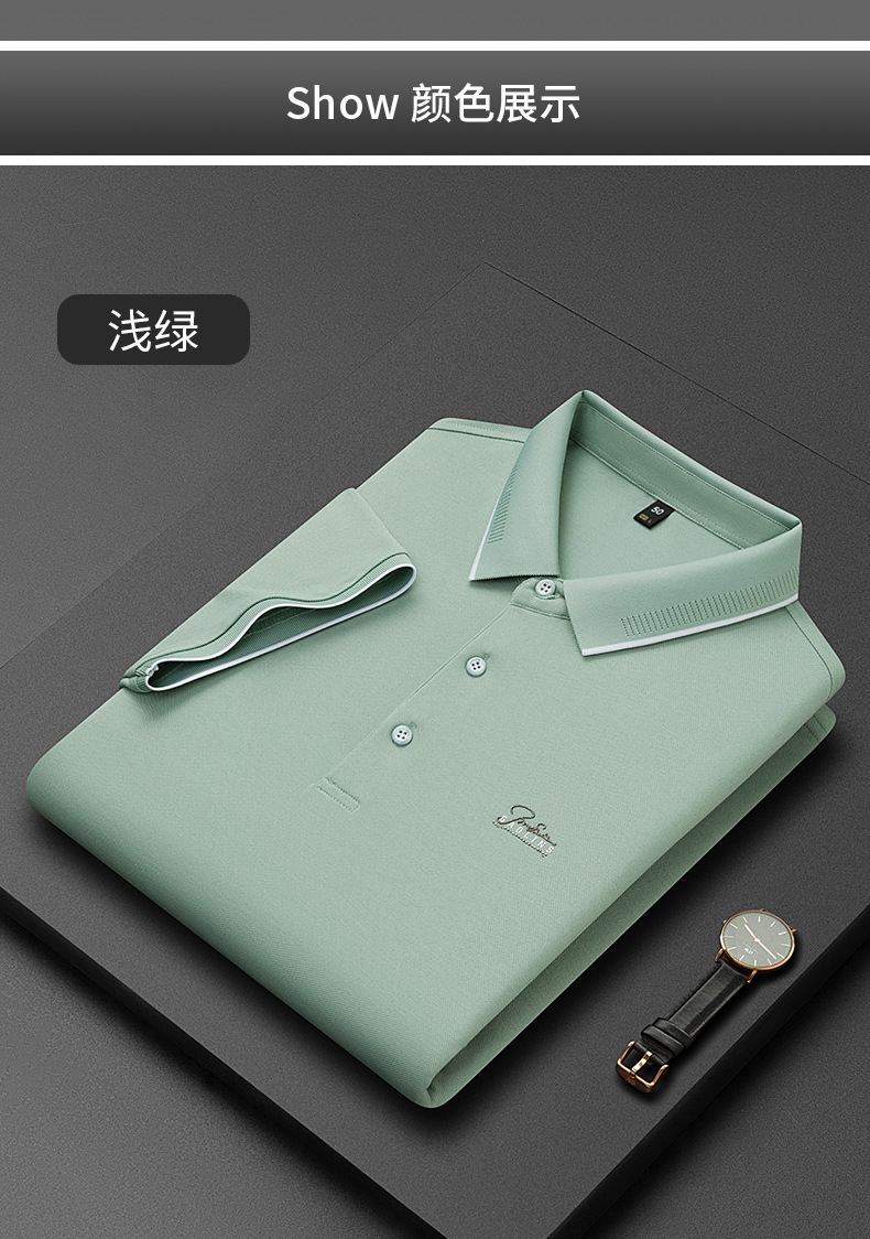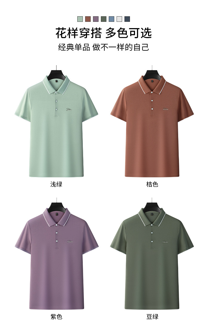 파이슨롱 아이스 실크 소프트 비즈 폴로셔츠 남성 반팔 티셔츠 여름 비즈니스 라펠 중년 폴로셔츠 남성용스토어 가기