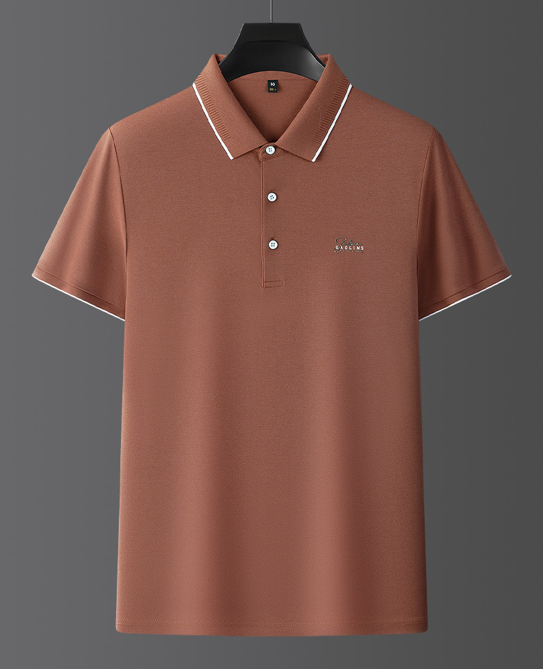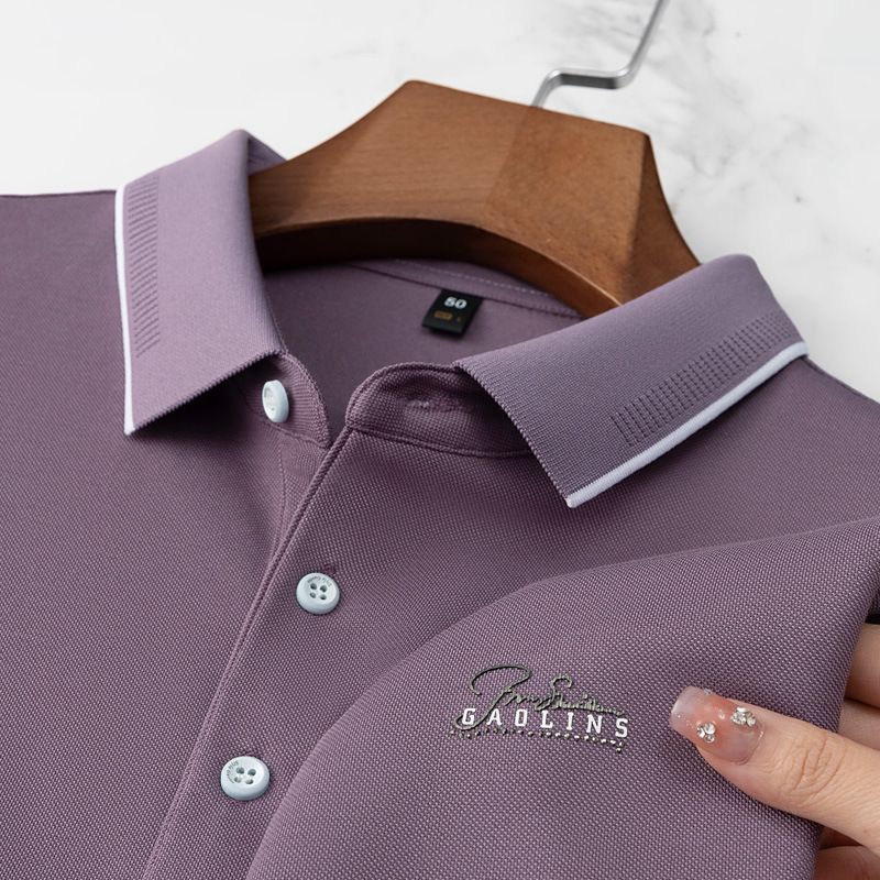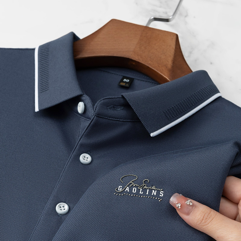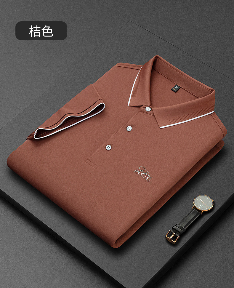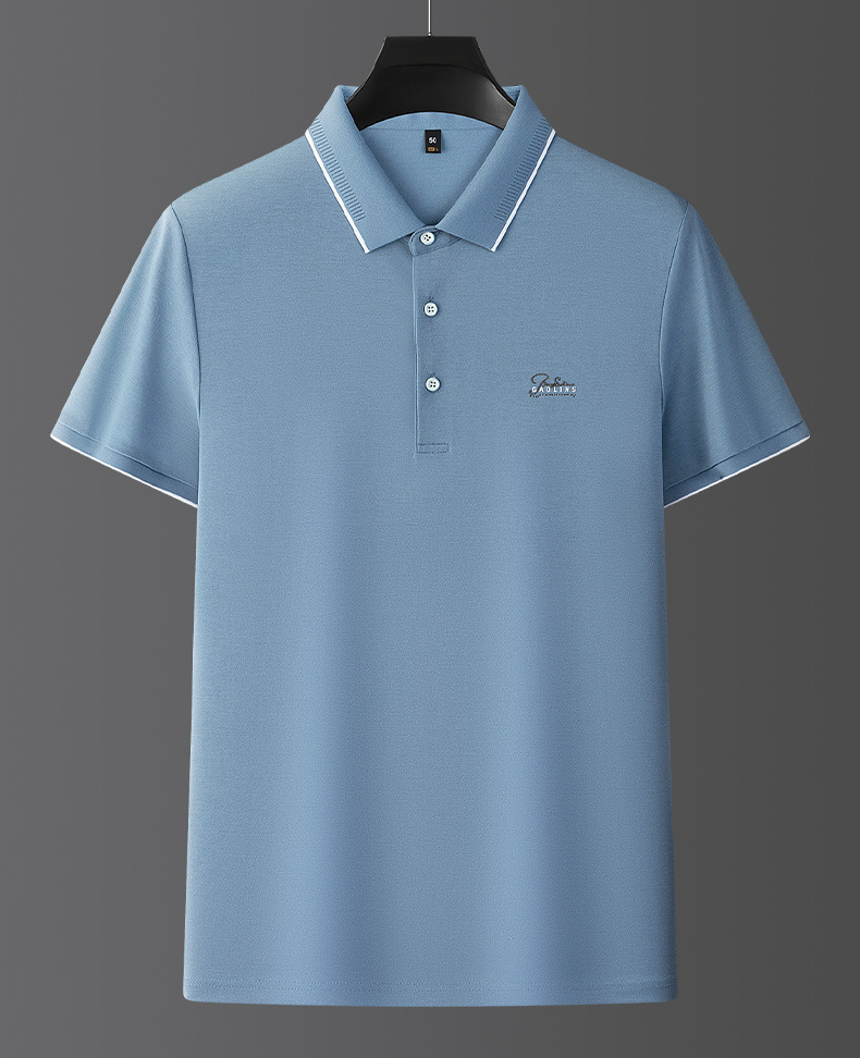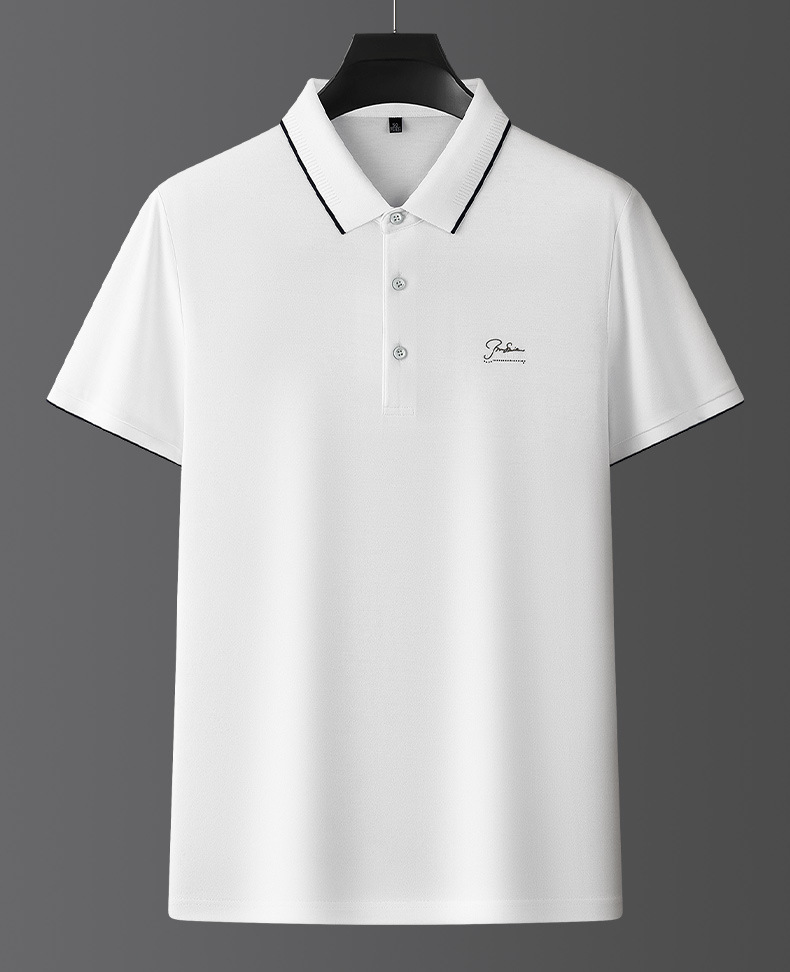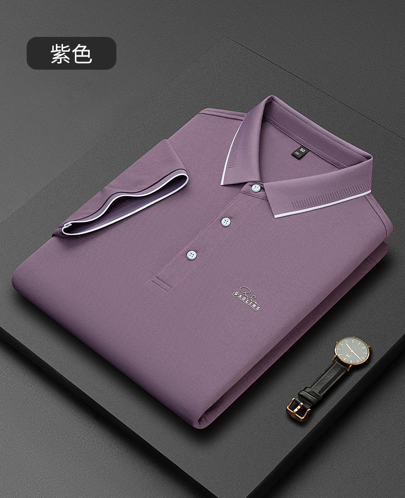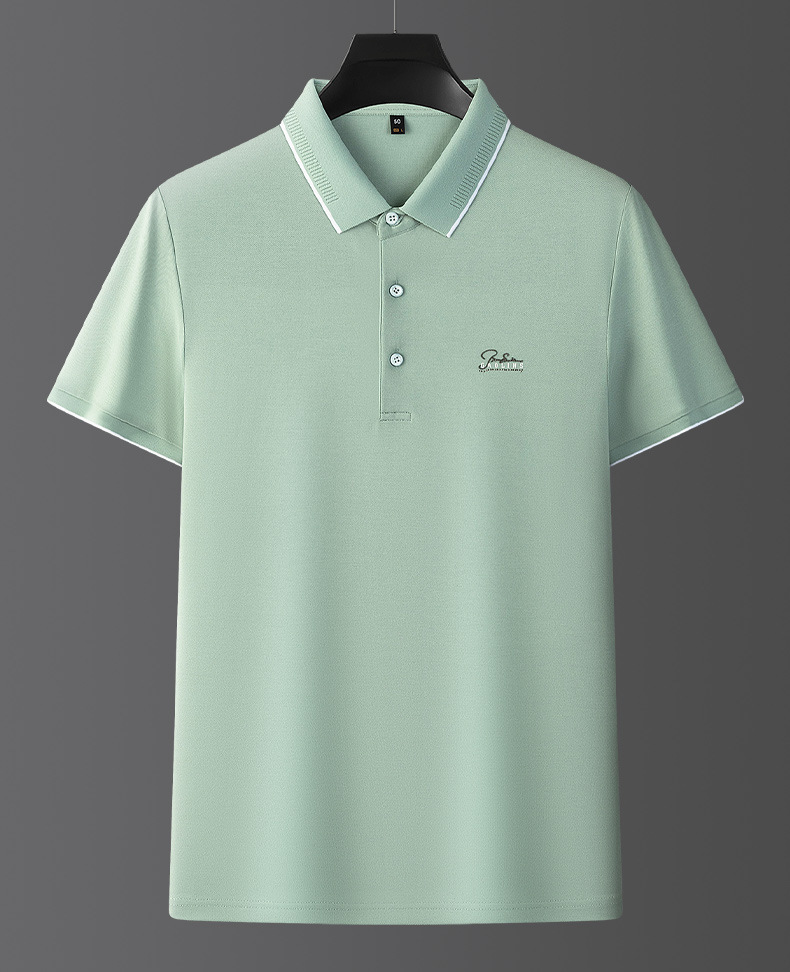 파이슨롱 아이스 실크 소프트 비즈 폴로셔츠 남성 반팔 티셔츠 여름 비즈니스 라펠 중년 폴로셔츠 남성용스토어 가기