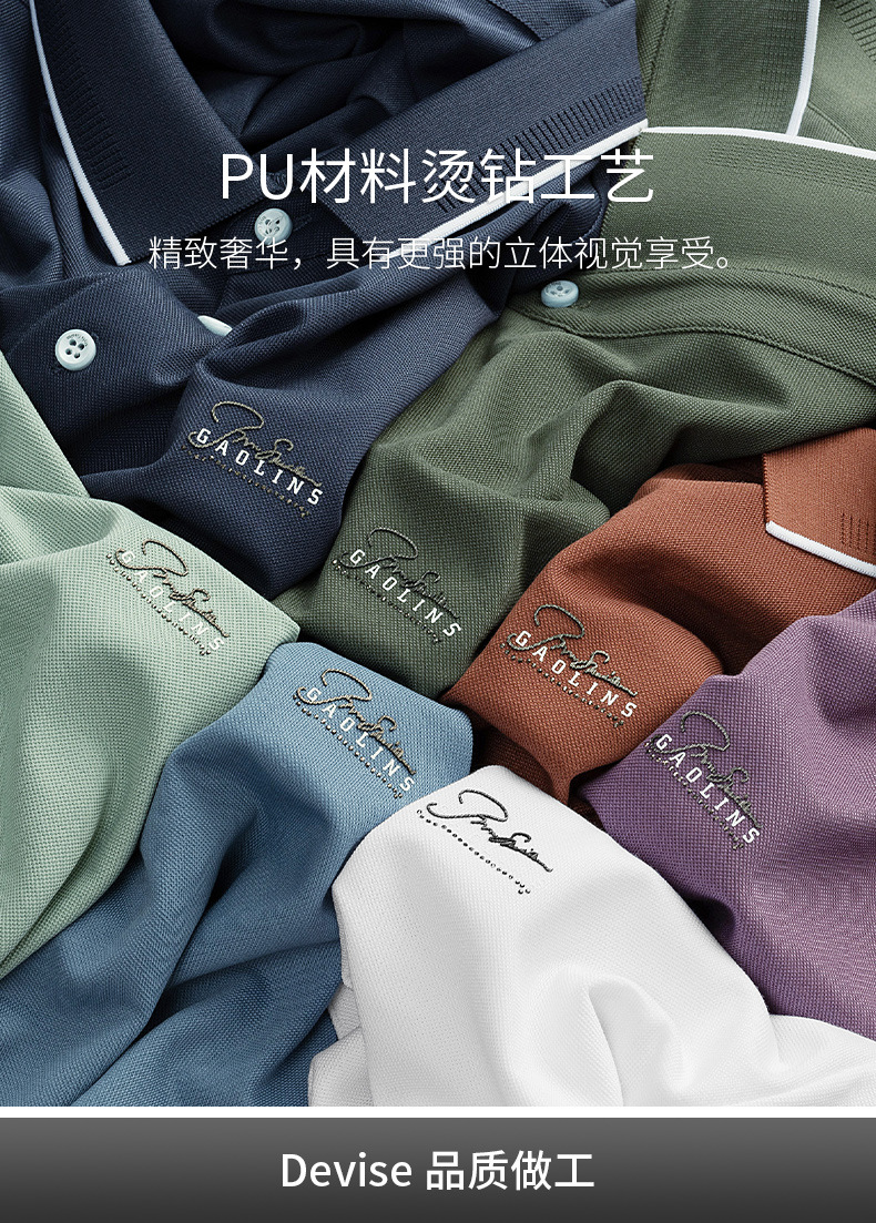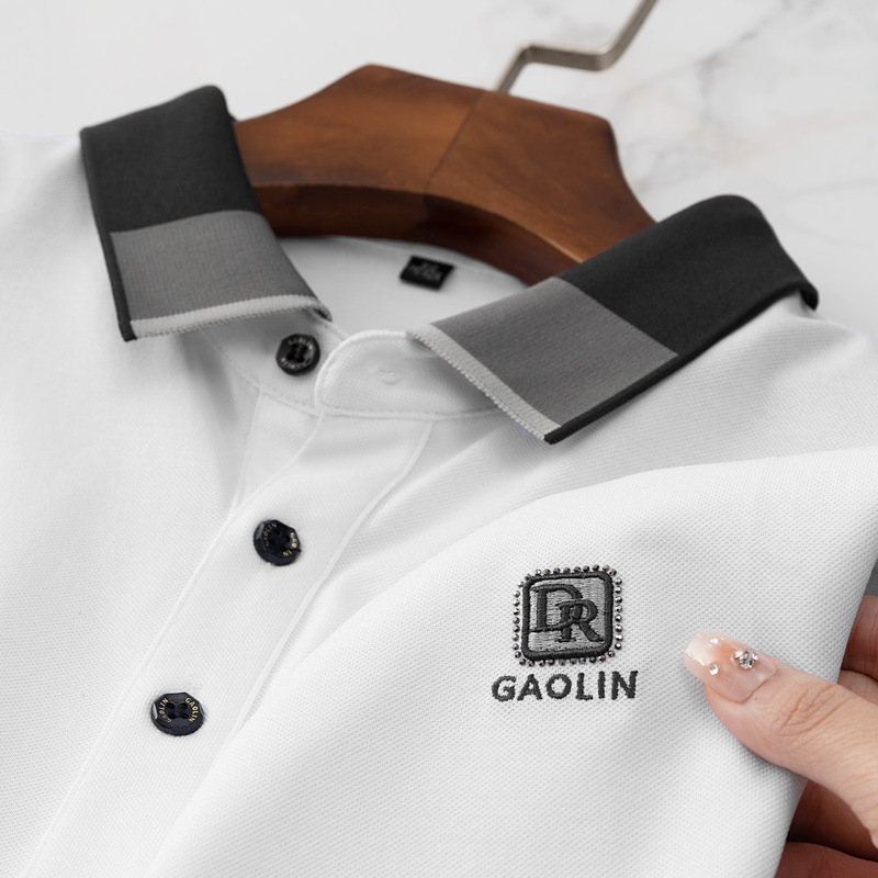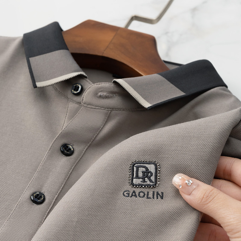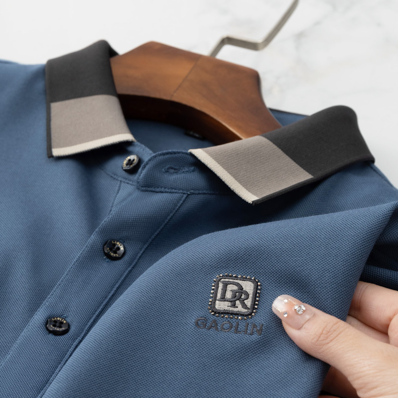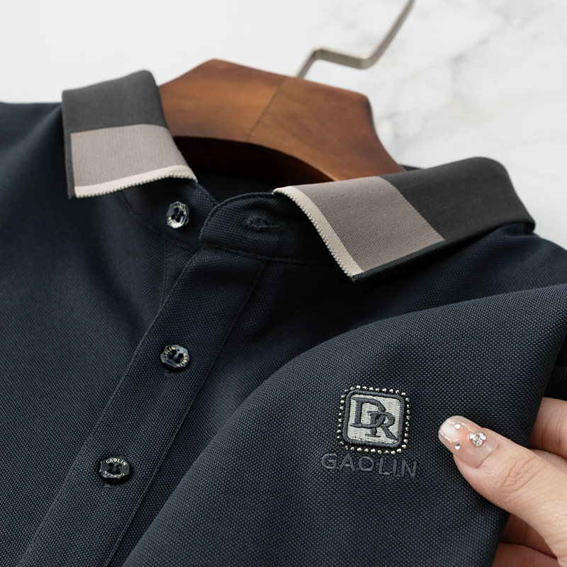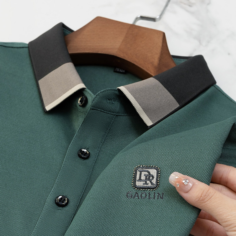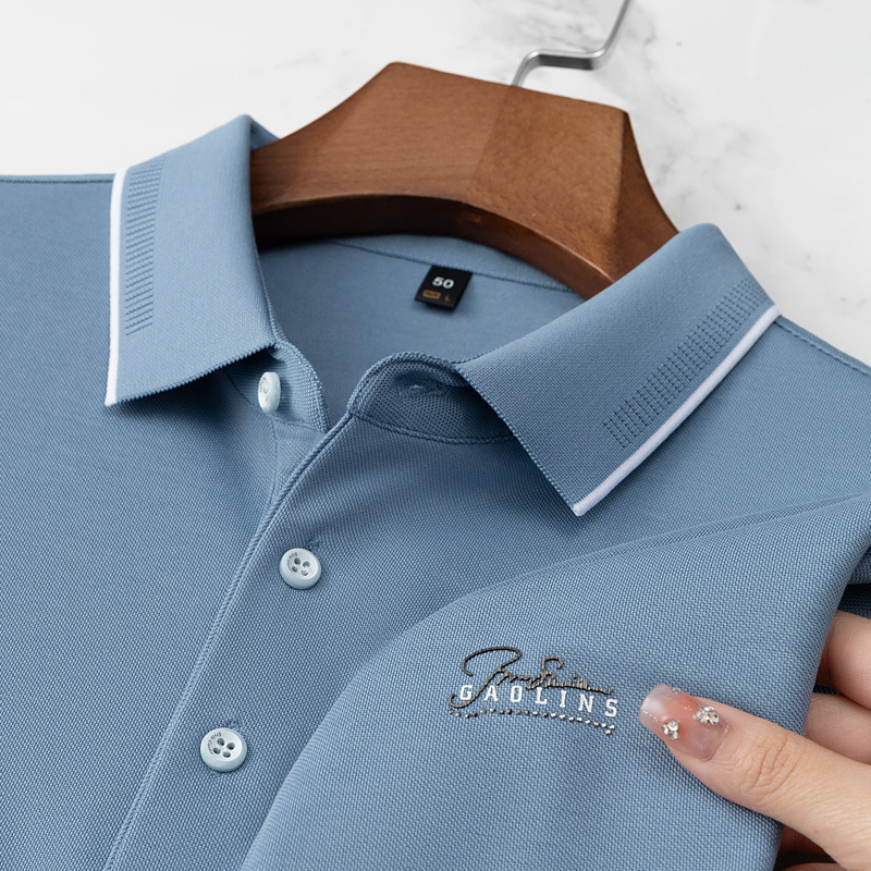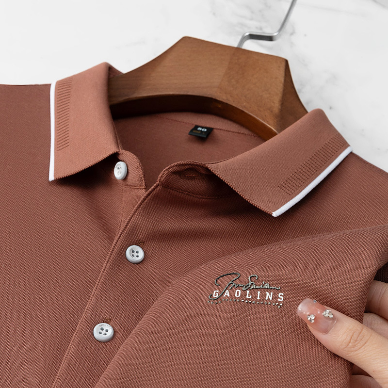 파이슨롱 아이스 실크 소프트 비즈 폴로셔츠 남성 반팔 티셔츠 여름 비즈니스 라펠 중년 폴로셔츠 남성용스토어 가기