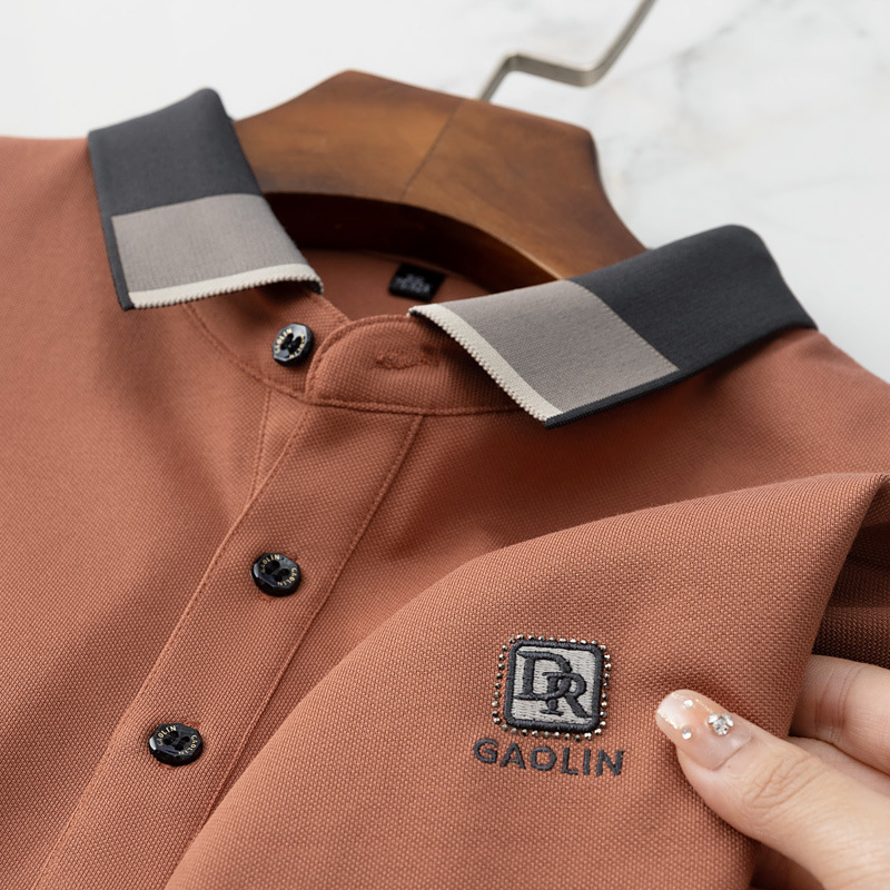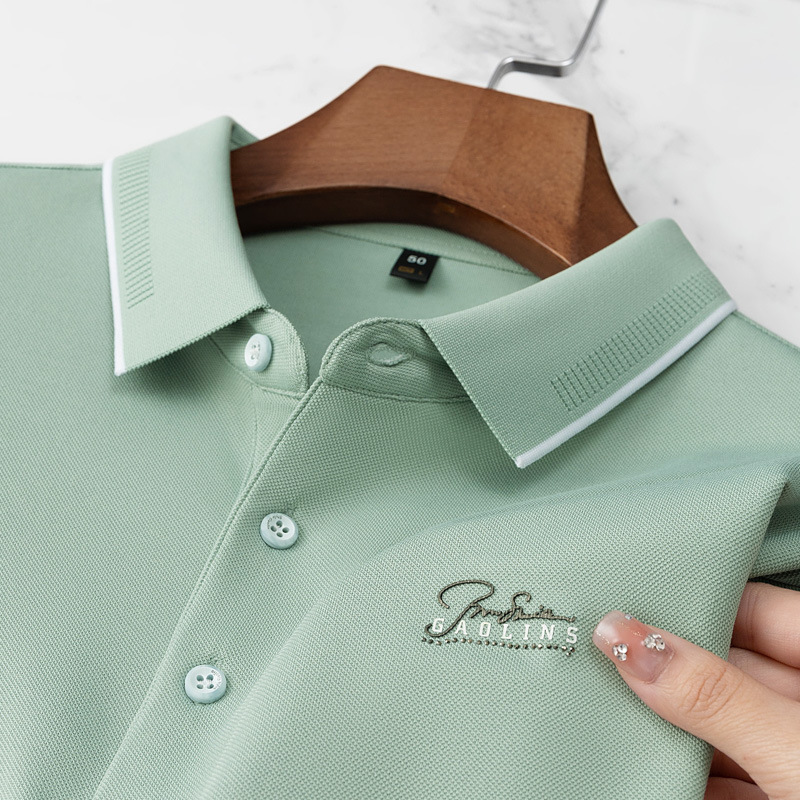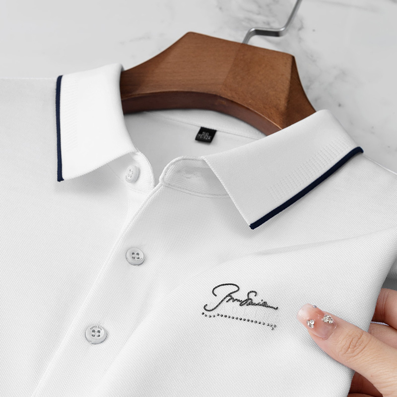 파이슨롱 아이스 실크 소프트 비즈 폴로셔츠 남성 반팔 티셔츠 여름 비즈니스 라펠 중년 폴로셔츠 남성용