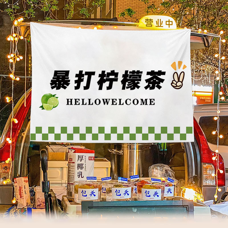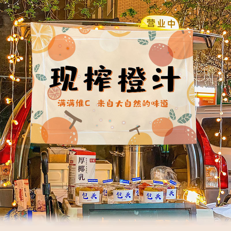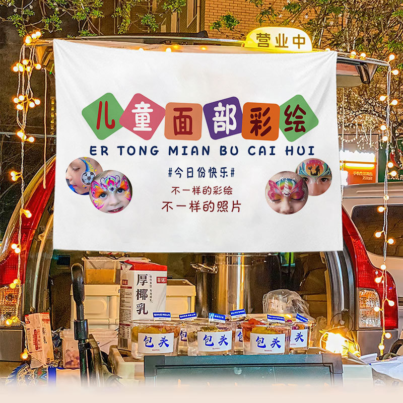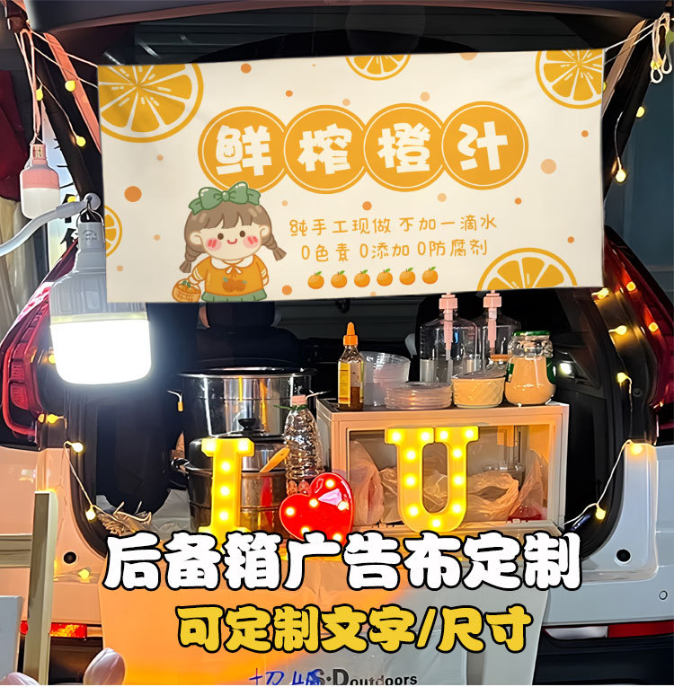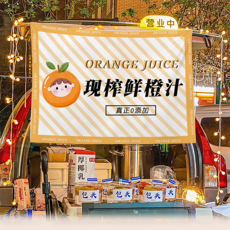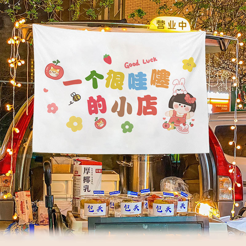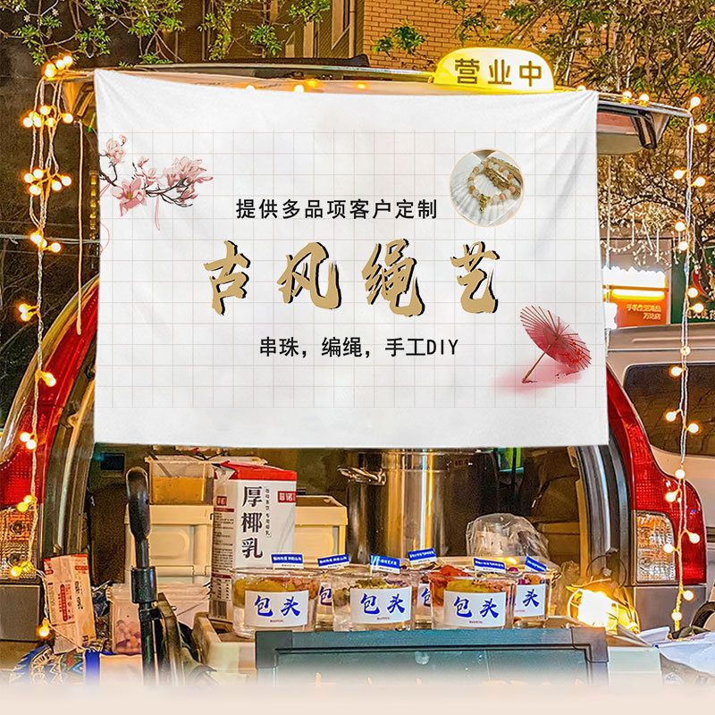 야시장 가로수 매달려 천 트렁크 장식 천 시장 부스 트렁크 스톨 광고 천 배경 교수형 천스토어 가기