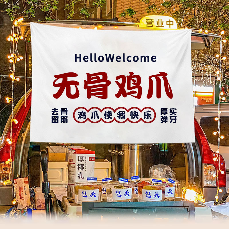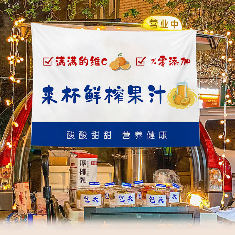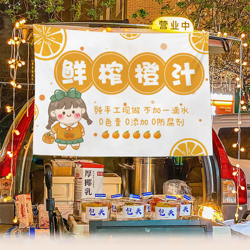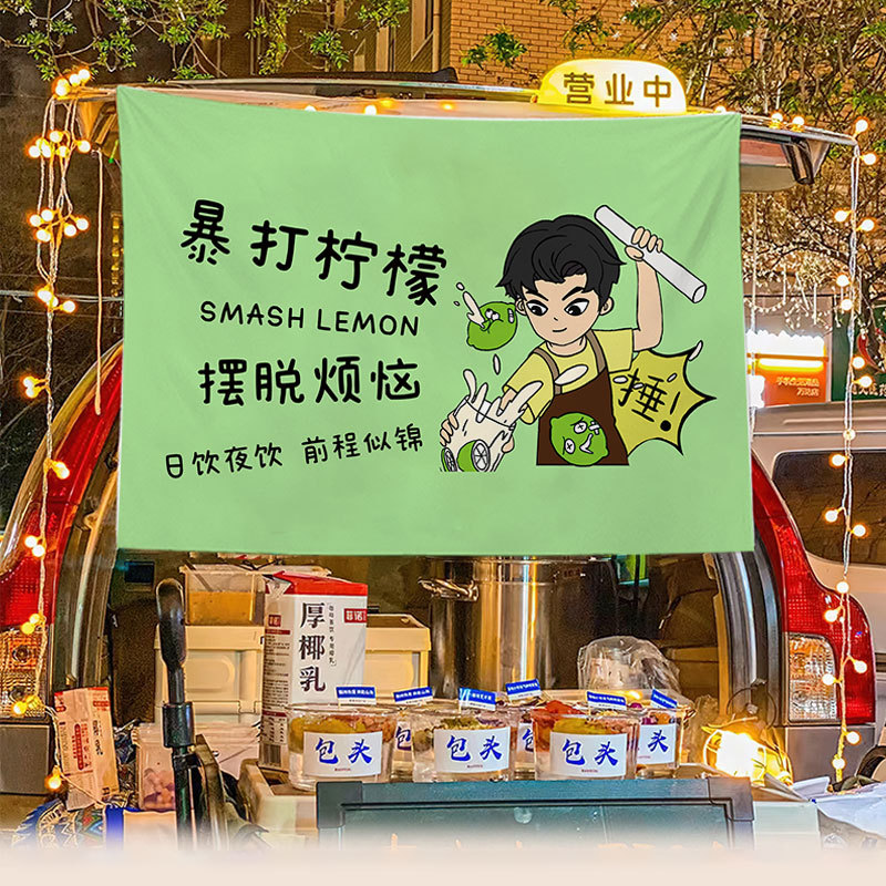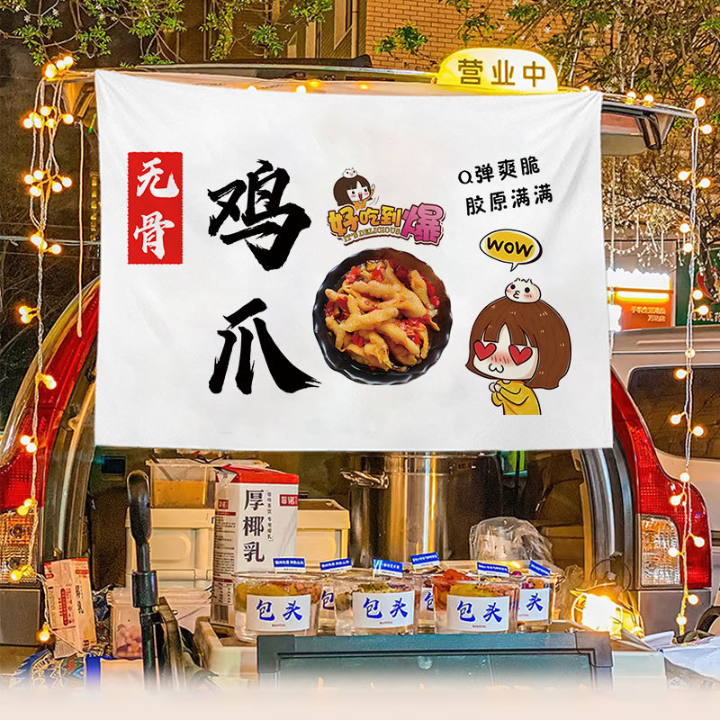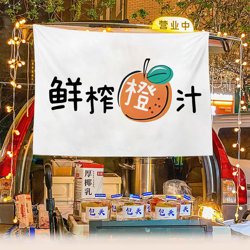 야시장 가로수 매달려 천 트렁크 장식 천 시장 부스 트렁크 스톨 광고 천 배경 교수형 천스토어 가기
