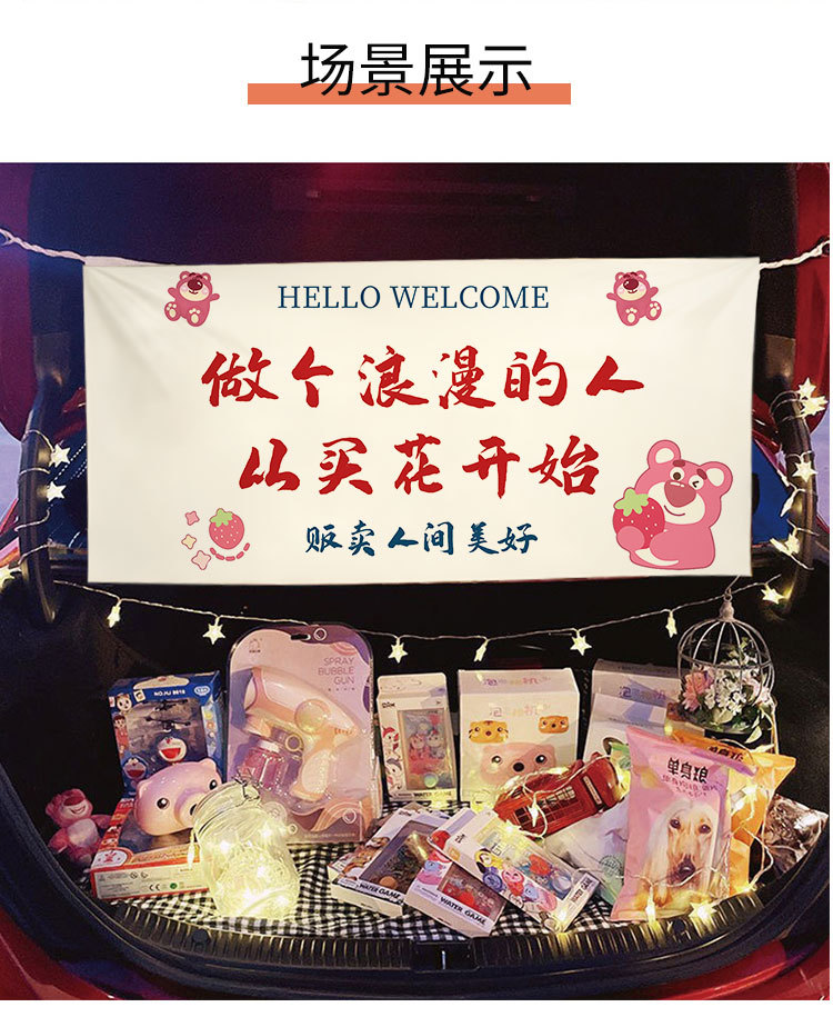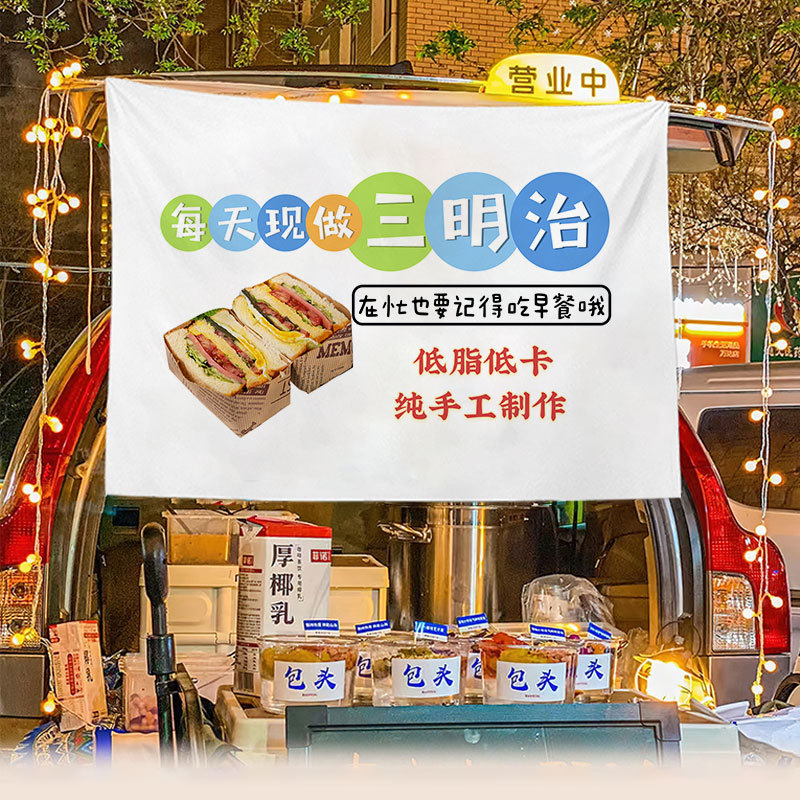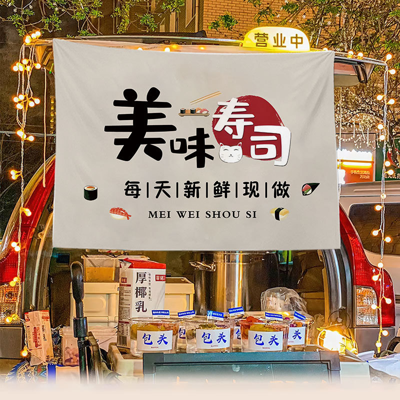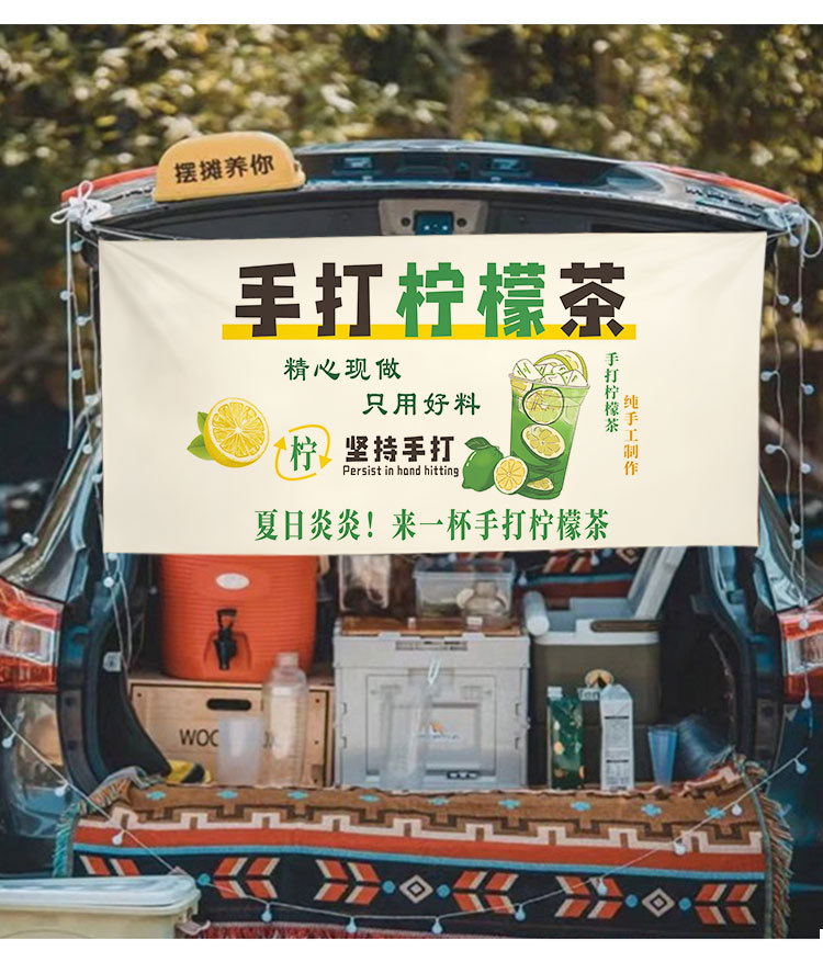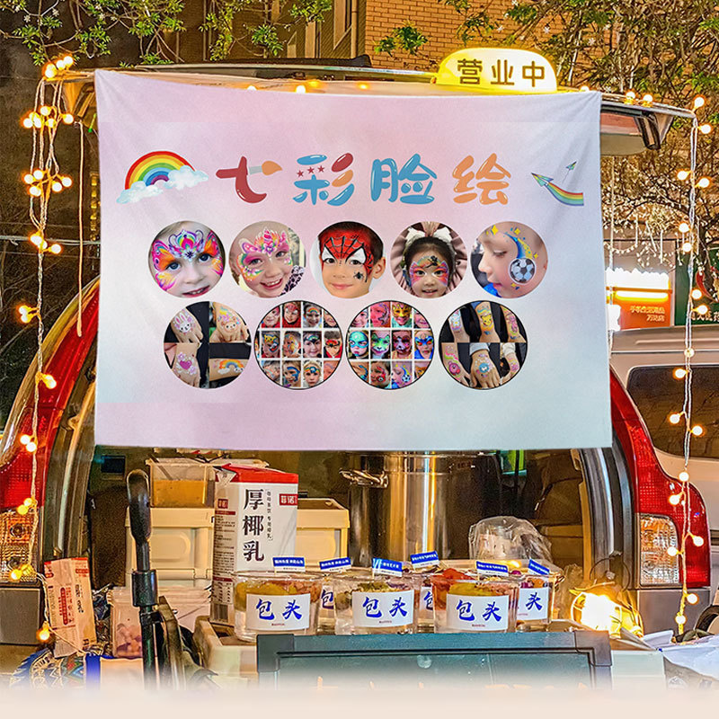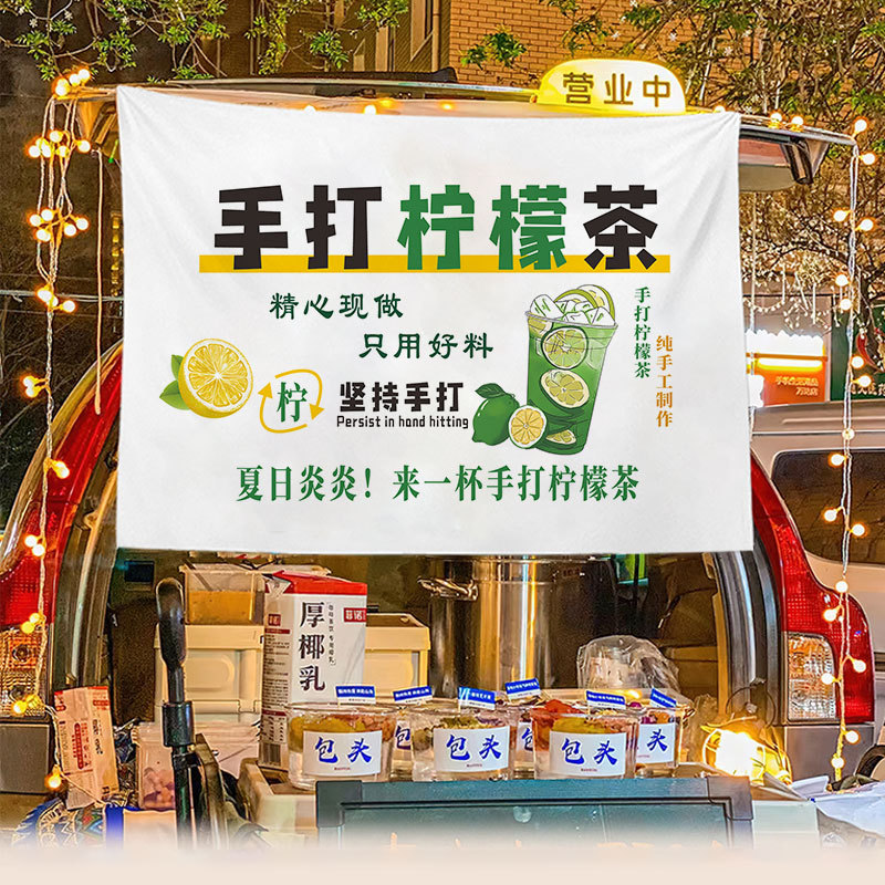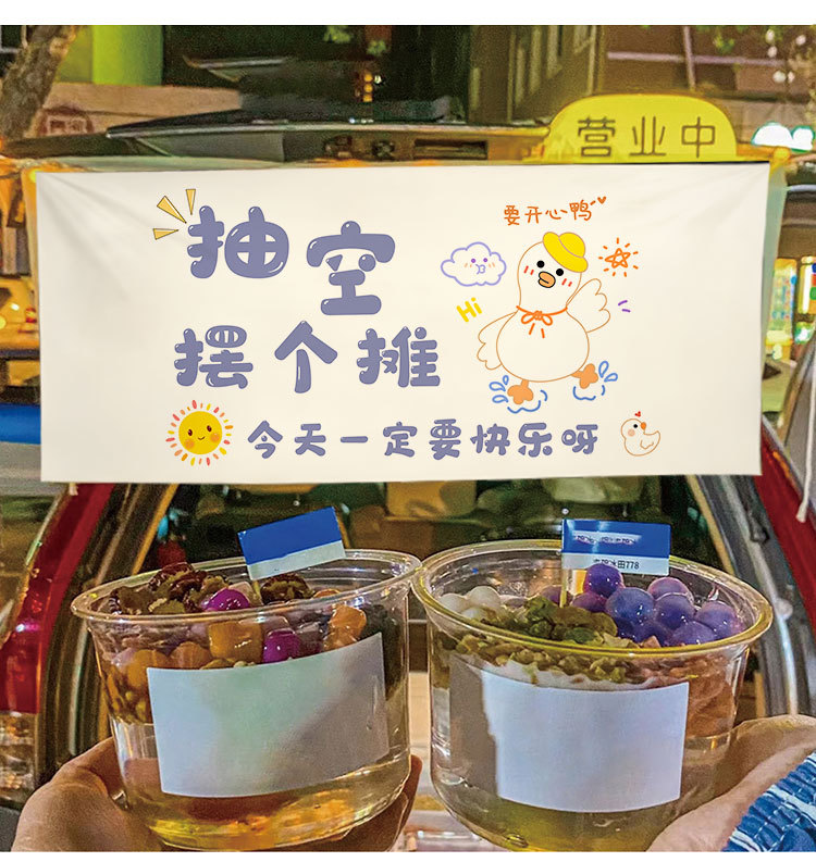야시장 가로수 매달려 천 트렁크 장식 천 시장 부스 트렁크 스톨 광고 천 배경 교수형 천스토어 가기