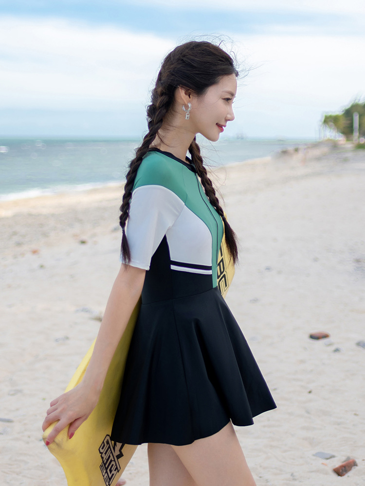 200kg 해파리 세트 원피스 스커트 짧은 소매 배꼽을 덮는 슬림 선 스크린 수영복 세트 비료 플러스 사이즈 다이빙 추가스토어 가기