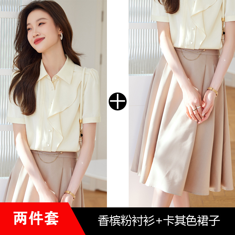 • 샴페인 파우더 셔츠 1098 카키 오버 스커트
