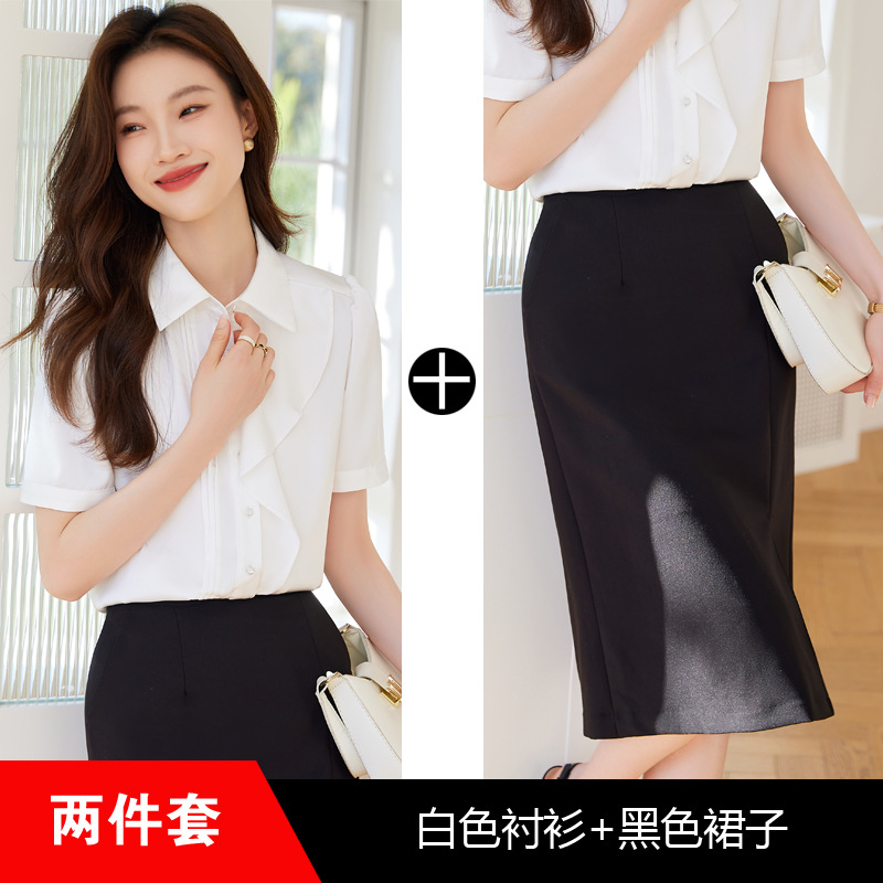 • 화이트 셔츠 1086 블랙 오버 스커트