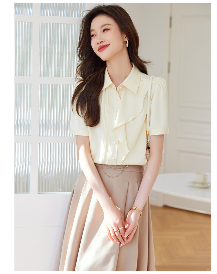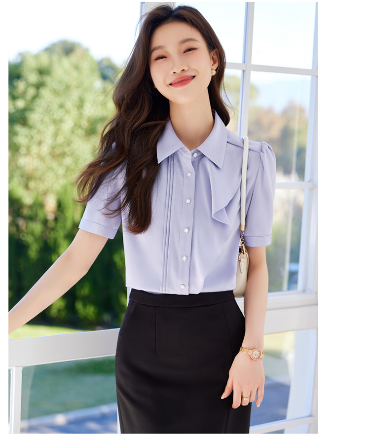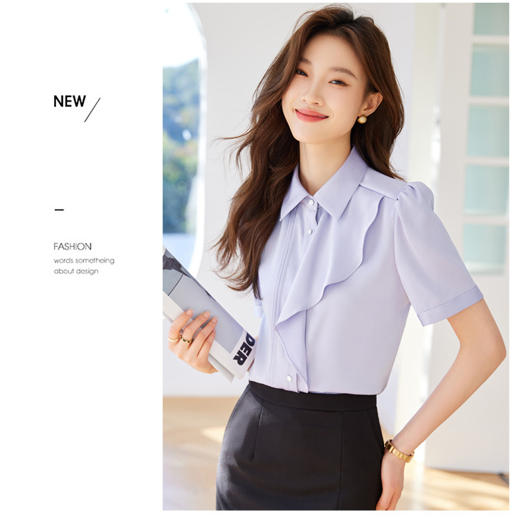 치구 니앙 셔츠 여자 24 여름 반팔 신형 디자인 센스 틈새 우아한 한국 스타일 올 매치 쉬폰 셔츠