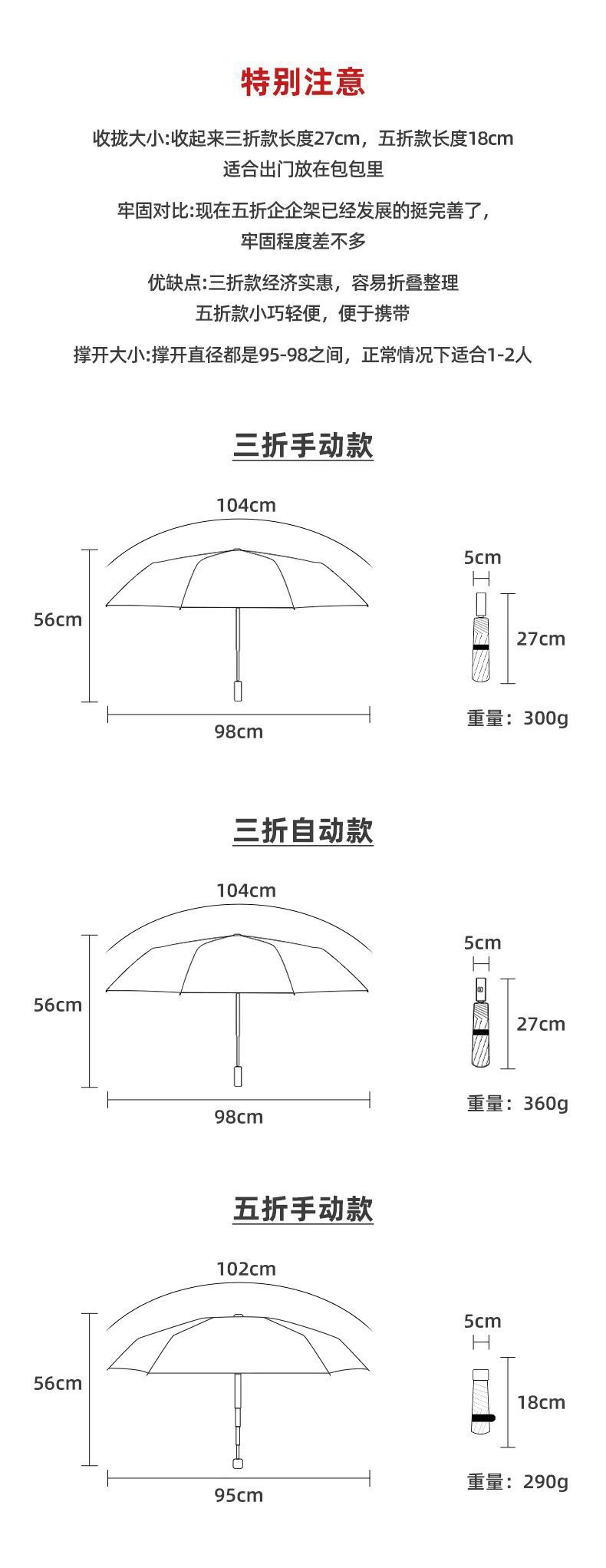 雨伞,属于易折品,在发货的的途中存在着特殊性,有时候可能因为快递运送过程中的暴力装卸或装箱问题而引起的内部破坏,所以烦请买家务必在签收时当面验货,如有损坏,请及时向快递公司提出理赔,或者联系客服人员,好拍照或者取得快递送货人员的证明,而签收却没有验货后发现的损坏,责任由签收人承担,请各位亲积极配合,以免彼此造成不愉快~~~~~~~~~~