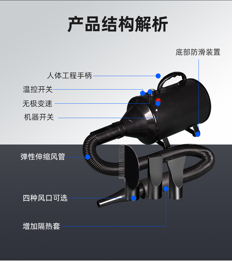 새로운 스타일의 속도 조절 가능한 송풍기, 노즐이 있는 미용 건조기, 개용 송풍기 및 당김 도구스토어 가기