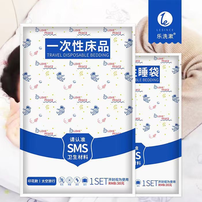 프린트 패턴 일회용 침대 시트 이불 커버 호텔 더블 4종 세트 방오 3종 세트 여행 출장용 침낭