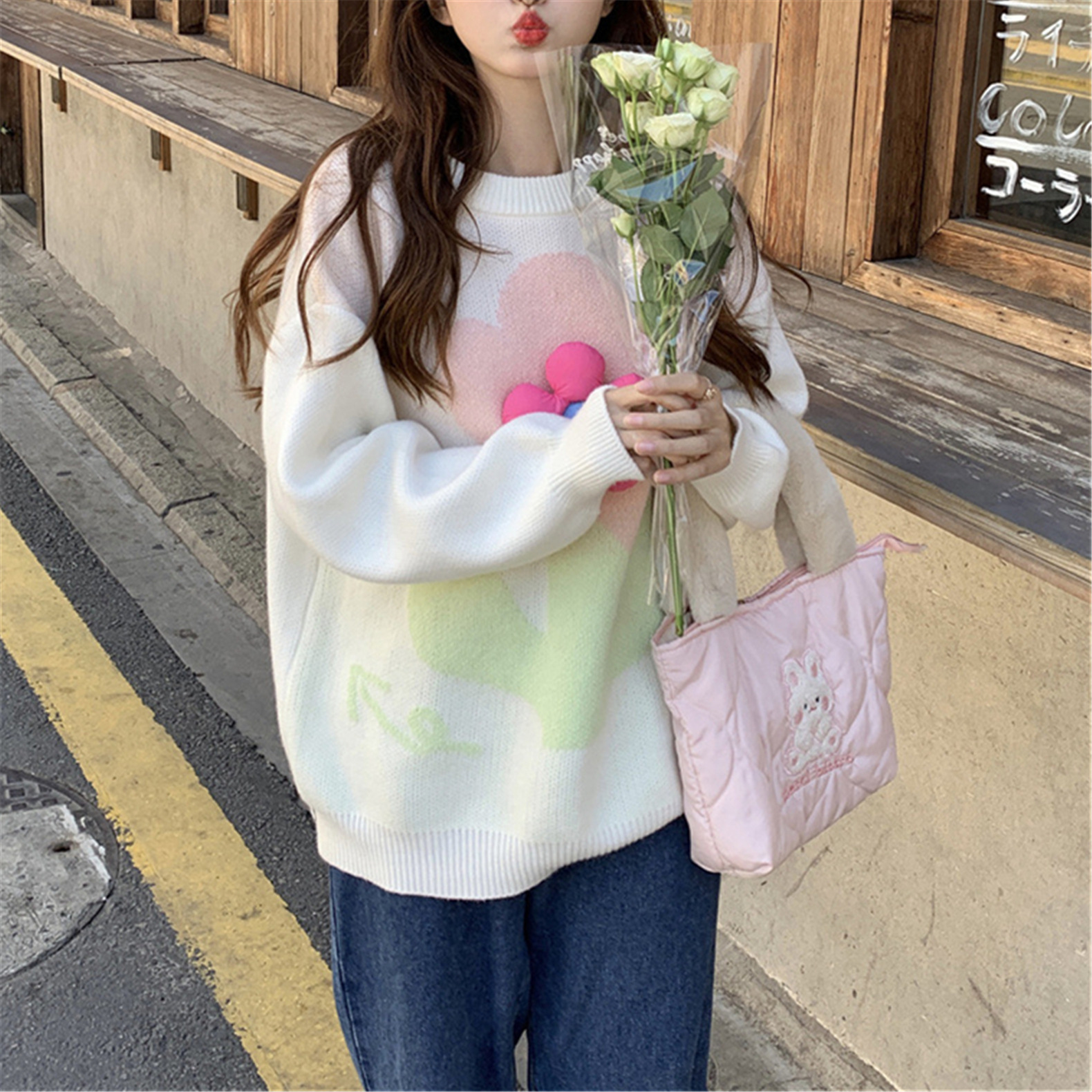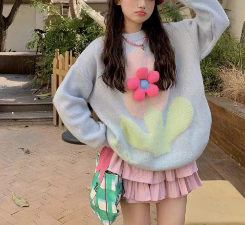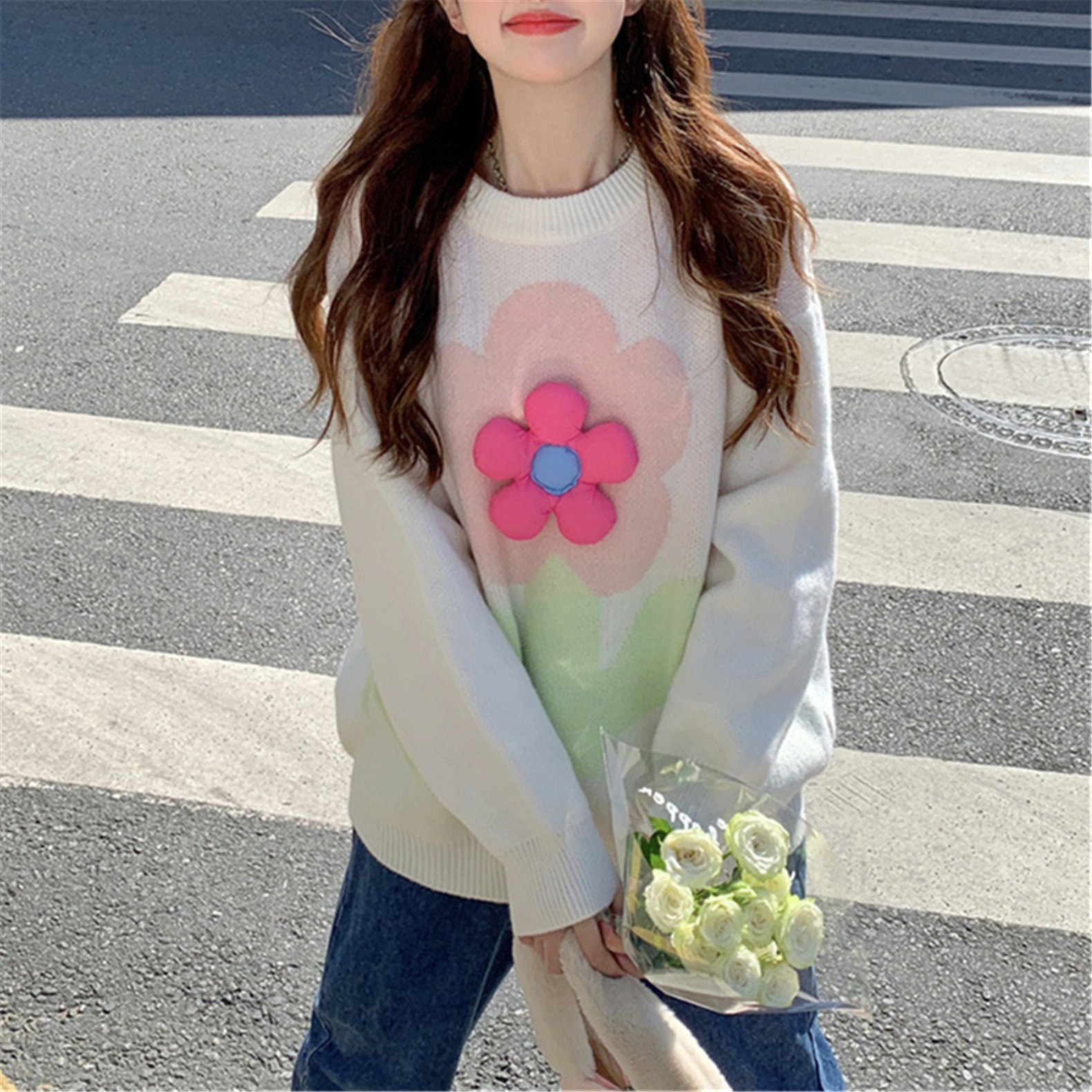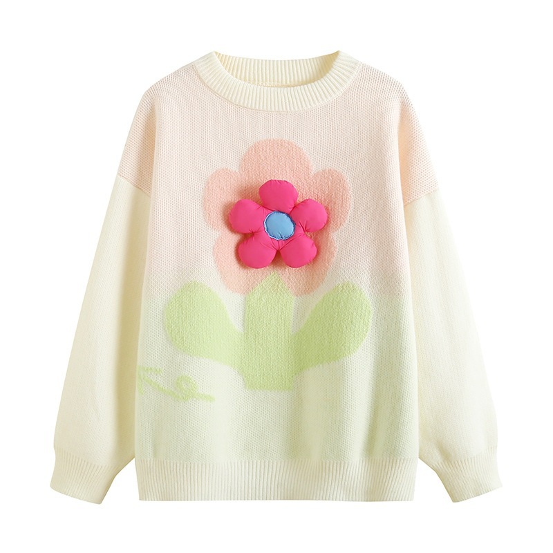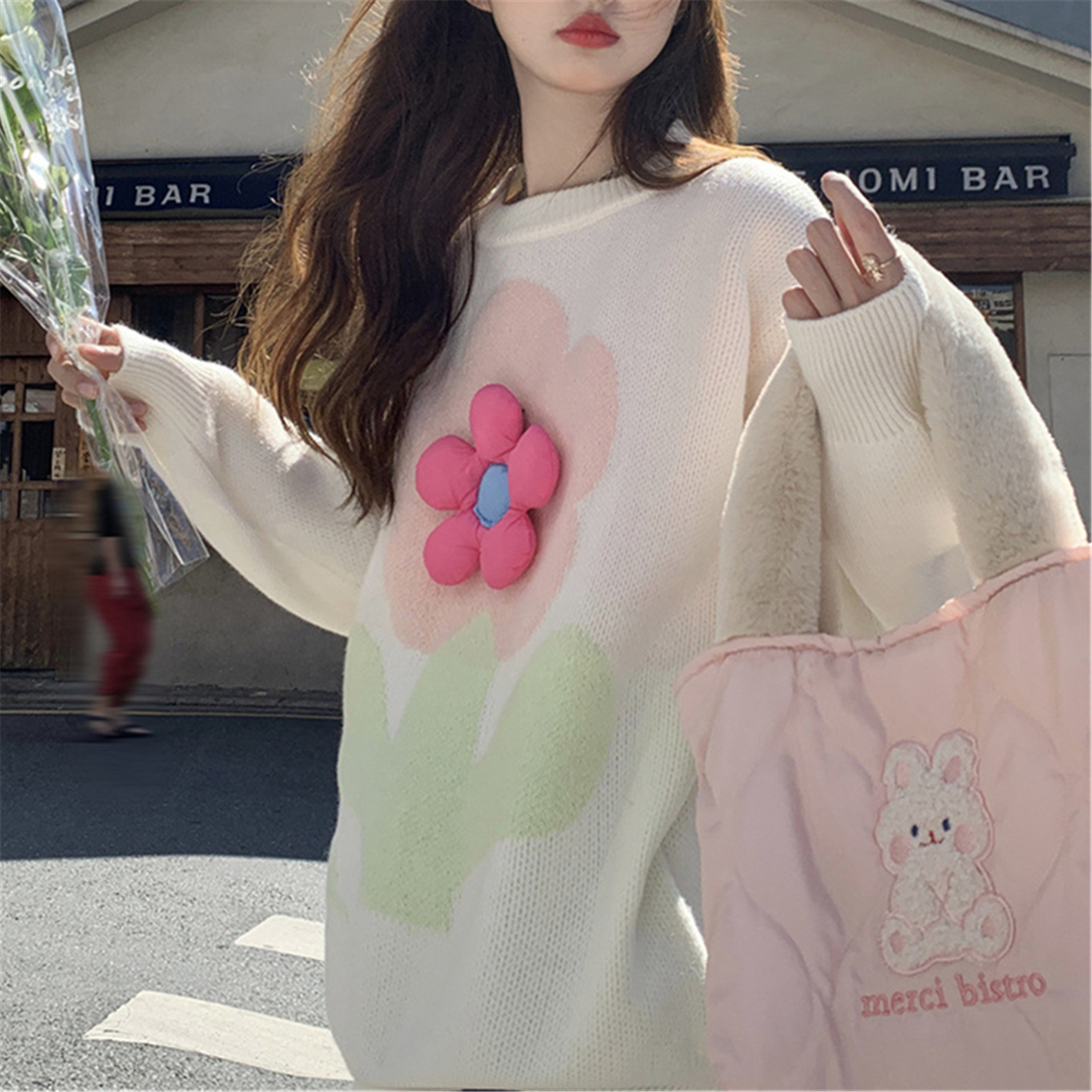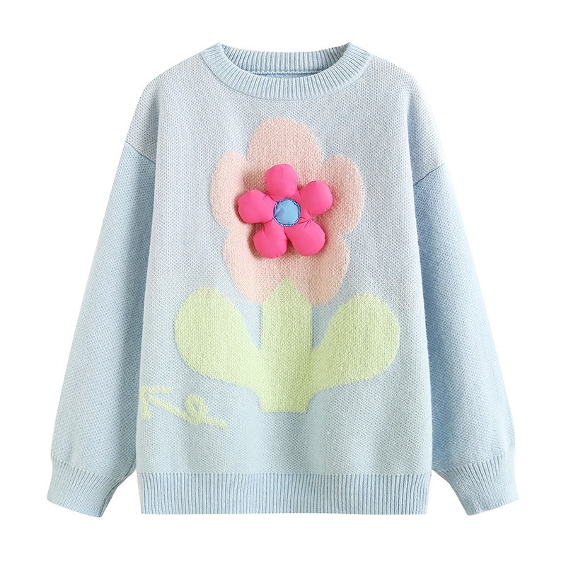 한국식 게으른 스타일 달콤한 연령 감소 부드러운 밀랍 스웨터 여성 가을, 겨울 새로운 입체 꽃 디자인 스웨터 풀오버