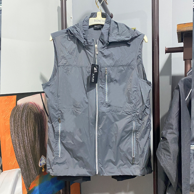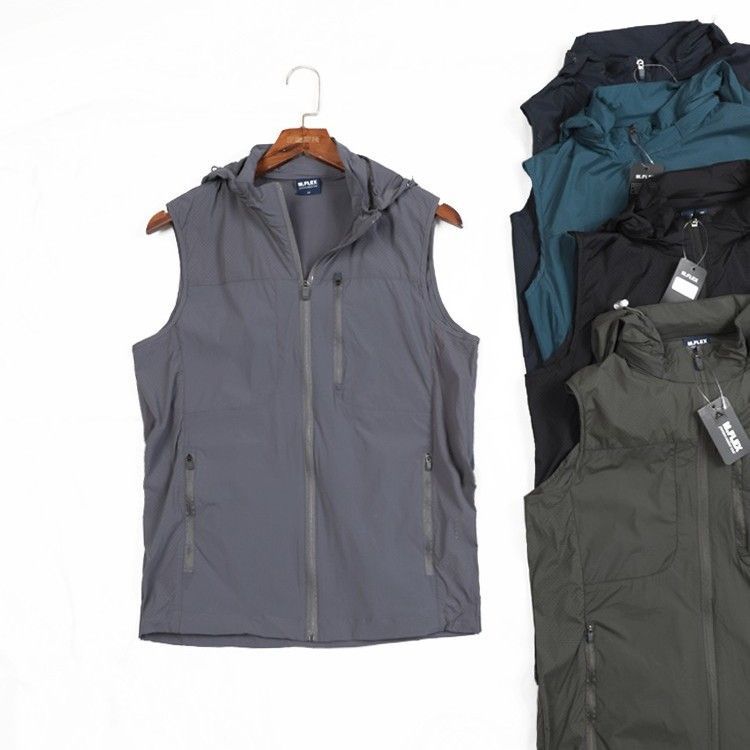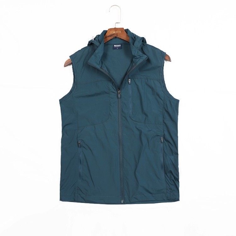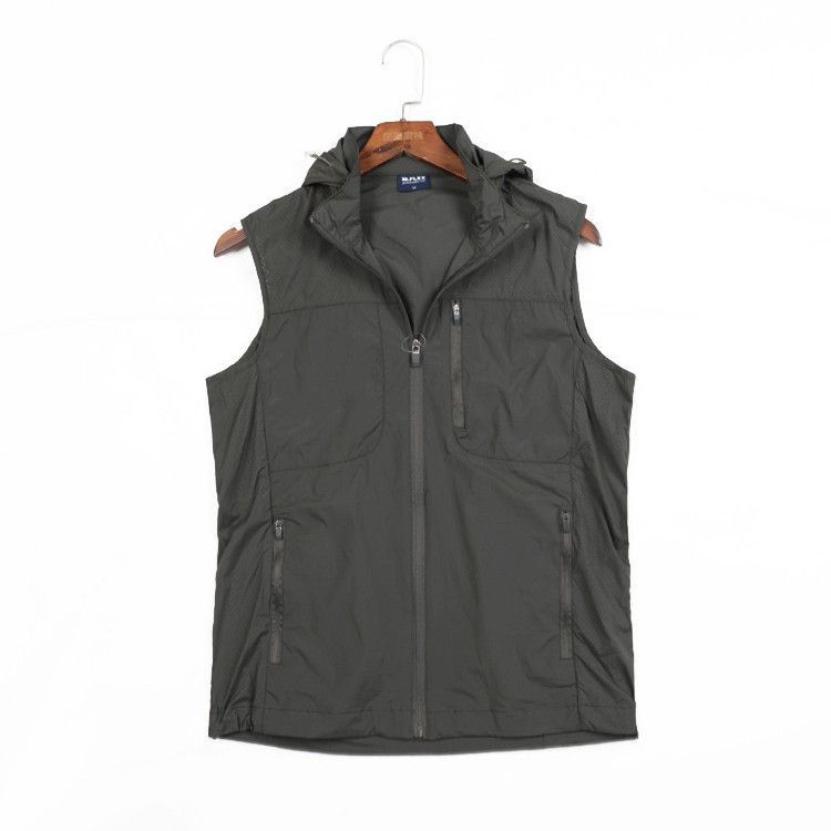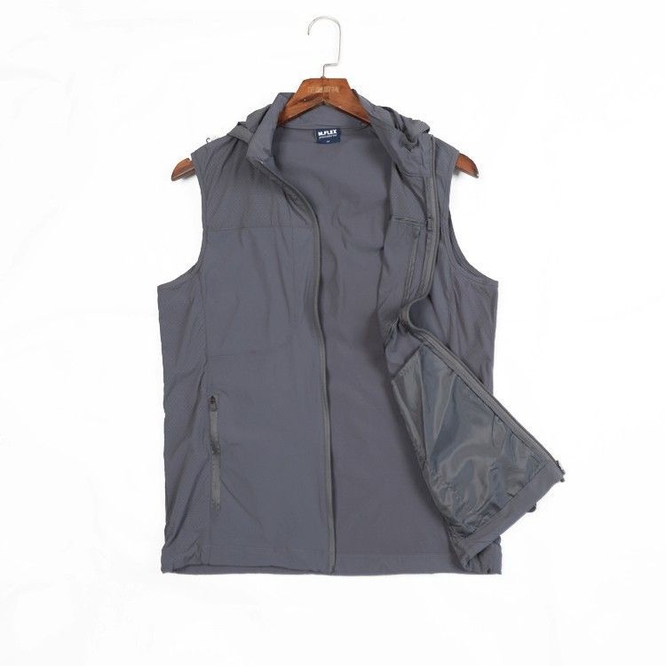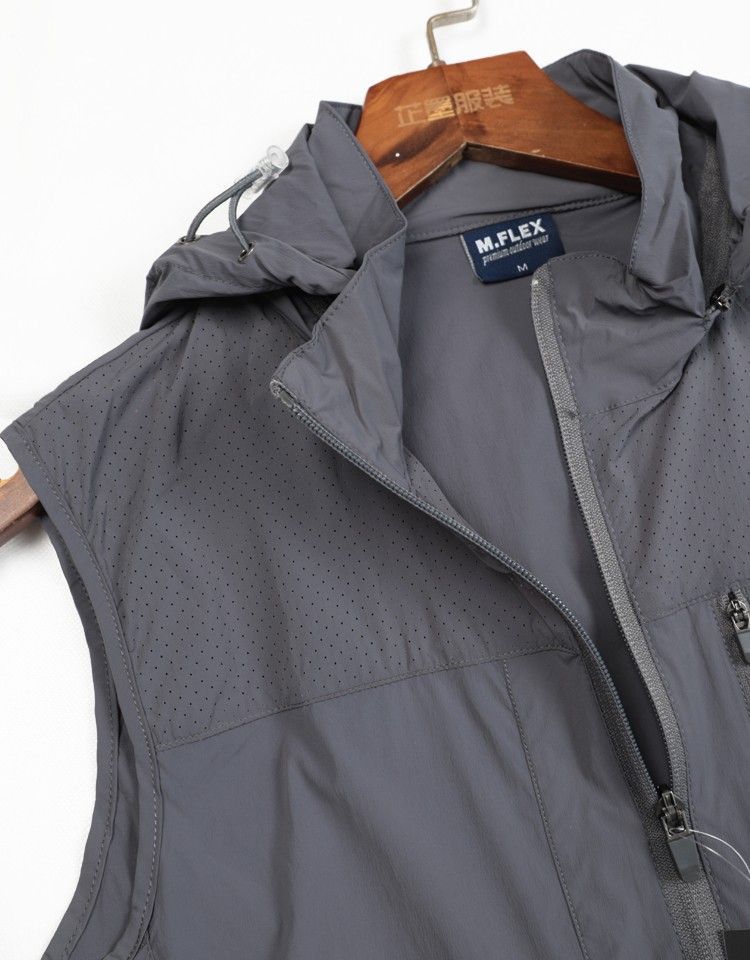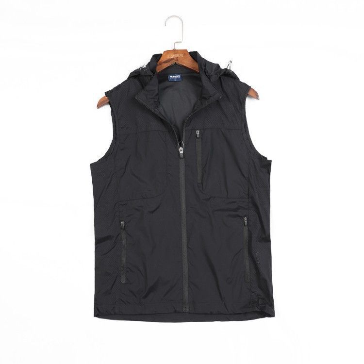 스킨 의류 조끼 남자 여름 새로운 경량 통기성 낚시 세트 후드 멀티 포켓 조끼 민소매 조끼