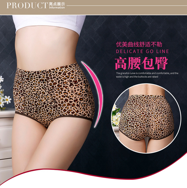 브랜드 여성 레오파드 무늬 속옷 여성의 섹시한 2023 아이스 실크 새 반바지 머리 얇은 높은 허리 편안한 항균 순수한 면화