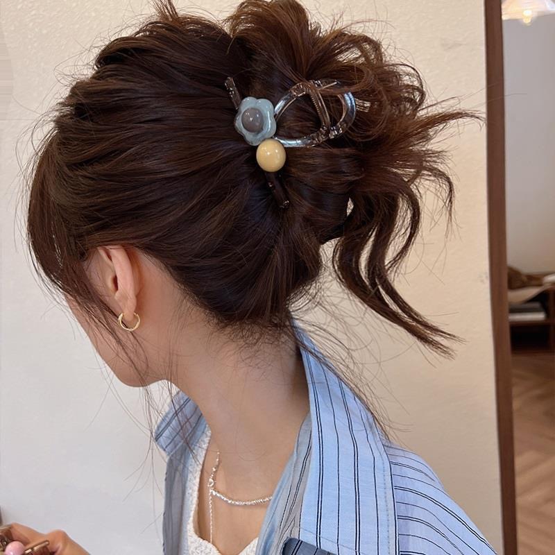 사랑 달콤한 꽃 머리핀 여성의 머리 중간 투명 회색 잡아 클립 기질 고급 상어 클립 헤드웨어스토어 가기