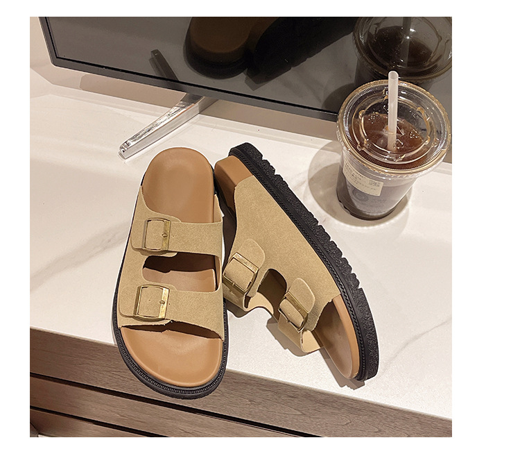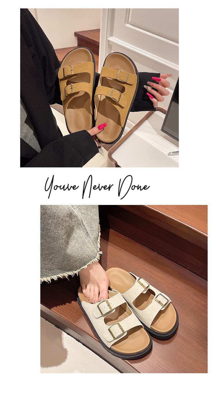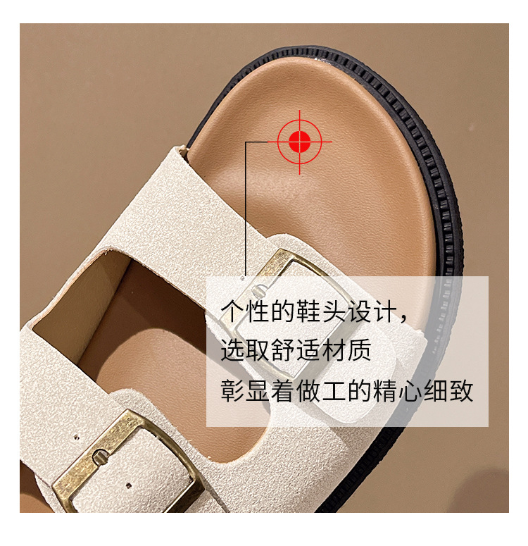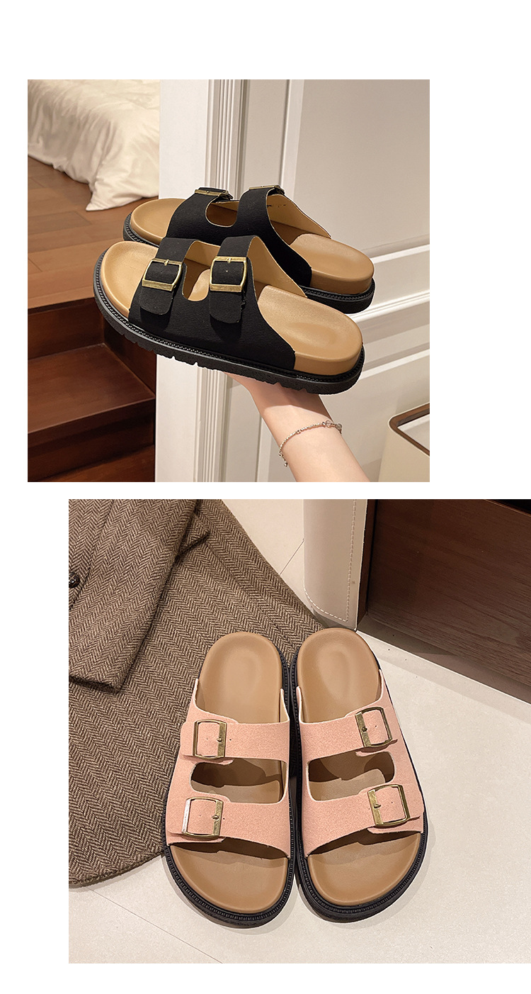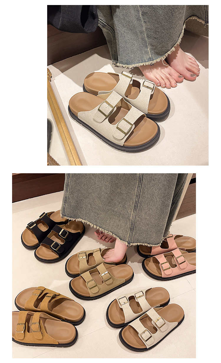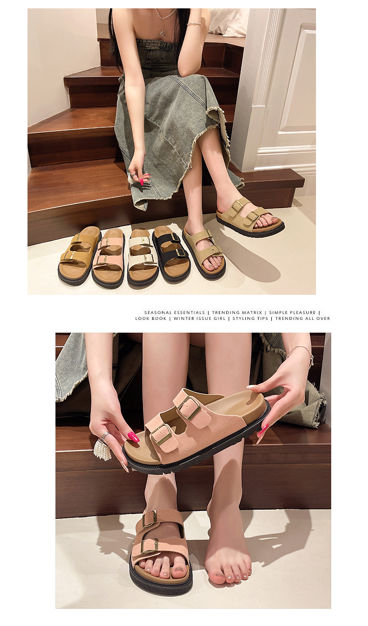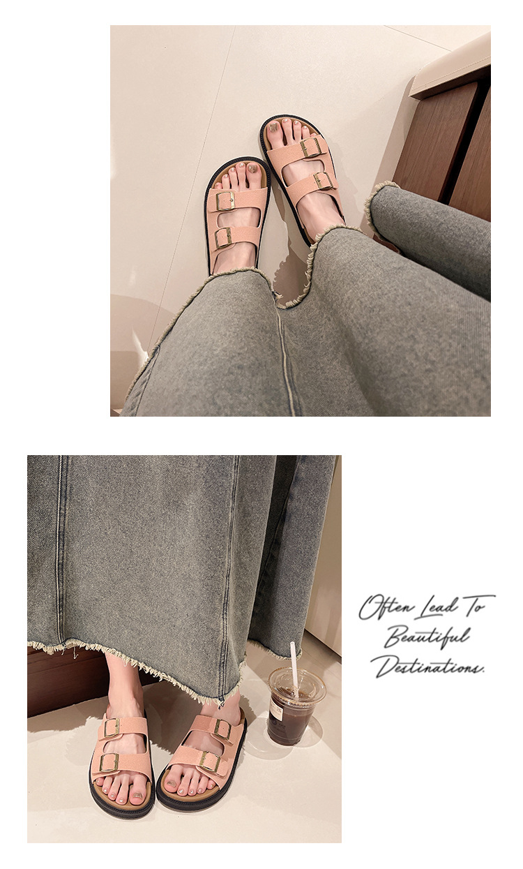출생 신발 캐주얼 슬리퍼 여성의 2024 년 여름 새 출생 의상 두꺼운 바닥 벨트 버클 플랫 하프 슬리퍼