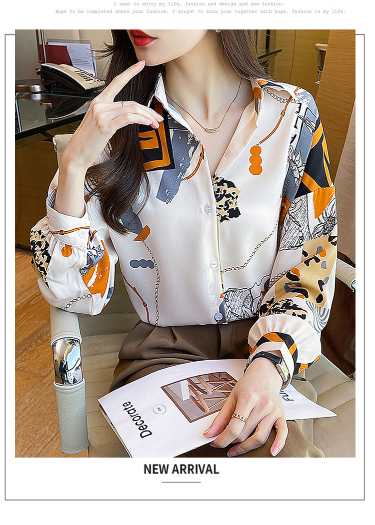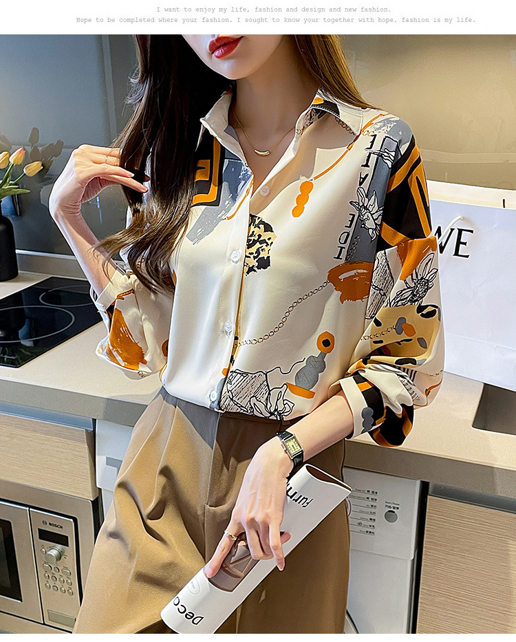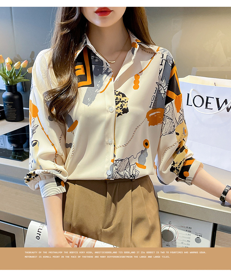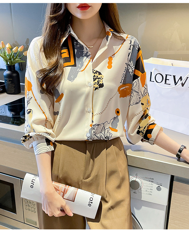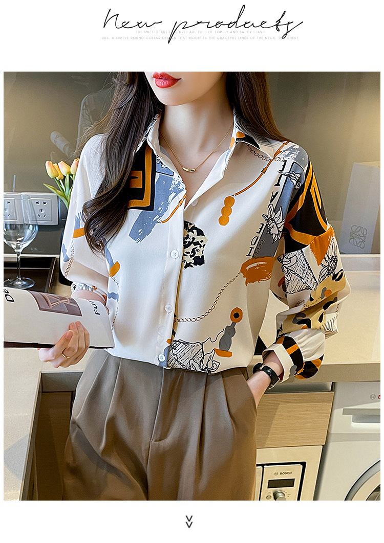 국경 간 대외 무역 2024 봄과 가을 새로운 쉬폰 셔츠 여성의 긴 소매 프린트 컬러 셔츠 틈새 패션 편안한 탑