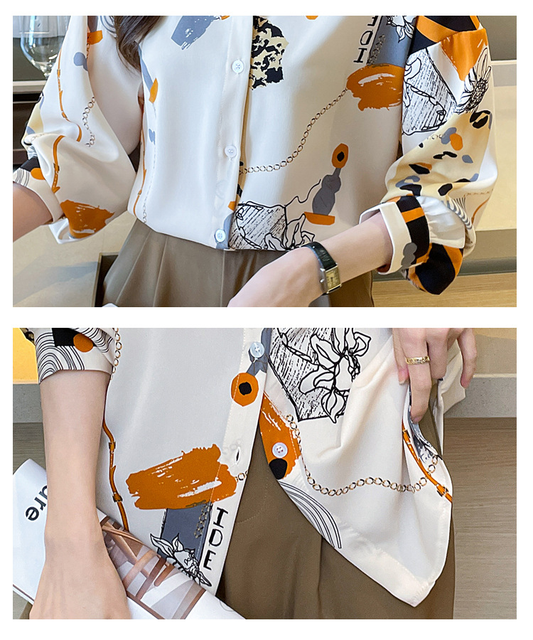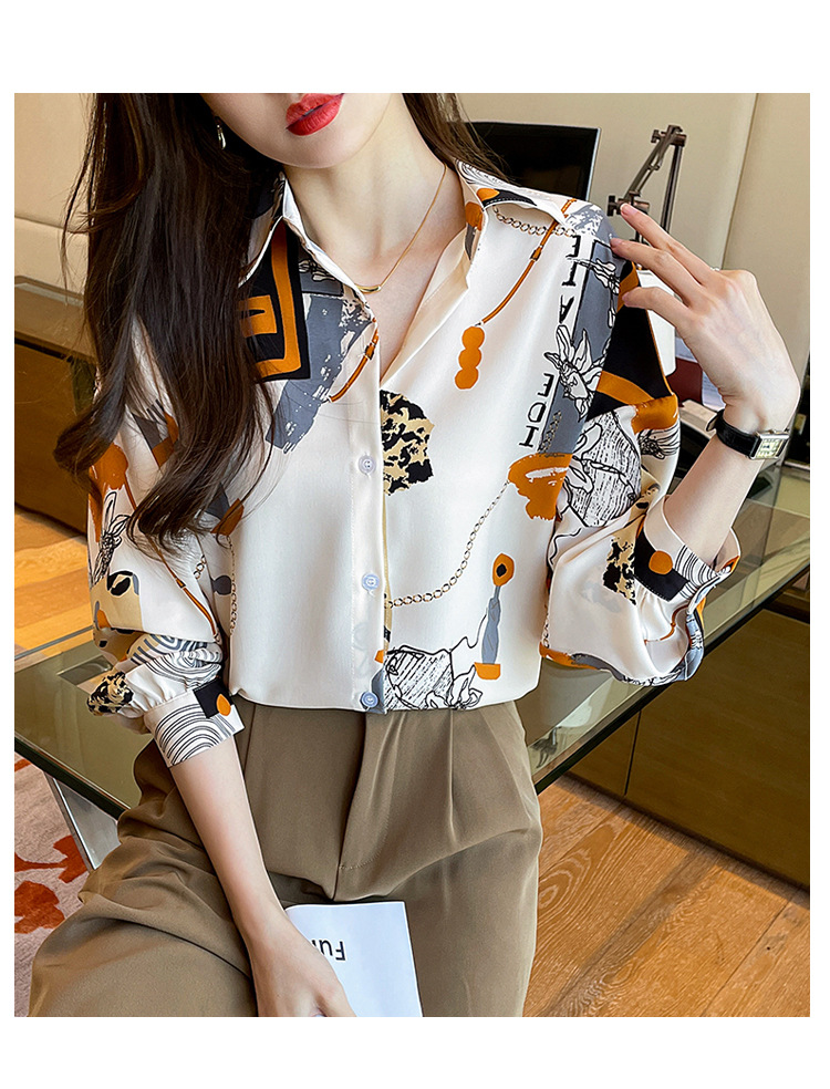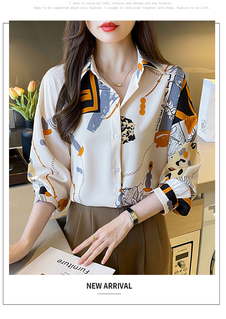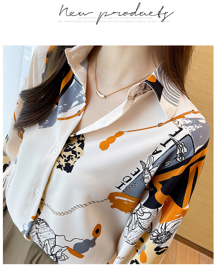 국경 간 대외 무역 2024 봄과 가을 새로운 쉬폰 셔츠 여성의 긴 소매 프린트 컬러 셔츠 틈새 패션 편안한 탑