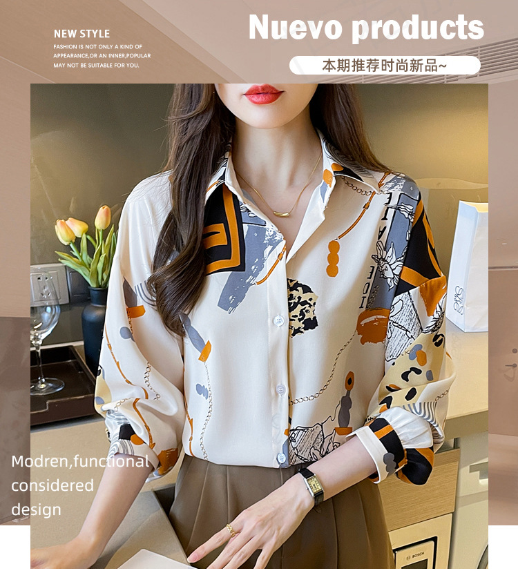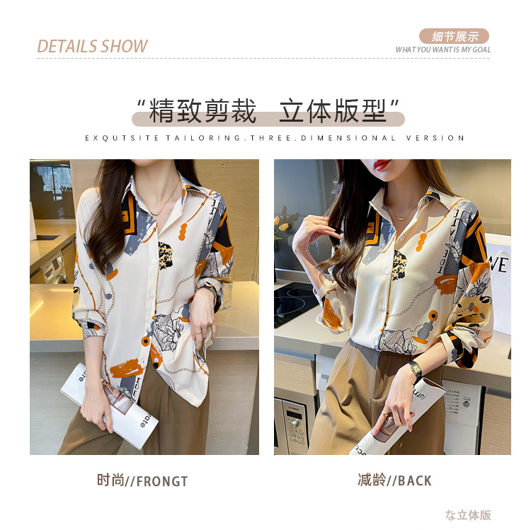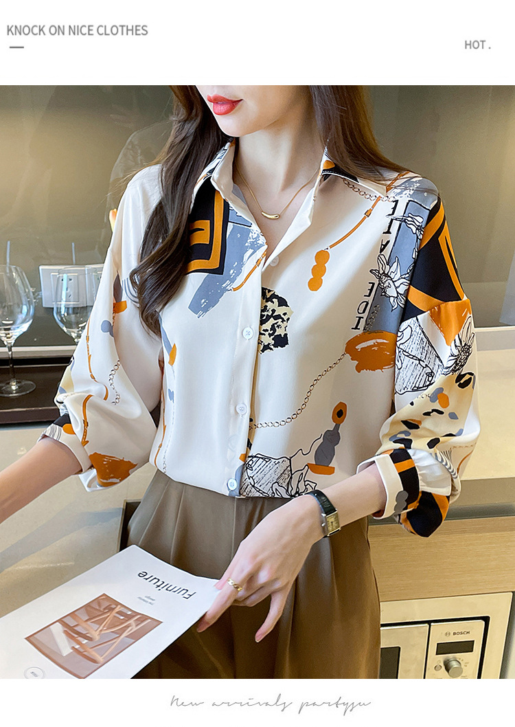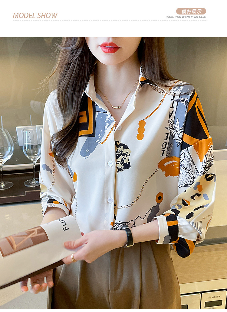 국경 간 대외 무역 2024 봄과 가을 새로운 쉬폰 셔츠 여성의 긴 소매 프린트 컬러 셔츠 틈새 패션 편안한 탑스토어 가기