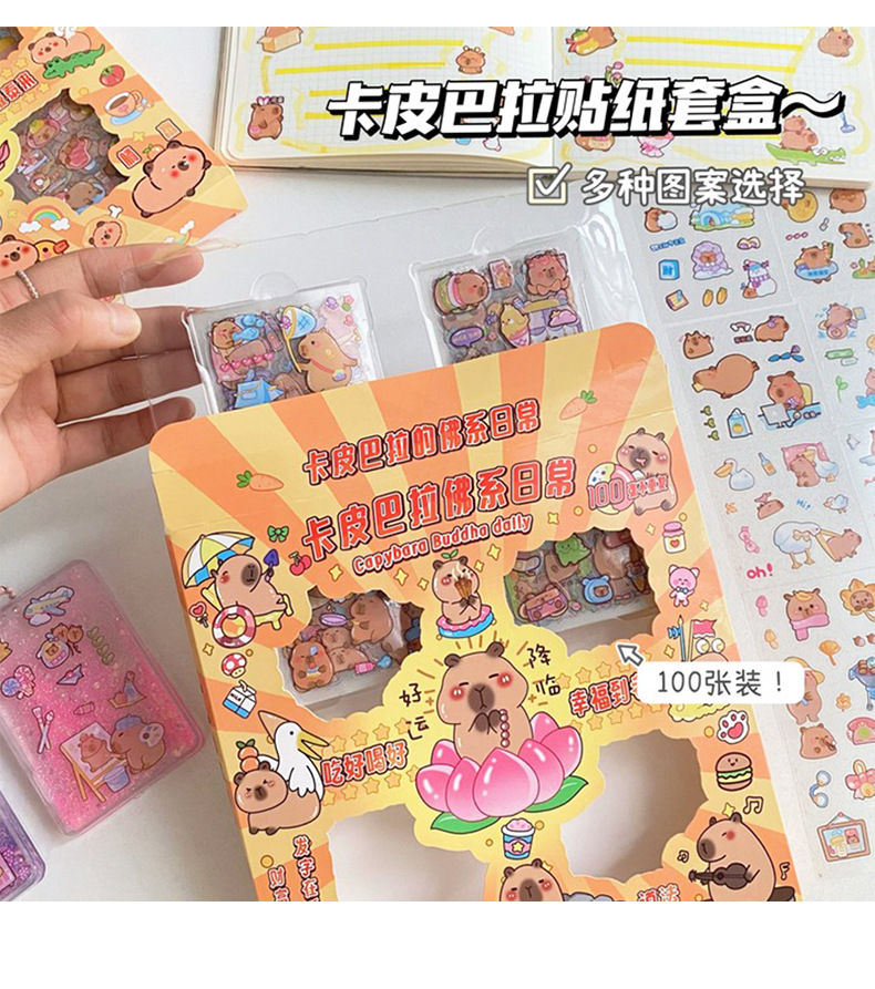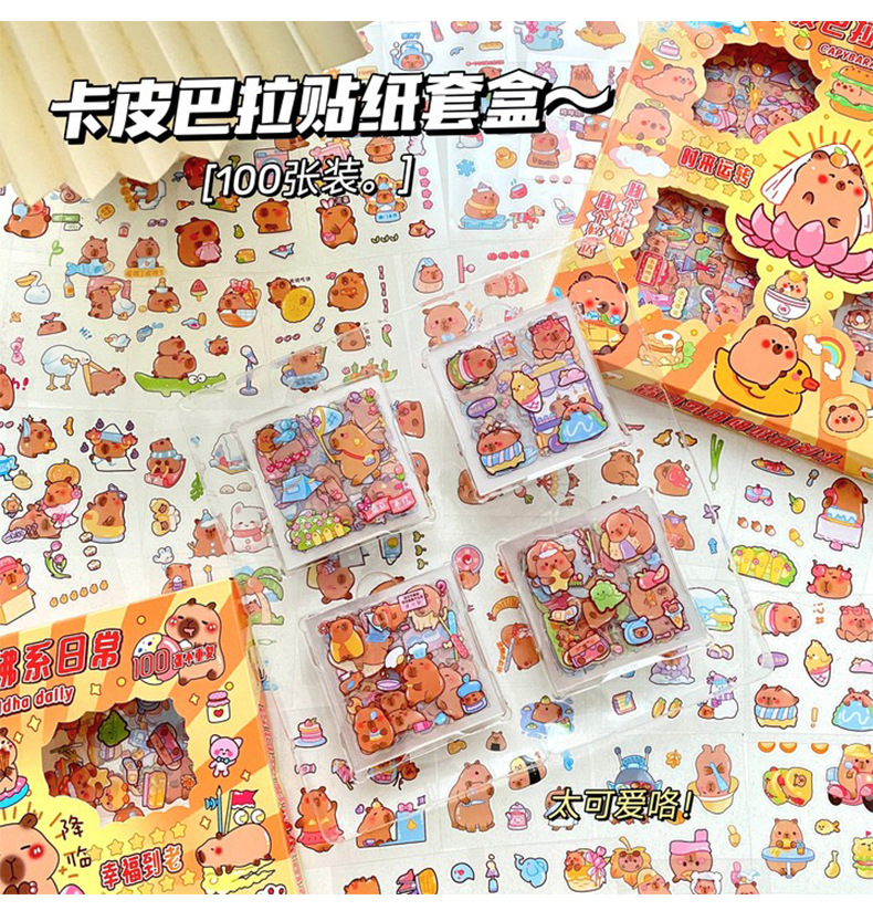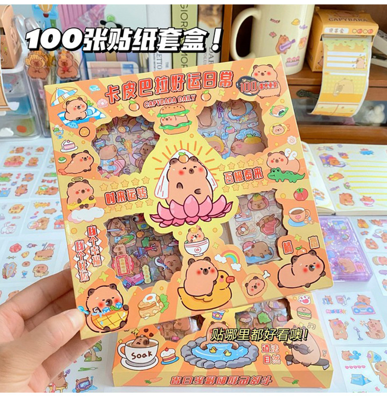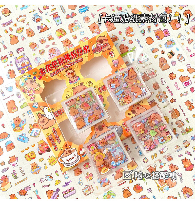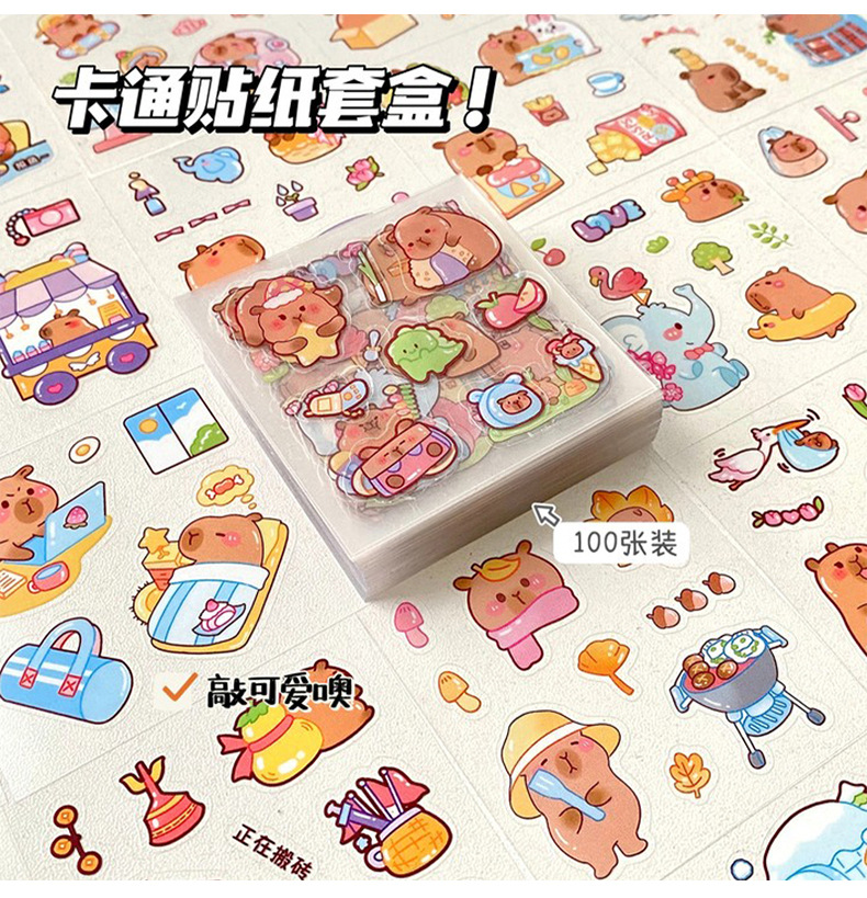 세 갈매기 100 스티커 손 계정 선물 상자 capybara 귀여운 소녀 어린이 만화 goo 카드 방수 애완 동물 스티커스토어 가기