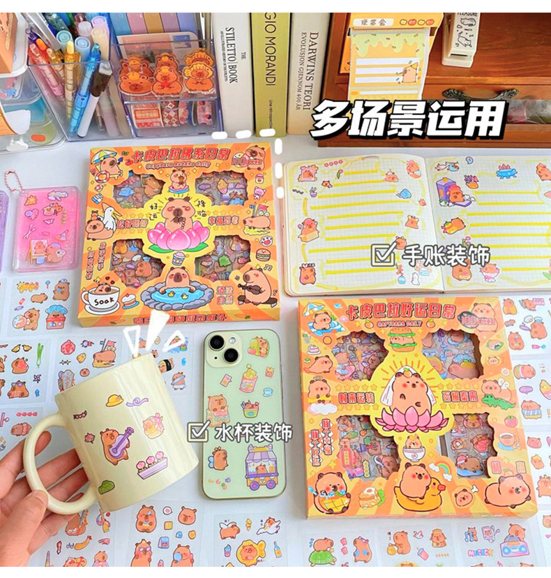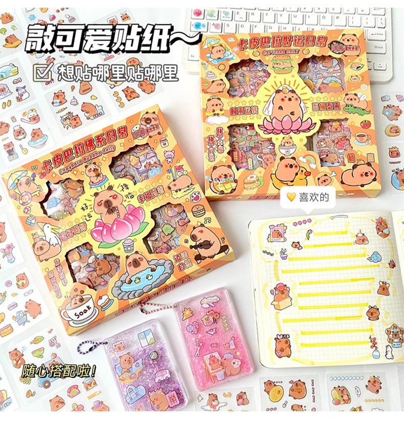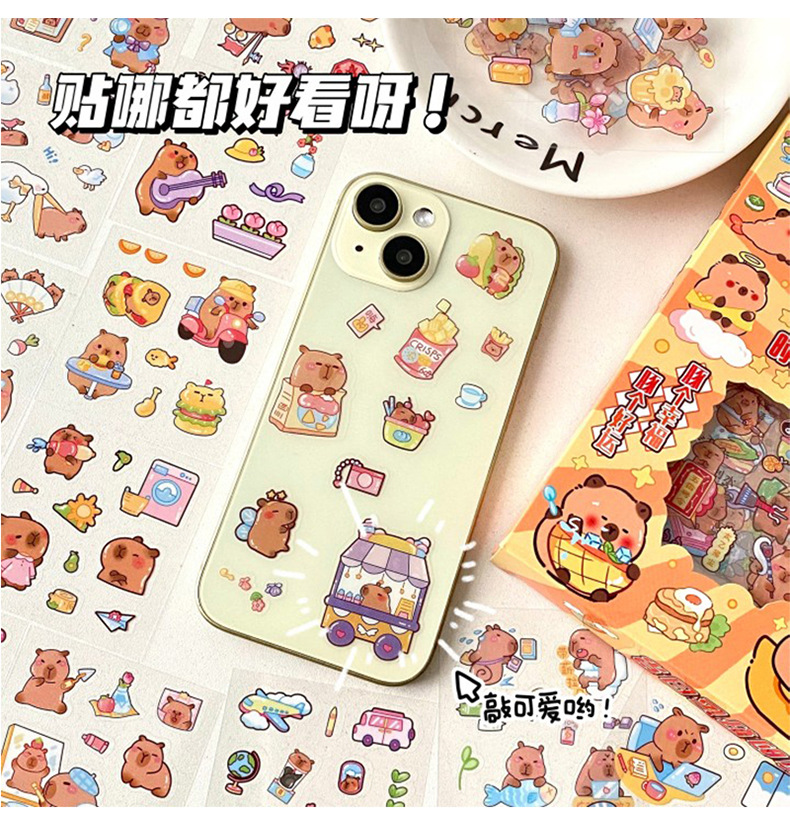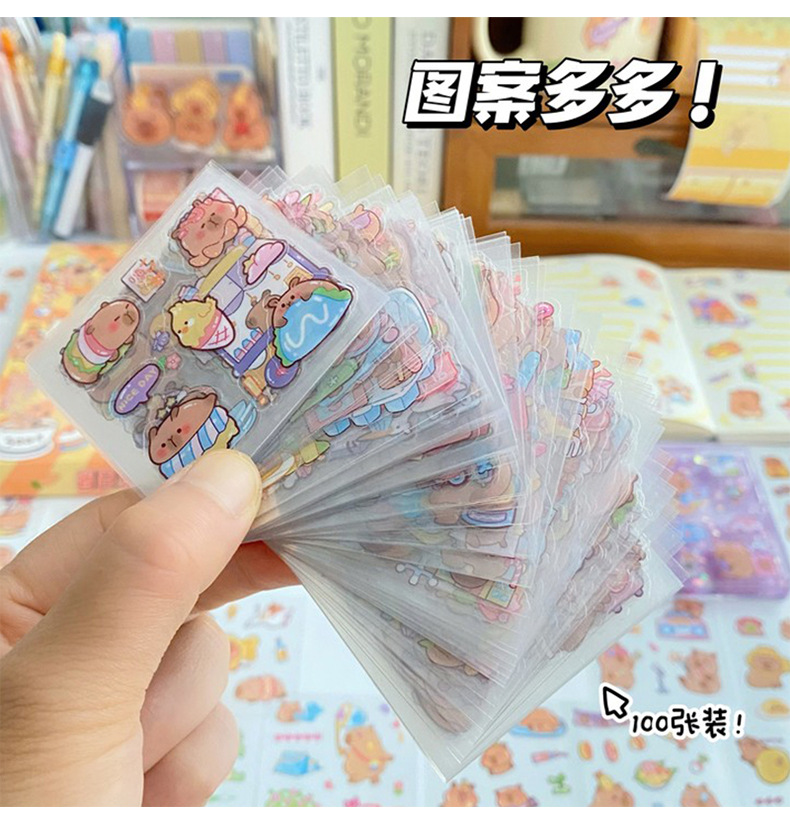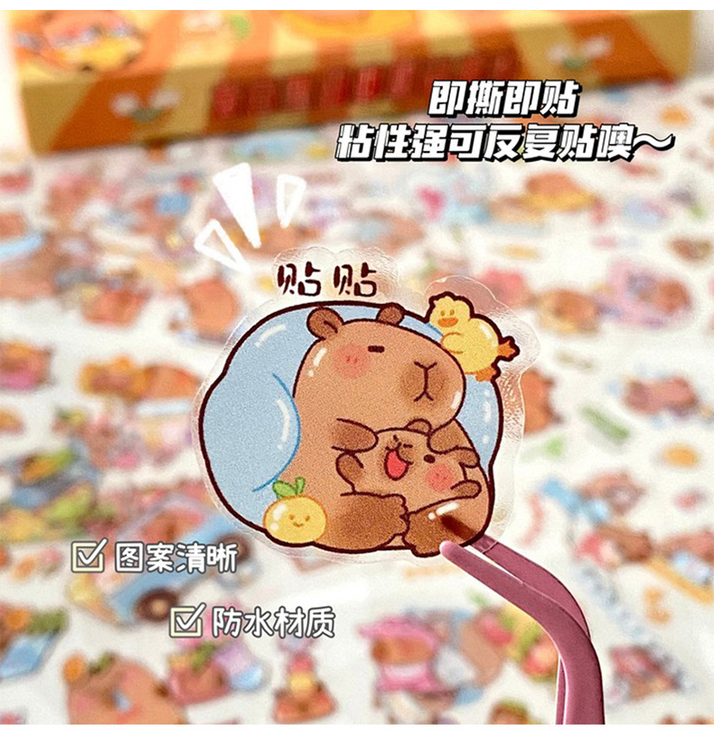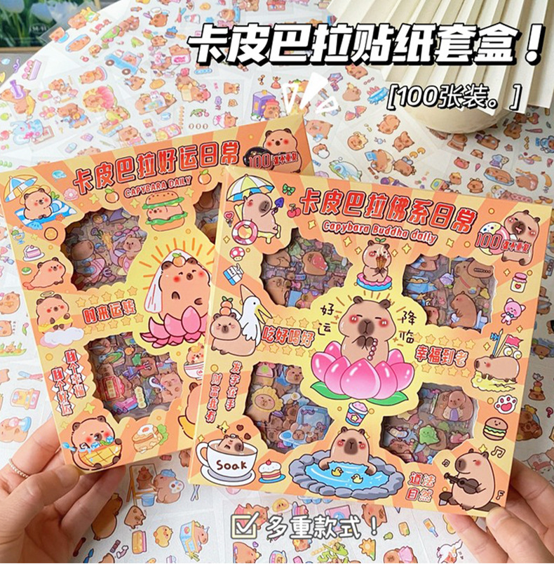 세 갈매기 100 스티커 손 계정 선물 상자 capybara 귀여운 소녀 어린이 만화 goo 카드 방수 애완 동물 스티커스토어 가기