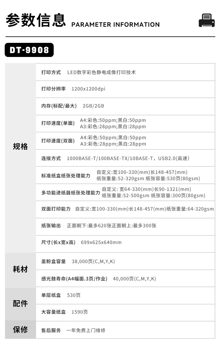 DT-9908 컬러 점착 라벨 프린터 산업 제조 2D 바코드 프린터 산업용 등급