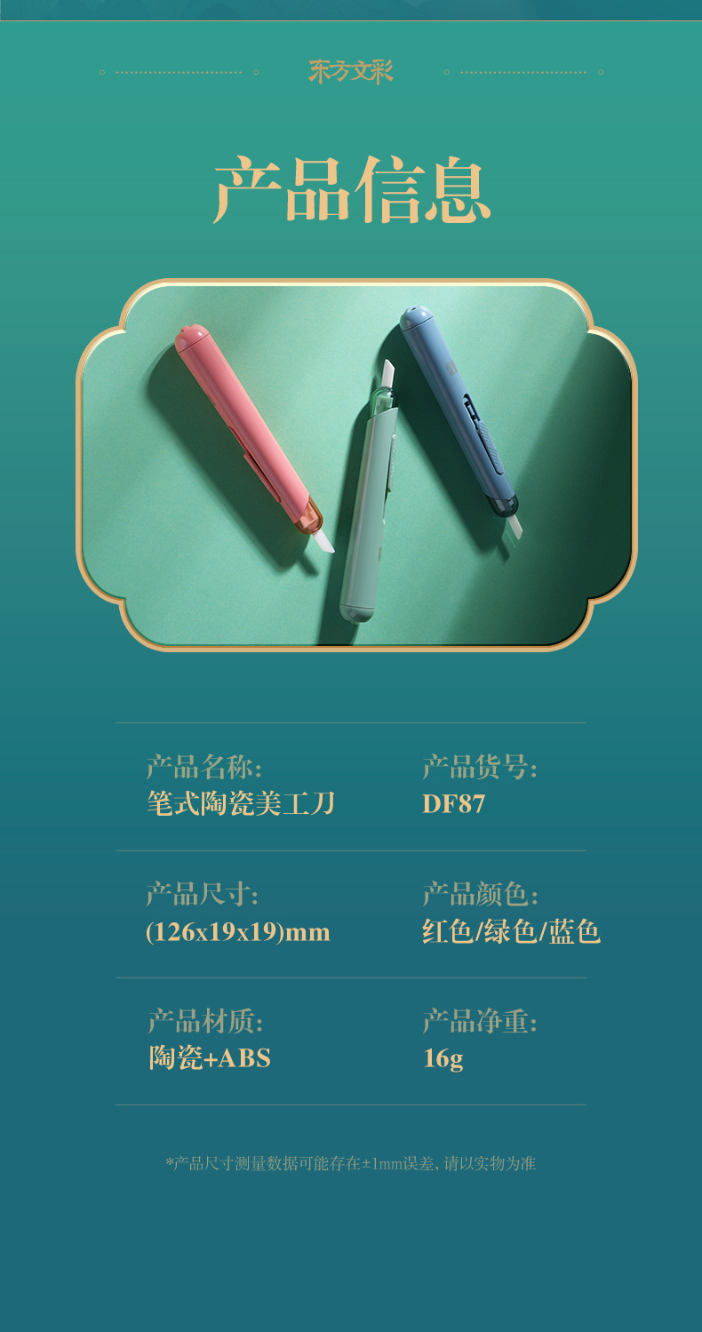 델리 DF87 오리엔탈 컬러 세라믹 아트 나이프 2 기어 칼 조각 칼 포장 익스프레스 풀기 작은 종이 칼